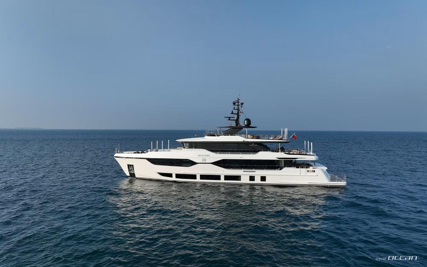 GEULUNEL is a newly delivered Majesty 120 superyacht launched in 2025, designed for refined cruising and effortless entertaining in the West Mediterranean. Home-ported in Monaco, she is perfectly positioned for a Luxury Yacht Charter Monaco itinerary while remaining fully flexible to cruise the French Riviera and the coastlines of southern Italy. With her striking exterior profile, expansive glazing, and confident presence on the water, Charter Yacht GEULUNEL brings contemporary elegance to every anchorage.