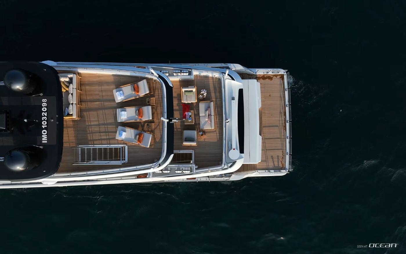 All cabins with en-suite bathrooms, air condition throughout, 2 generators, watermakers, stabilizers at anchor and underway, jacuzzi, TV in salon and all cabins, Starlink, Wi-Fi internet, beach club, and a variety of water toys.