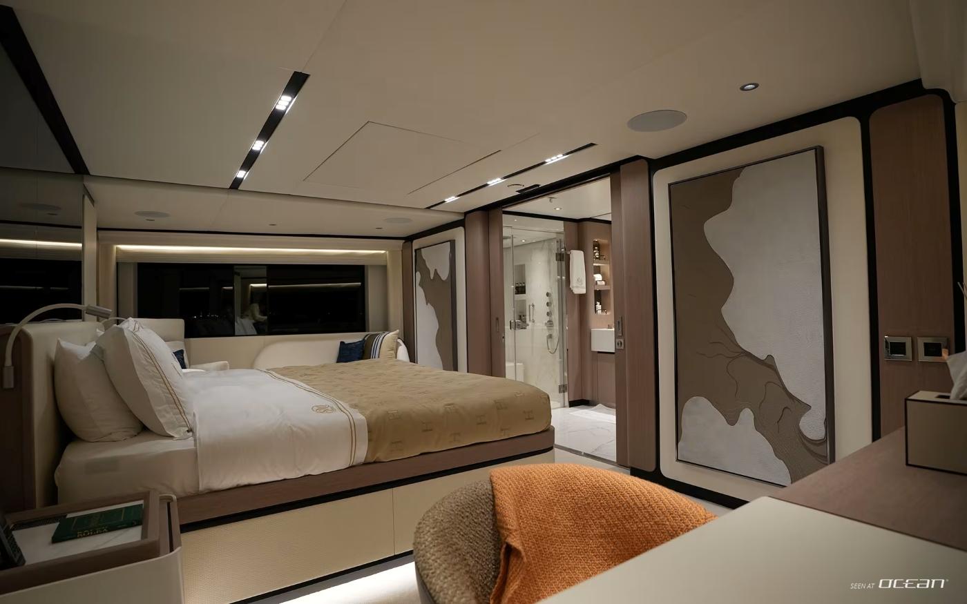 Interiors by Cristiano Gatto define a calm and sophisticated onboard atmosphere, combining modern luxury with warmth and comfort. Extensive use of glass floods the interior with natural light, enhancing the seamless indoor-outdoor flow. M/Y GEULUNEL for charter accommodates guests in 6 cabins, including a deluxe full-beam master suite on the main deck, a VIP cabin, 2 double cabins, and 2 convertible cabins. This versatile layout offers ideal flexibility for couples and families alike, without compromising privacy or comfort.