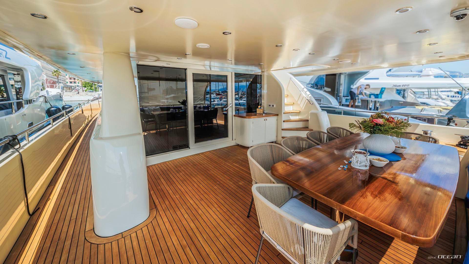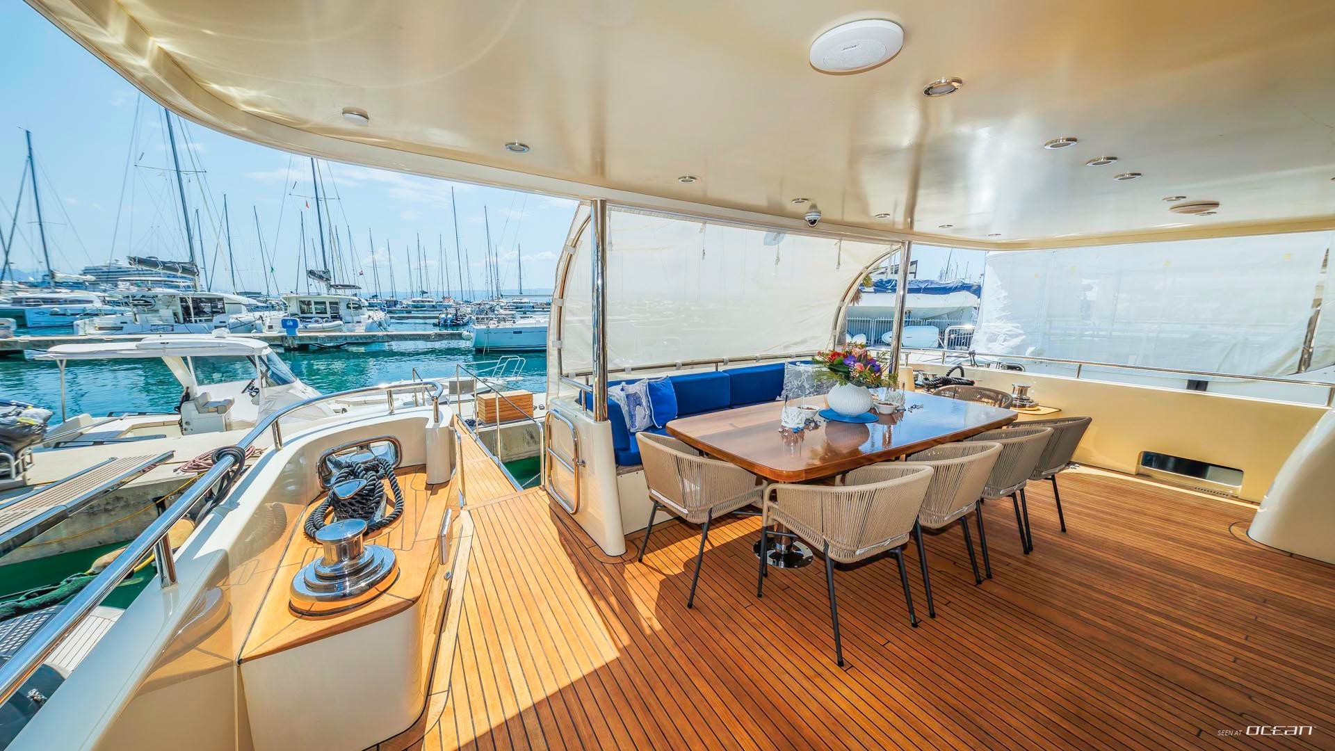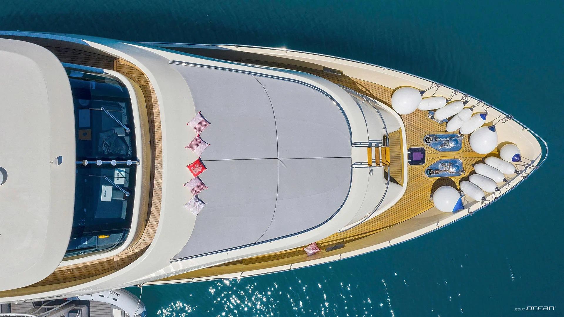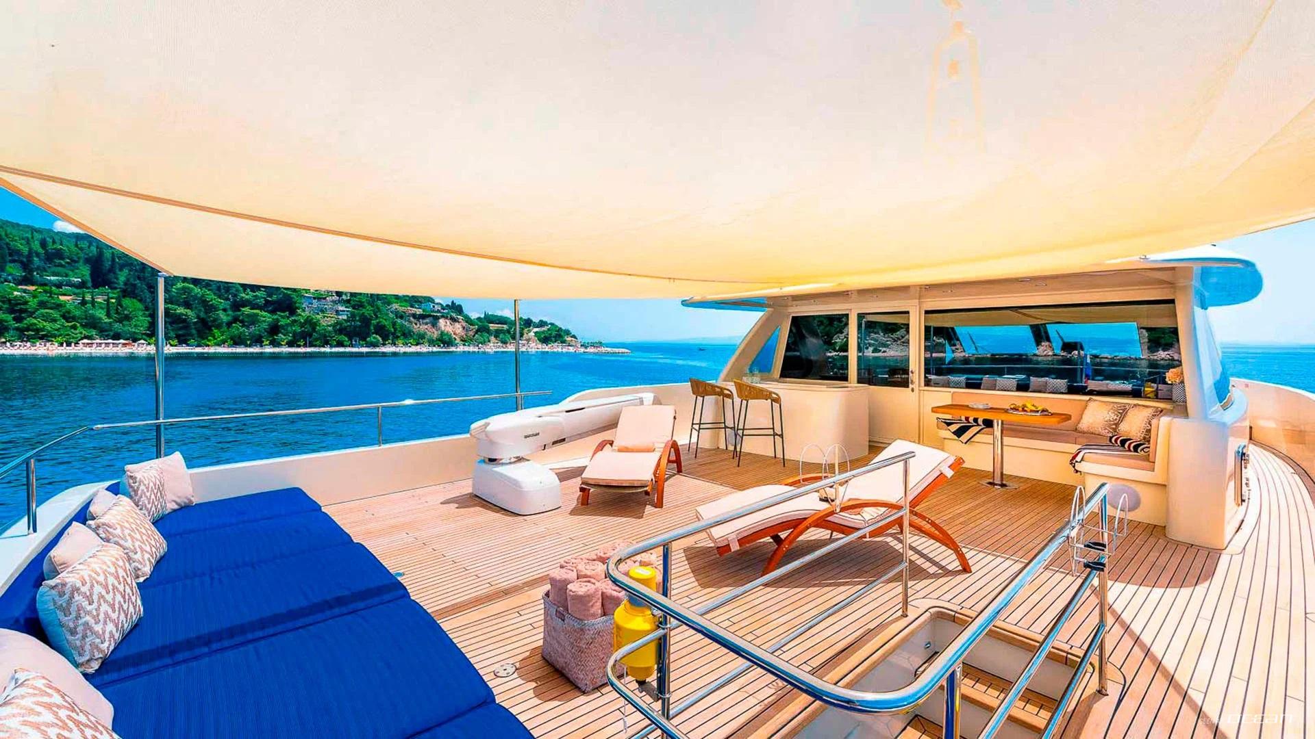 Her spacious flybridge is designed for an effortless outdoor lifestyle, featuring sun loungers, a cozy lounging area, wet bar, and an alfresco table ideal for afternoons in the breeze. This upper deck becomes a favorite retreat while cruising between bays and islands. Luxury motor yacht GRACE carries a fun set of water toys, including a Highfield tender with 150hp engine, jet ski, Seabob, waterskis, 2 SUPs, and more. Combined with the warm service of her crew of 4, she offers a dynamic environment for both relaxation and activity throughout the Adriatic.