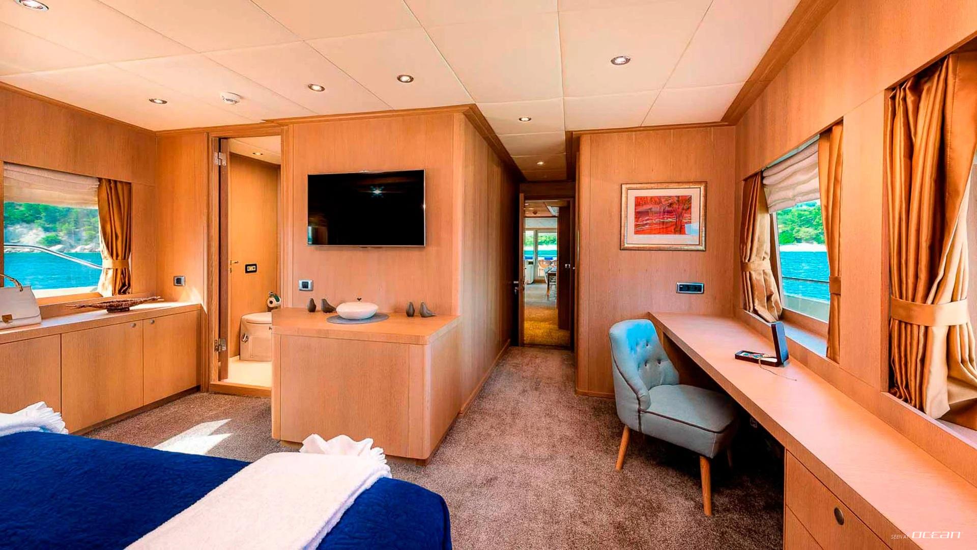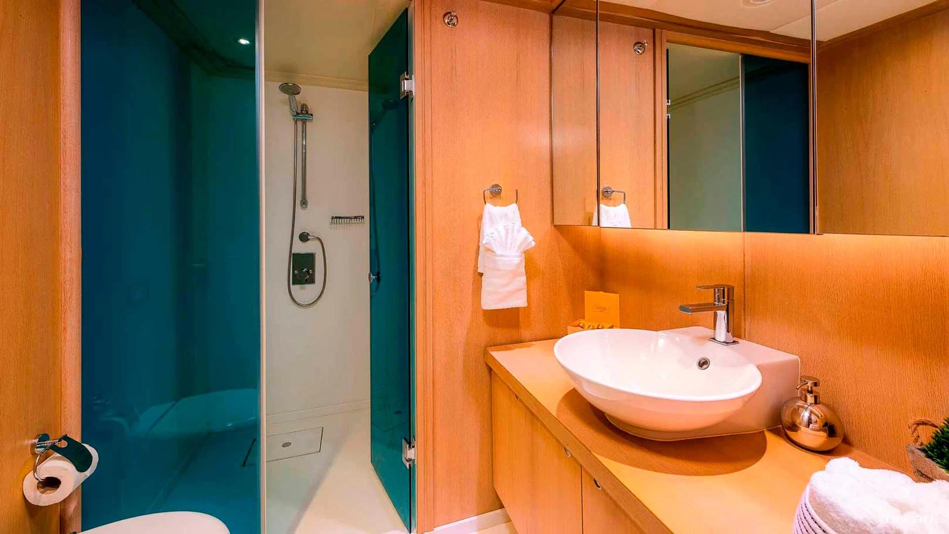 GRACE accommodates guests in 5 well-appointed cabins, including a generous master suite on the main deck with walk-in wardrobes and a private feel. The lower deck features 2 double and 2 twin cabins, making her layout flexible for families and mixed groups. Each suite includes wardrobes, ensuite facilities, and individually controlled air conditioning. Her arrangement ensures comfort throughout longer stays, elevating the overall luxury motor yacht charter in Croatia experience.