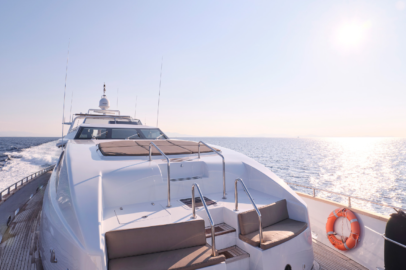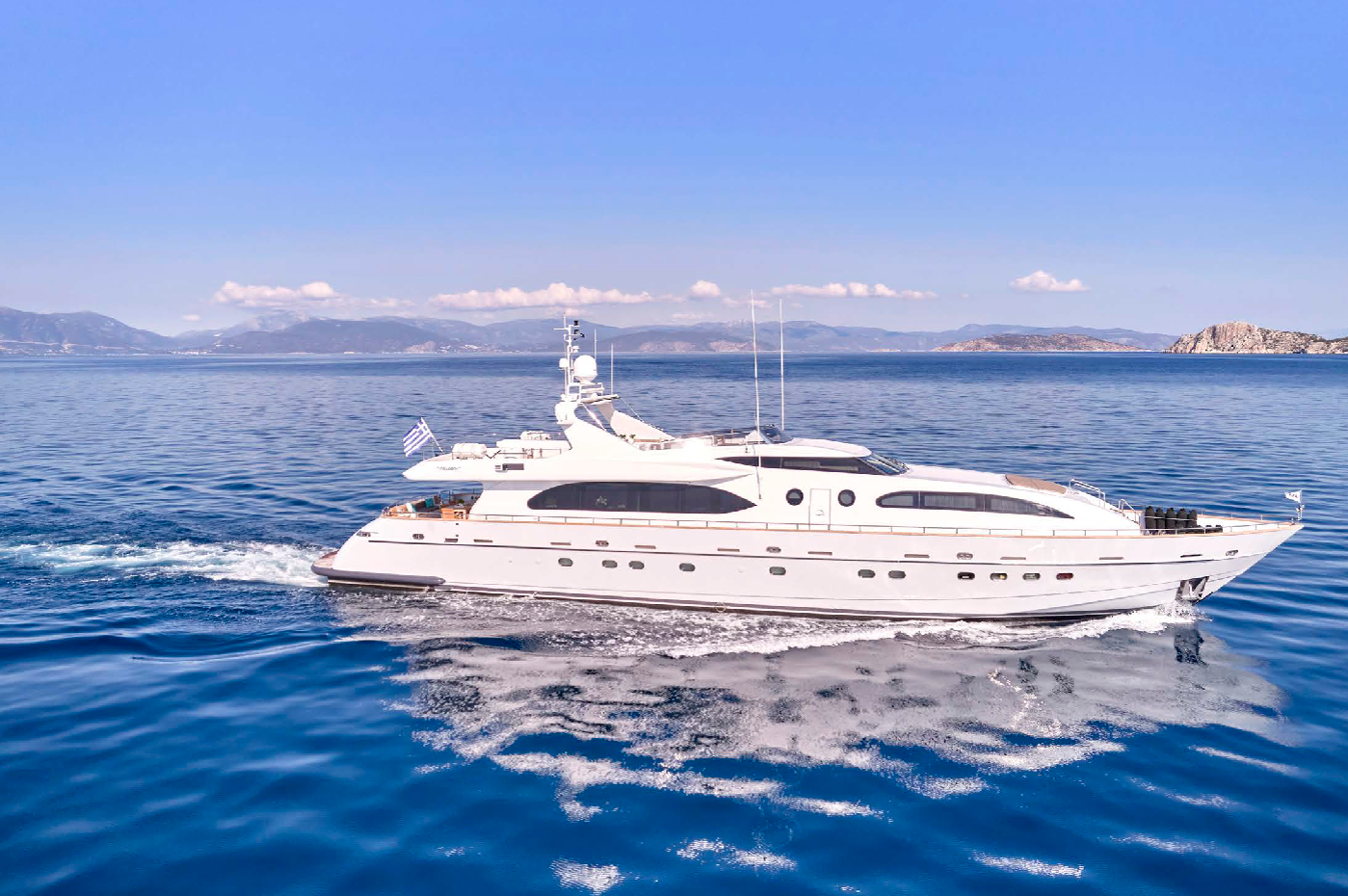 HELIOS Falcon 115 motor yacht, built in 2010 and refitted in 2023, embodies modern sophistication and exceptional performance. Cruising gracefully at 23 knots, she offers the perfect blend of comfort and style for those seeking an unforgettable escape through the sunlit waters of Greece.