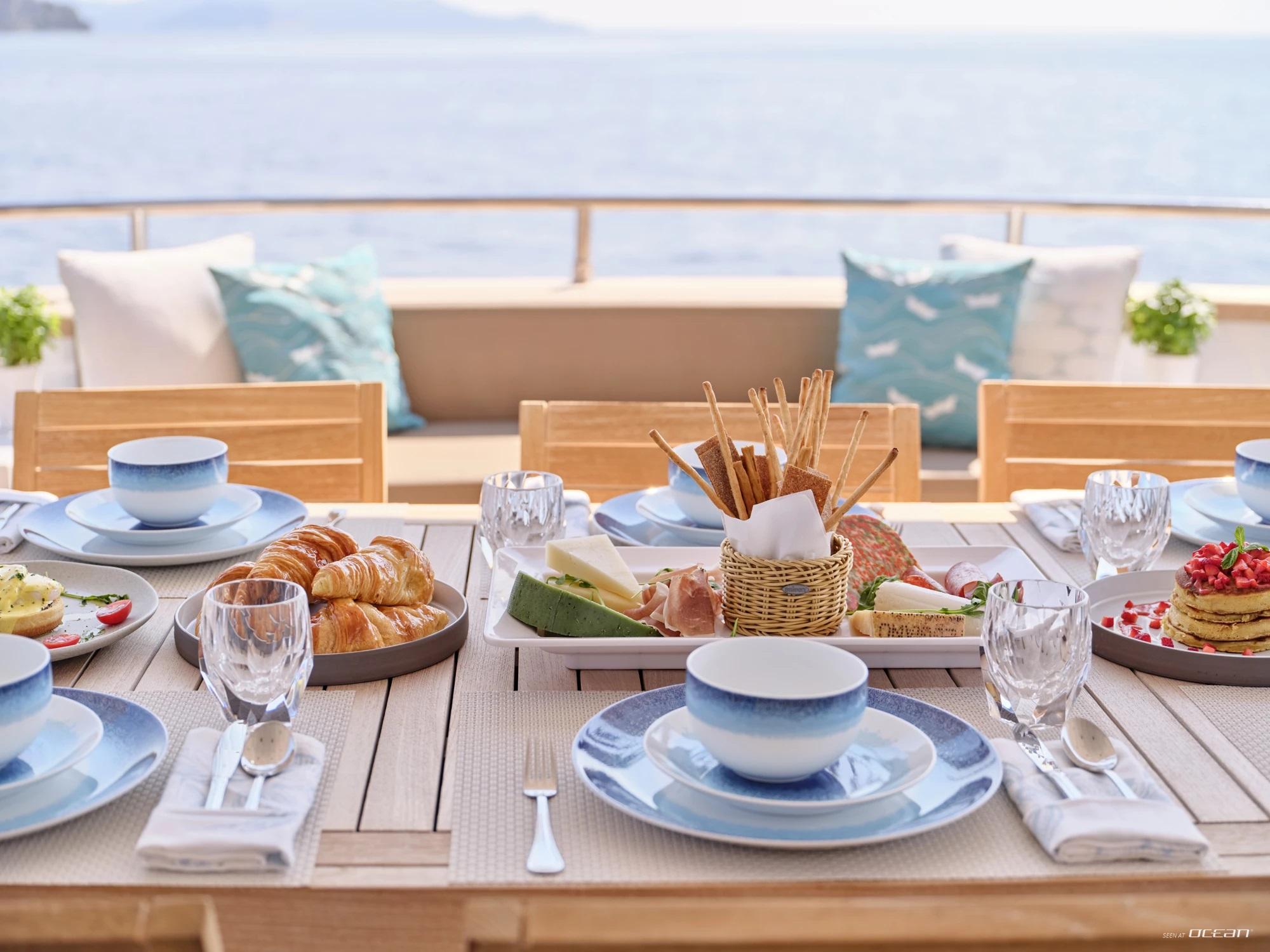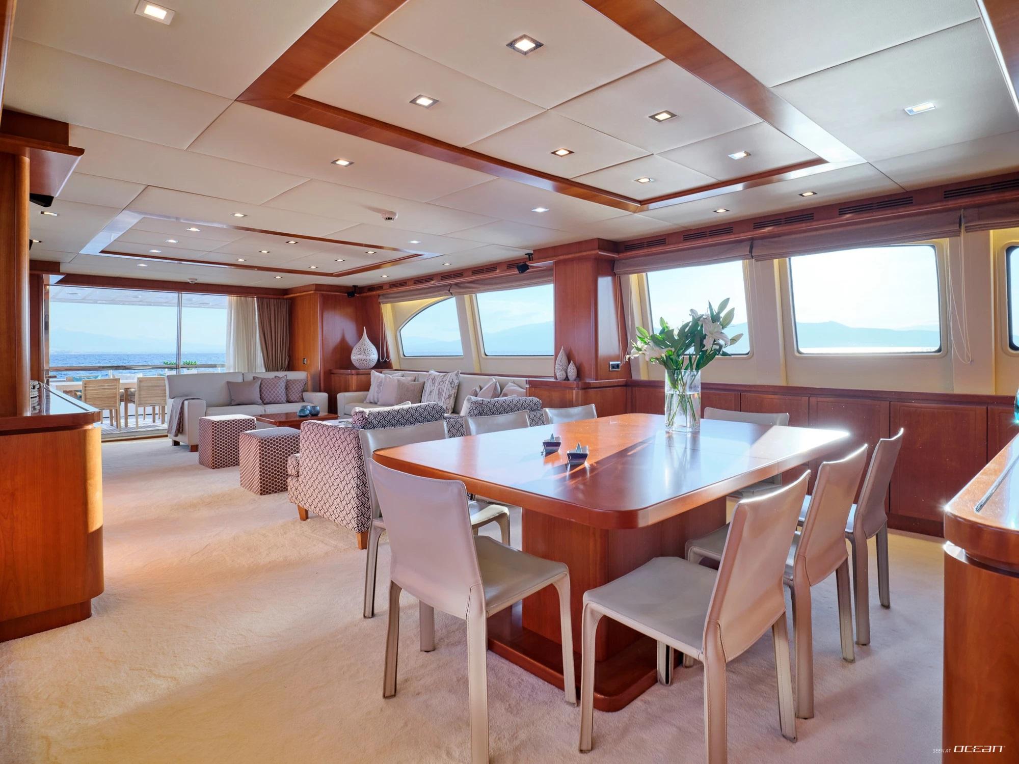 HELIOS accommodates 10-12 guests in 5 elegantly designed staterooms, each with ensuite facilities. Her layout is ideal for families and groups, featuring 2 double cabins with king-size beds, 1 with a queen-size bed, and 2 twin cabins, each equipped with an additional Pullman berth for added flexibility. The interiors exude understated luxury, combining warm woods, soft lighting, and contemporary furnishings to create a relaxing, home-like ambiance.