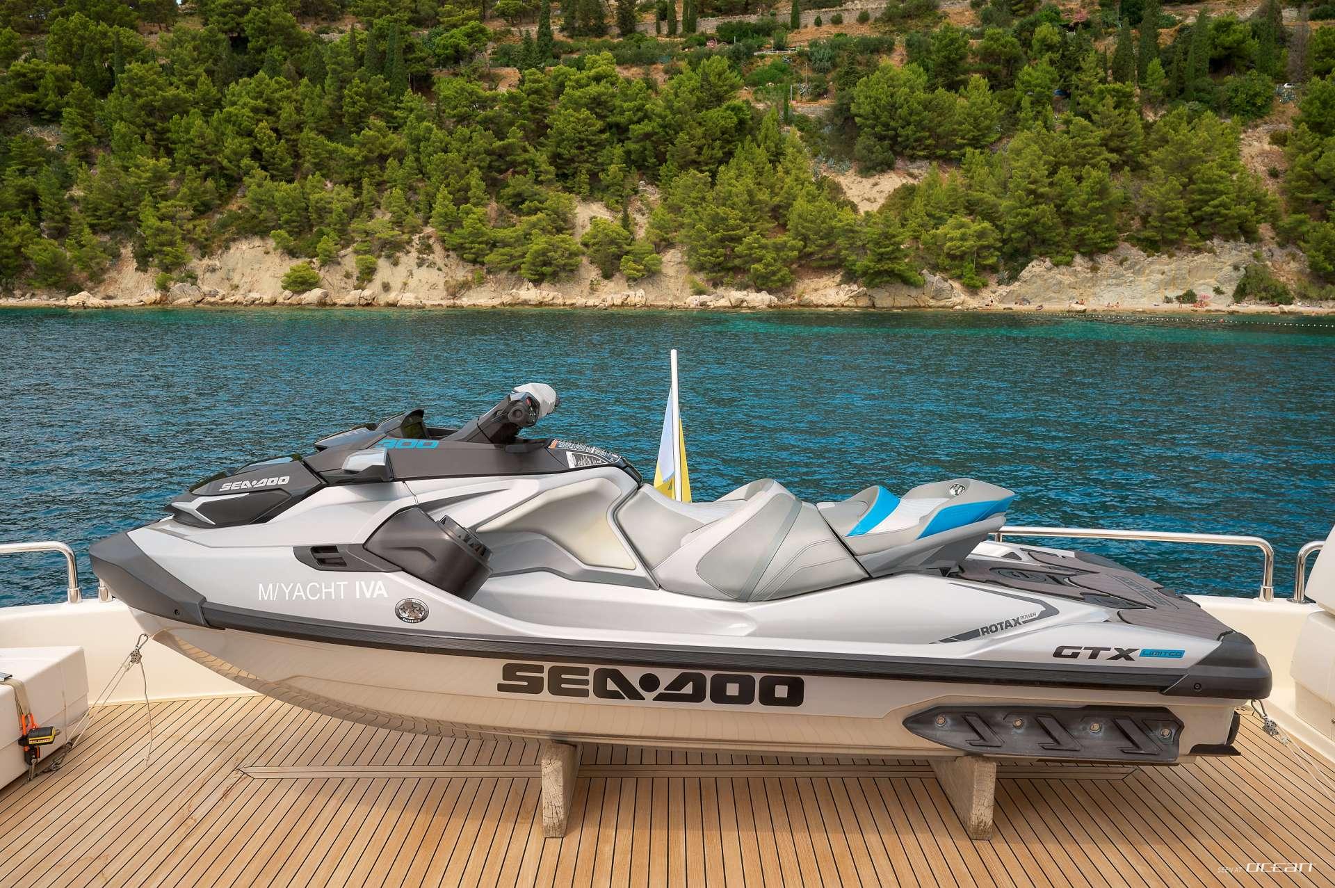 Active guests will enjoy IVA’s wide selection of water toys, including a Williams 445 tender, Sea-Doo GTX 300hp, 2 Seabobs, paddleboard, kayak, and snorkeling and fishing gear. Her swim platform makes accessing the water effortless, creating the perfect hub for daytime fun. Stabilizers underway and at anchor ensure comfort during cruising and overnight stays. Fresh from a 2024 refit, she is in mint condition and ready for an unforgettable Croatia and Montenegro itinerary.