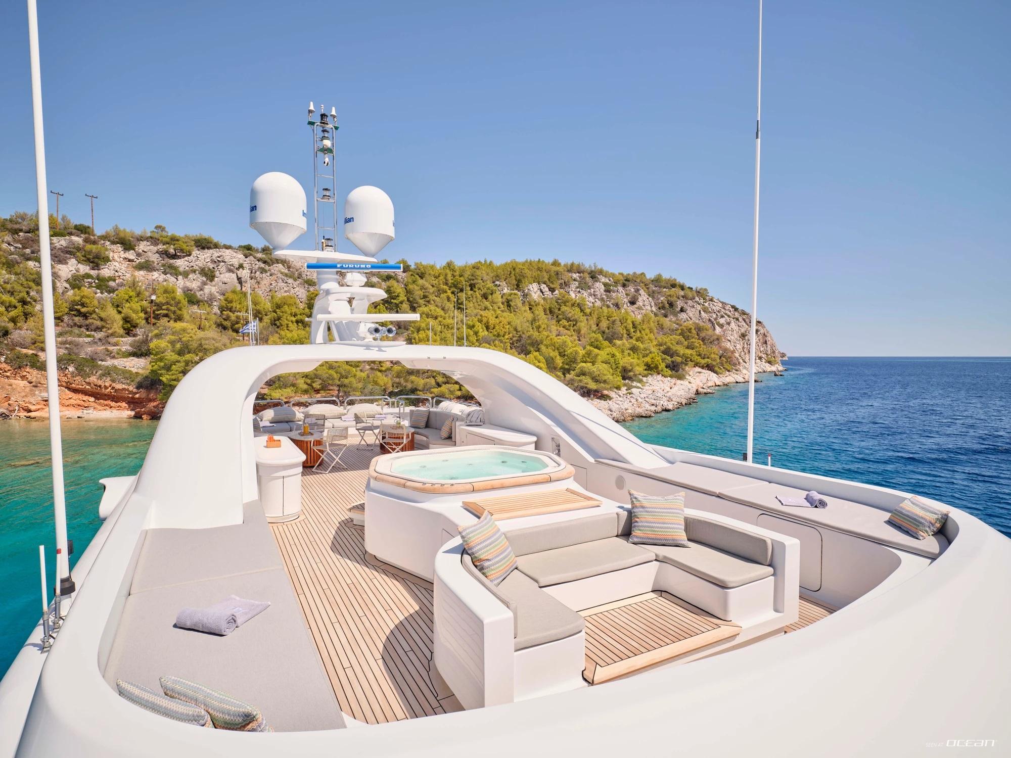 Glide in sophistication aboard 51.5M luxury superyacht JAZ, built by Amels Holland in 1997 and extensively refitted in 2019 and 2025. With stabilizers at anchor and underway, she offers smooth cruising at 13 knots and a seamless balance of tranquillity and performance. Charter guests can relax on expansive decks, enjoy the Jacuzzi with panoramic views, or retreat to shaded areas for comfort under the Mediterranean sun. JAZ Amels 51m for charter brings timeless style and a modern superyacht experience to Greece and beyond.