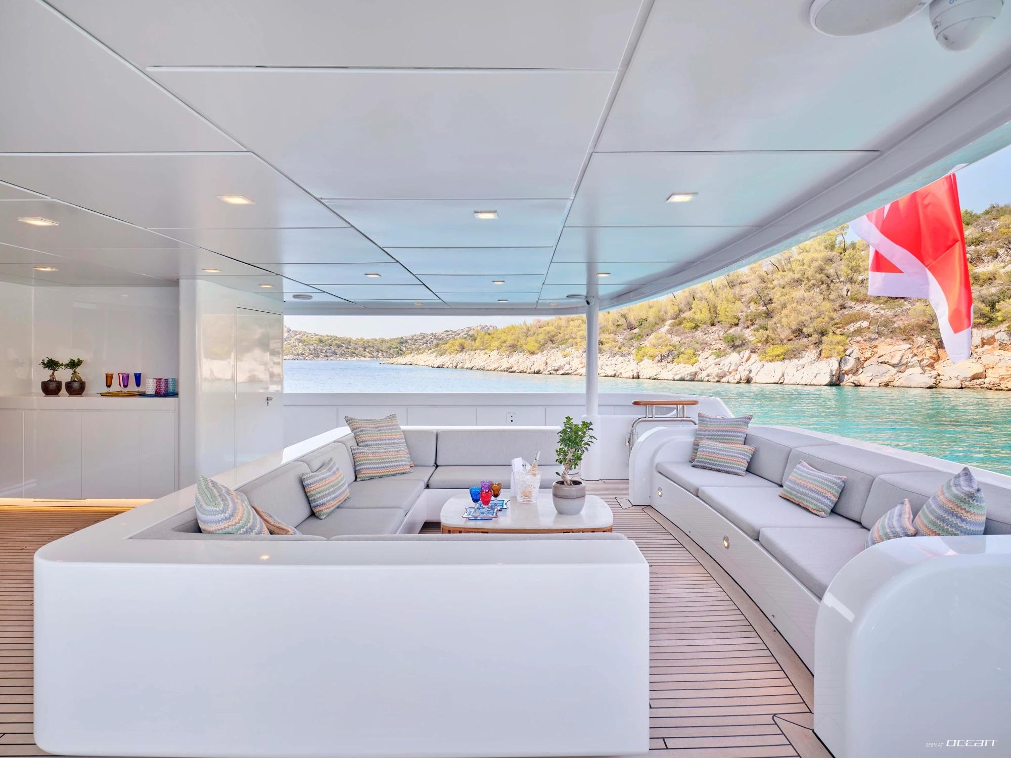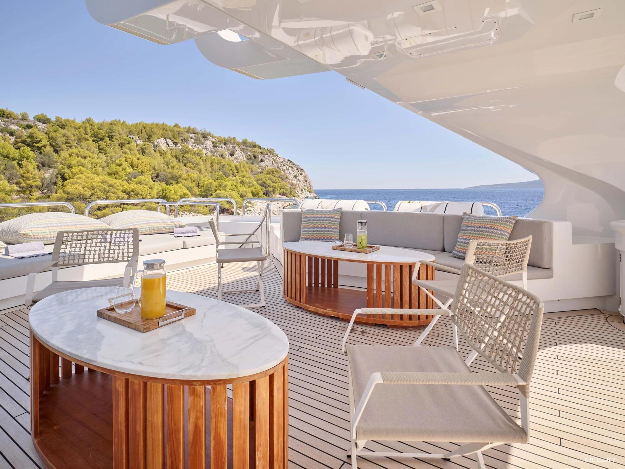 Charter Luxury Yacht JAZ offers an extraordinary selection of water toys, including Wally 48 chase boat, Pascoe 6.20m tender, Castoldi jet tender, jet skis, eFoil, paddleboards, kayak, tubes, waterskis, and towable banana and sofa. The decks feature a Jacuzzi, sunbathing areas, and ample space for socializing or relaxation. Gym equipment is also available onboard, ensuring both leisure and activity options are covered. JAZ delivers a superyacht charter in Greece filled with adventure, comfort, and endless entertainment.