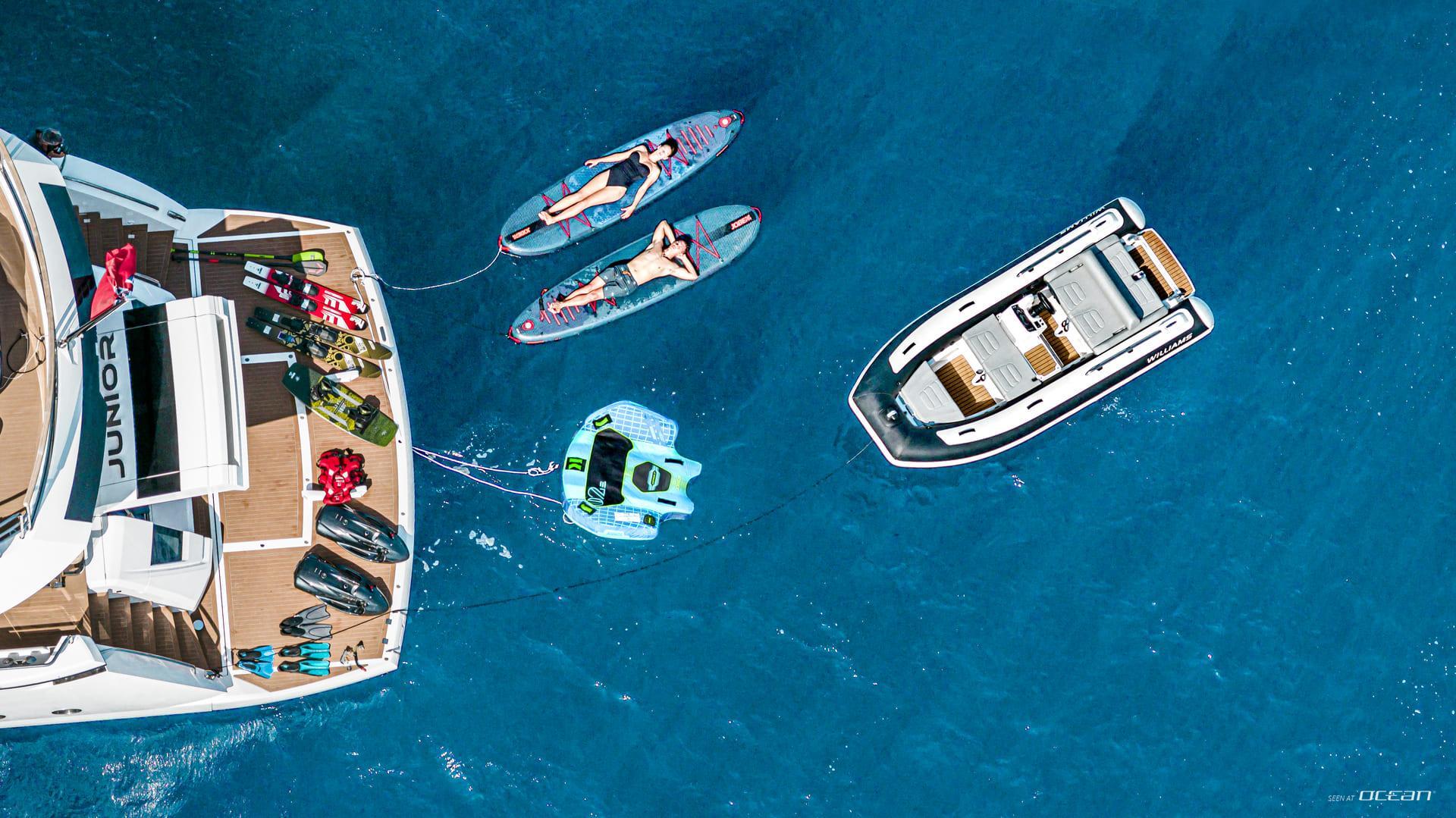 Williams Sportjet 435, 2 SeaBobs, 2 stand-up paddleboards, fliteboard, wakeboard, waterskis, inflatables, and snorkeling gear