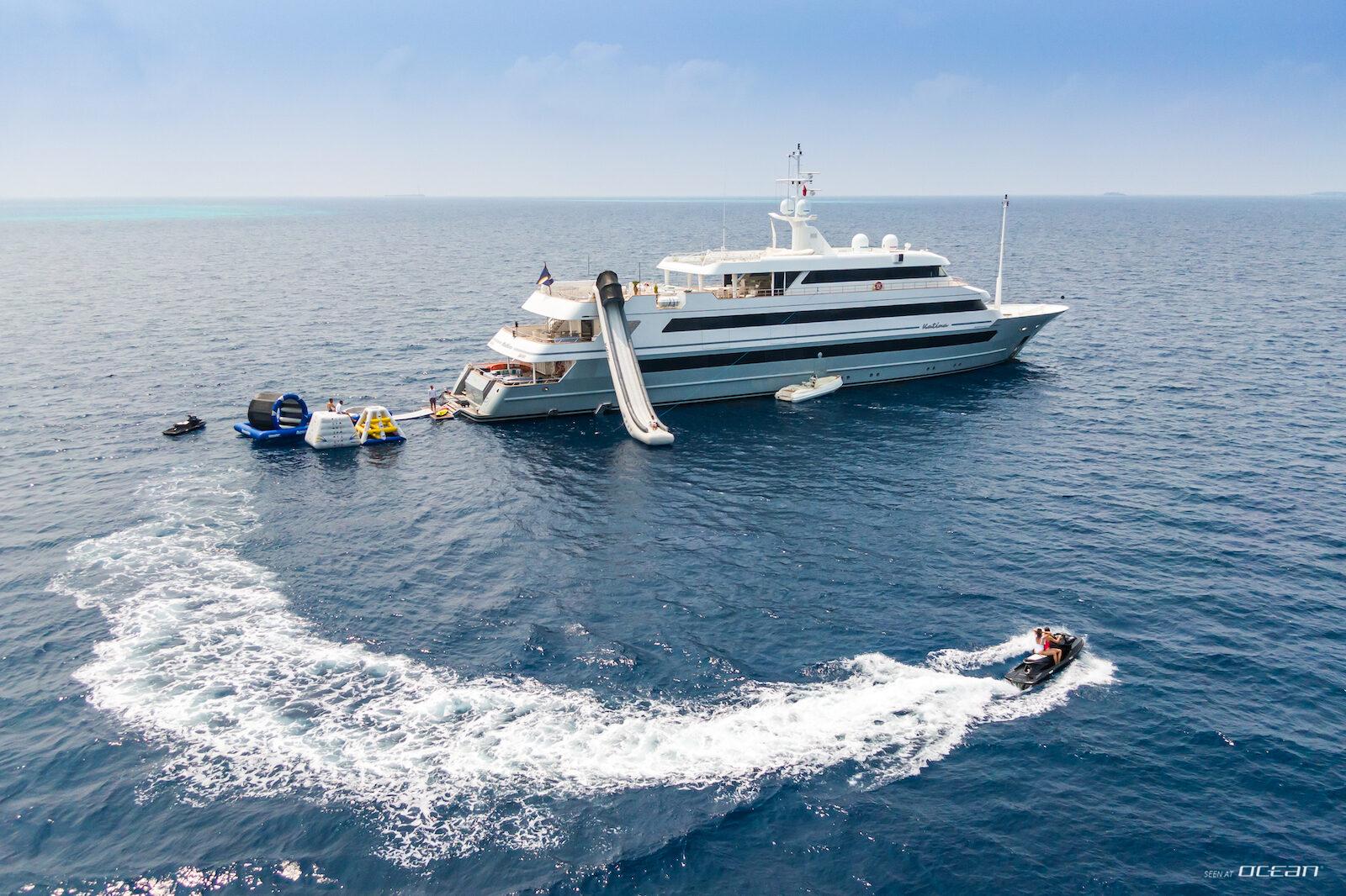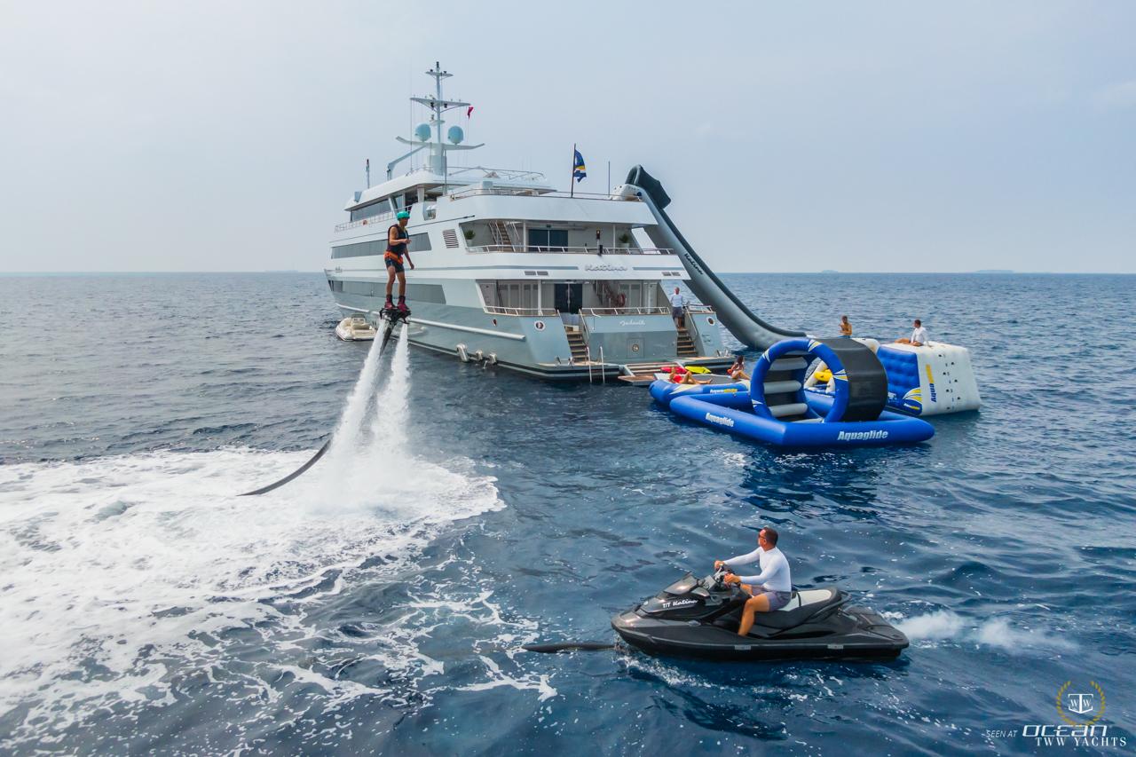 Scanner Envy 6.3m tender, 2 x 2-seater Sea-Doo GTI 130SE, 2 x Seabob F5, 4 x Sea-Doo RS1 underwater propulsion units, 2 x eFoils, 4 x Merida mountain bikes, 2 x windsurfers, 2 x kayaks, Zapata racing jet pack, flyboard and racing hoverboard, Inflatable extendable deck, slide and playground, Large selection of inflatable towable toys (including tubes and rings), waterskis, wakeboards, stand-up paddleboards, snorkelling gear and large selection of fishing equipment