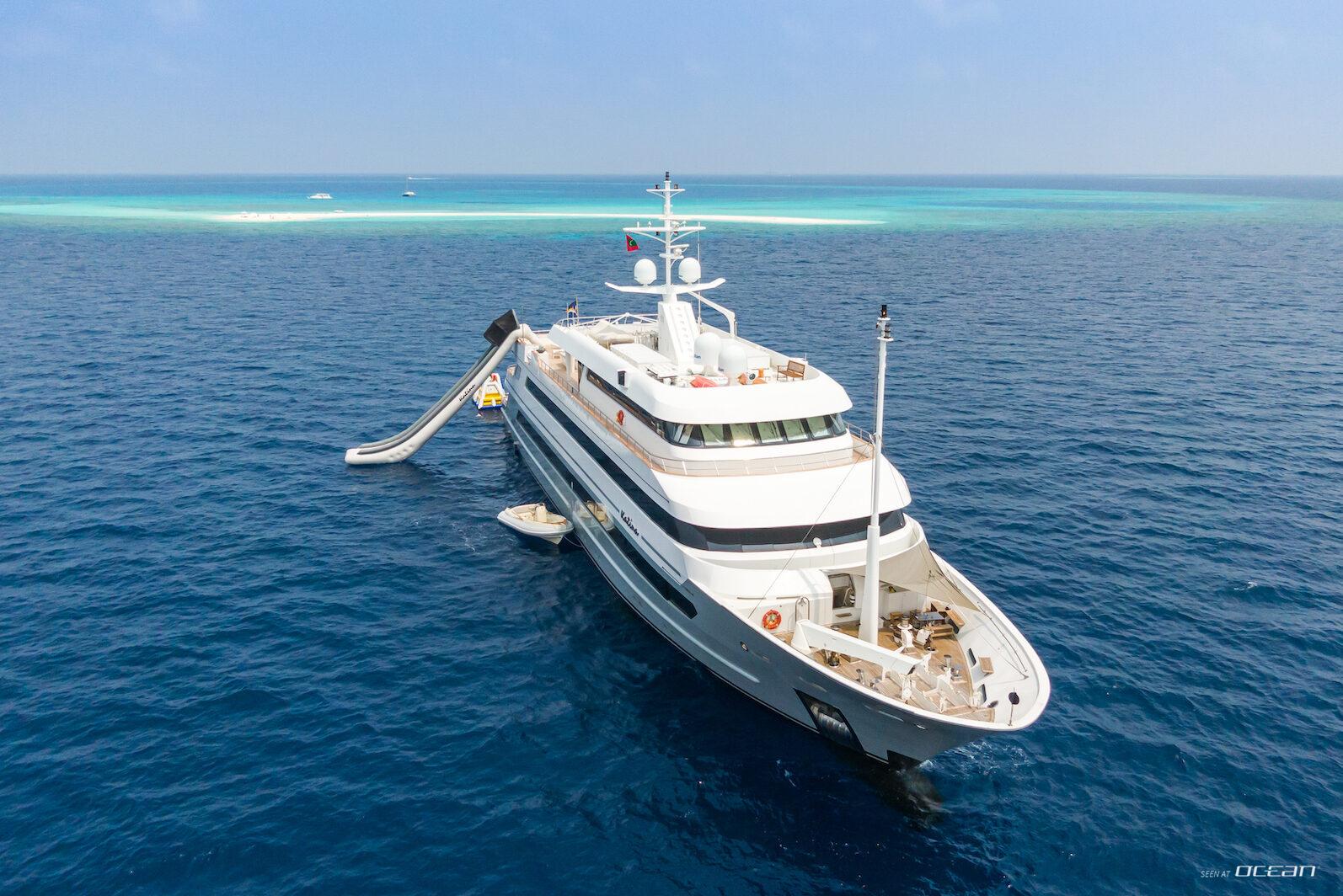 KATINA 60M Custom Brodosplit for charter is a statement yacht designed for generous living and large-scale entertaining across the East and West Mediterranean. Her size, versatility and elegant presentation make her ideal for a Croatia yacht Charter as well as Balearic explorations, with winter seasons available in the Maldives and Seychelles. She features expansive deck areas capable of hosting up to 150 guests, supported by a smooth layout and elevator connecting all decks. Guests seeking a Luxury motor yacht charter in Croatia or beyond will appreciate her wide range of onboard amenities. Luxury Motor Yacht KATINA stands out through her flexibility, strong volume and refined lifestyle features.