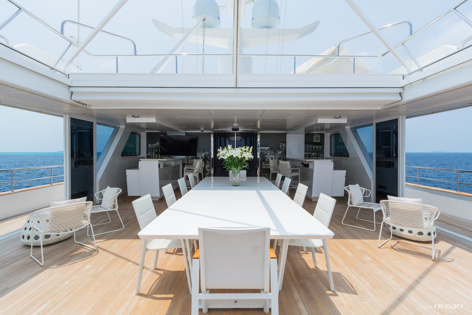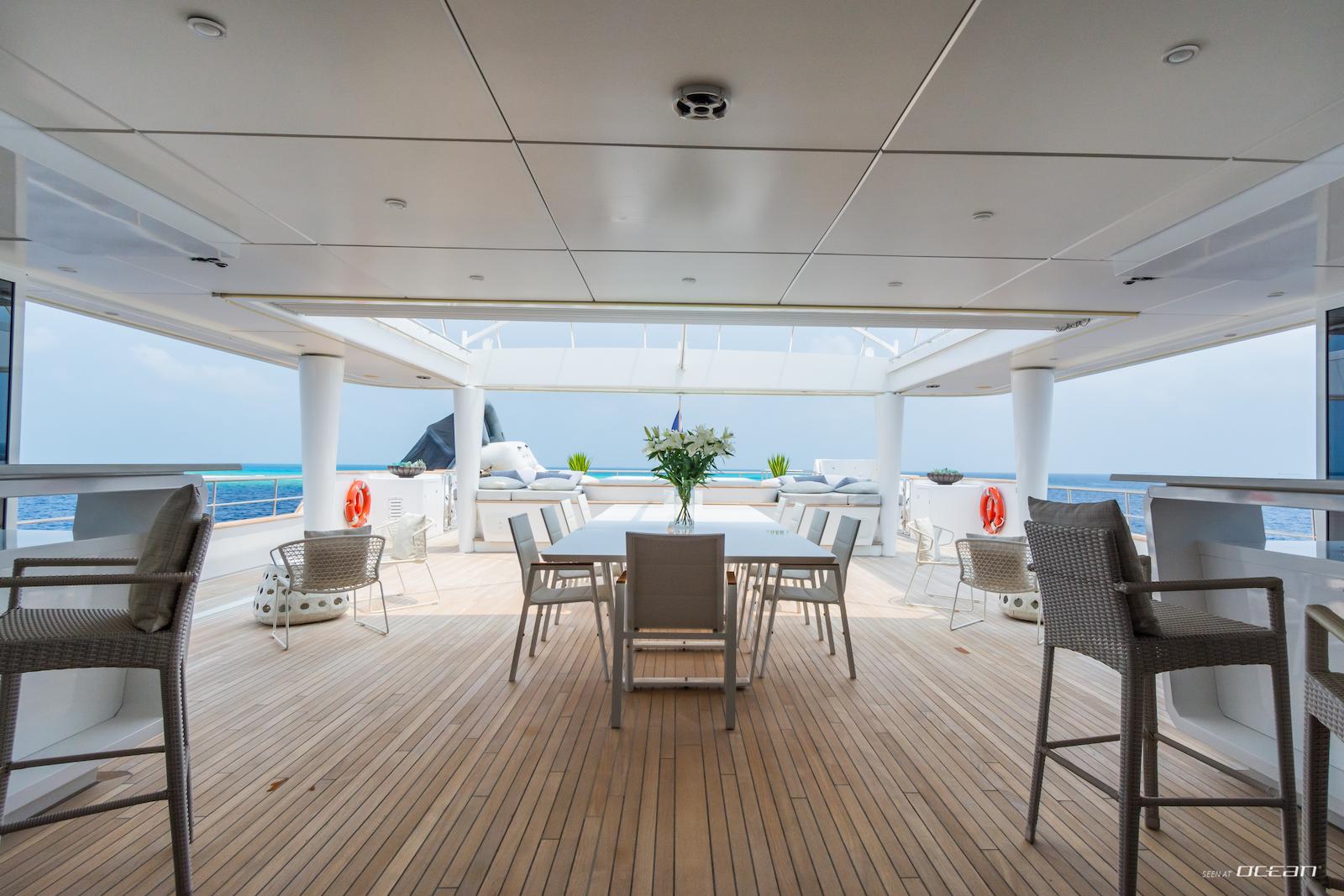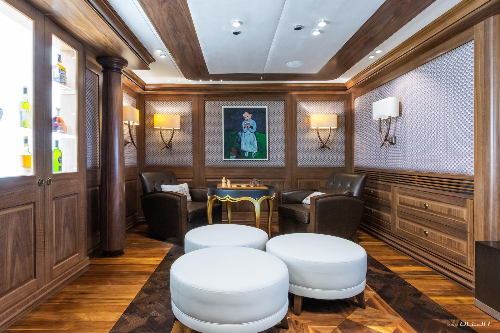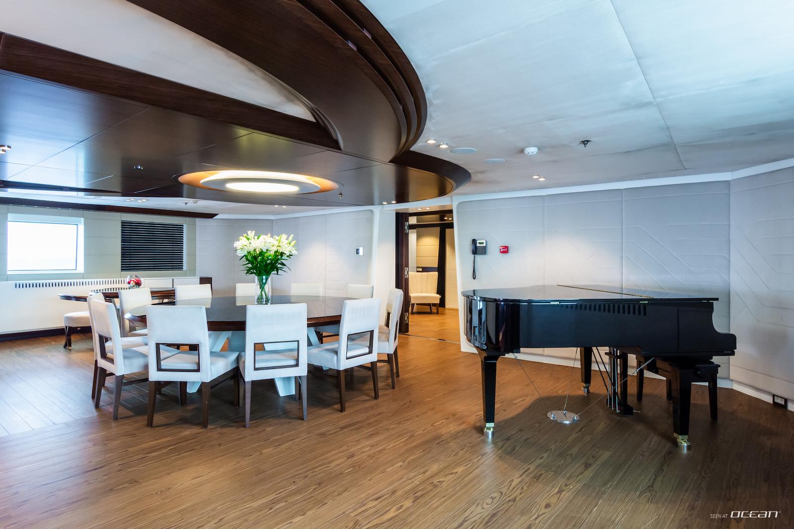 KATINA luxury superyacht for charter offers a sophisticated interior atmosphere with warm woods, contemporary lines and abundant natural light. A dedicated whisky and cigar room with a separate ventilation system provides a refined retreat for relaxed evenings onboard. Wellness amenities include a massage room, a fully equipped gym and a sauna for full body rejuvenation during long cruises. An onboard elevator enhances ease of movement between the decks. Social spaces are configured for both intimate gatherings and large celebrations.