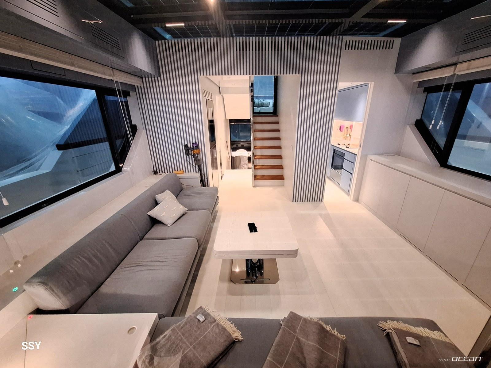 Charter Yacht LA FOLYE accommodates up to 8 guests across 4 cabins, including a master suite, a VIP cabin, and 2 twin cabins. The layout is designed to support both families and small groups, with comfortable interior spaces and integrated entertainment systems including TVs and a music and movie library for onboard use.