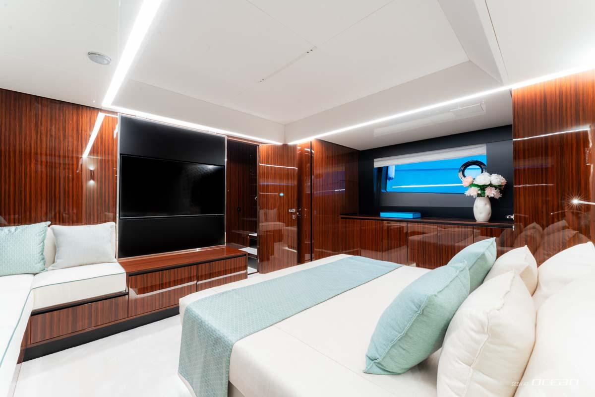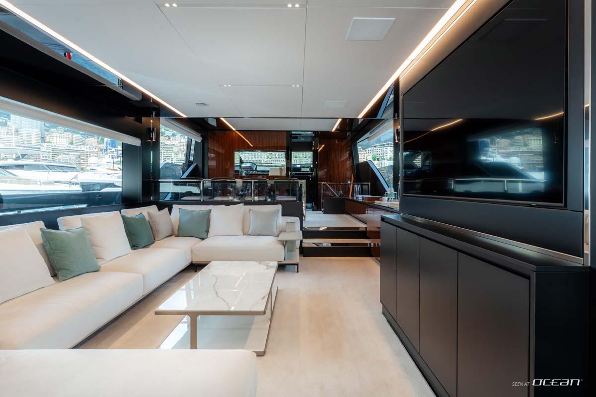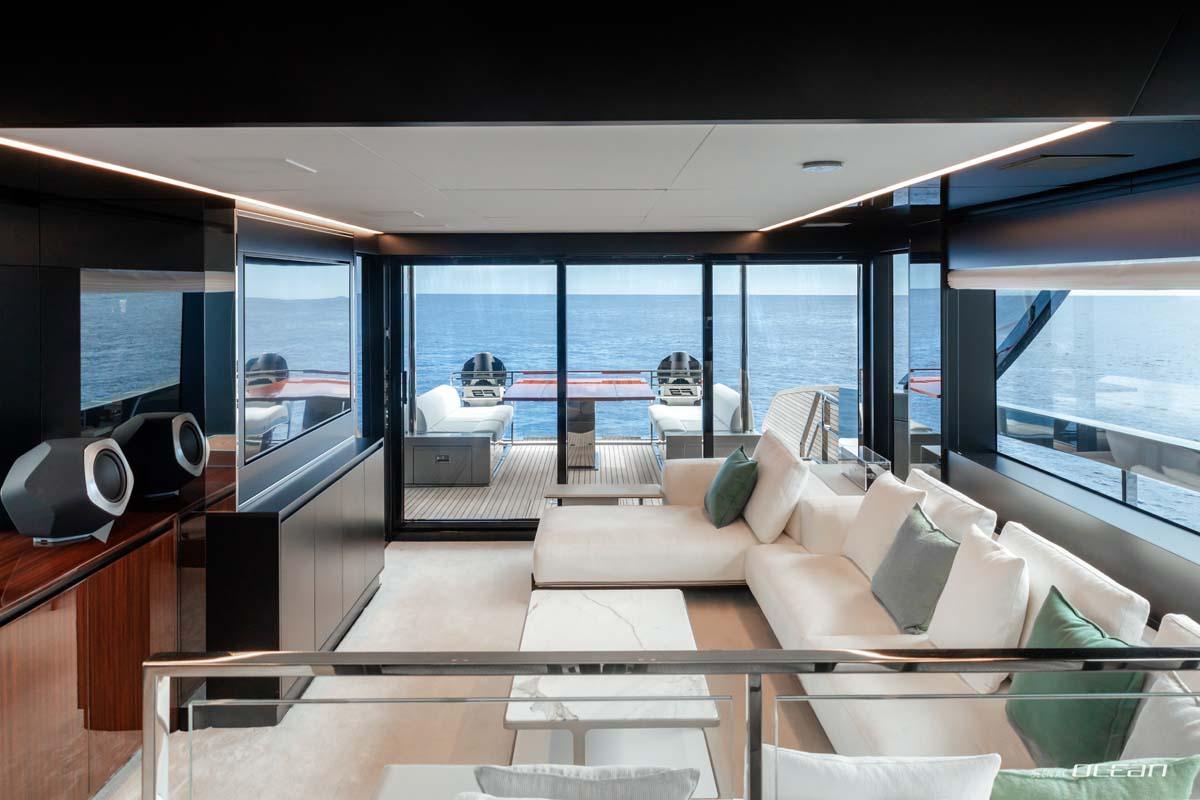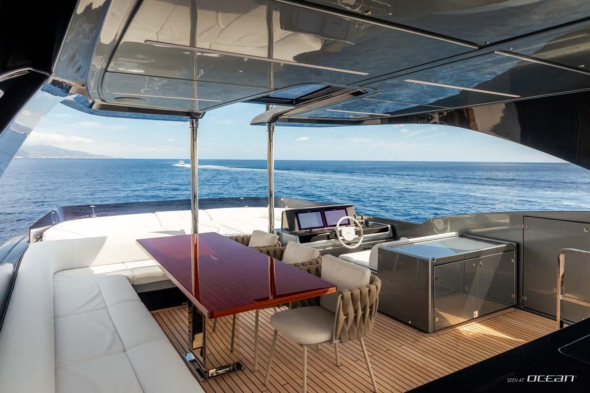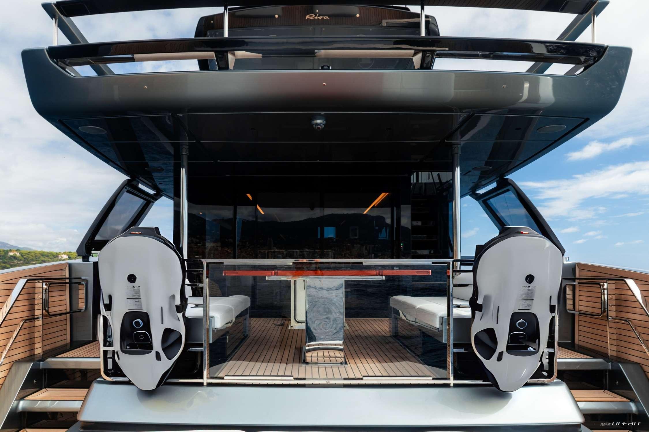 From her mirrored surfaces to her aerodynamic lines, L’AS BLEU embodies the spirit of the modern Riva woman – bold yet graceful, confident yet calm. Her 40 sqm flybridge sets the stage for sun-soaked days and starlit dinners, while her fold-out beach club terraces bring the sea within arm’s reach. Whether it’s a morning espresso with Corsican peaks in view or an afternoon drift off Cap d’Antibes, every scene is cinematic, every moment perfectly composed.