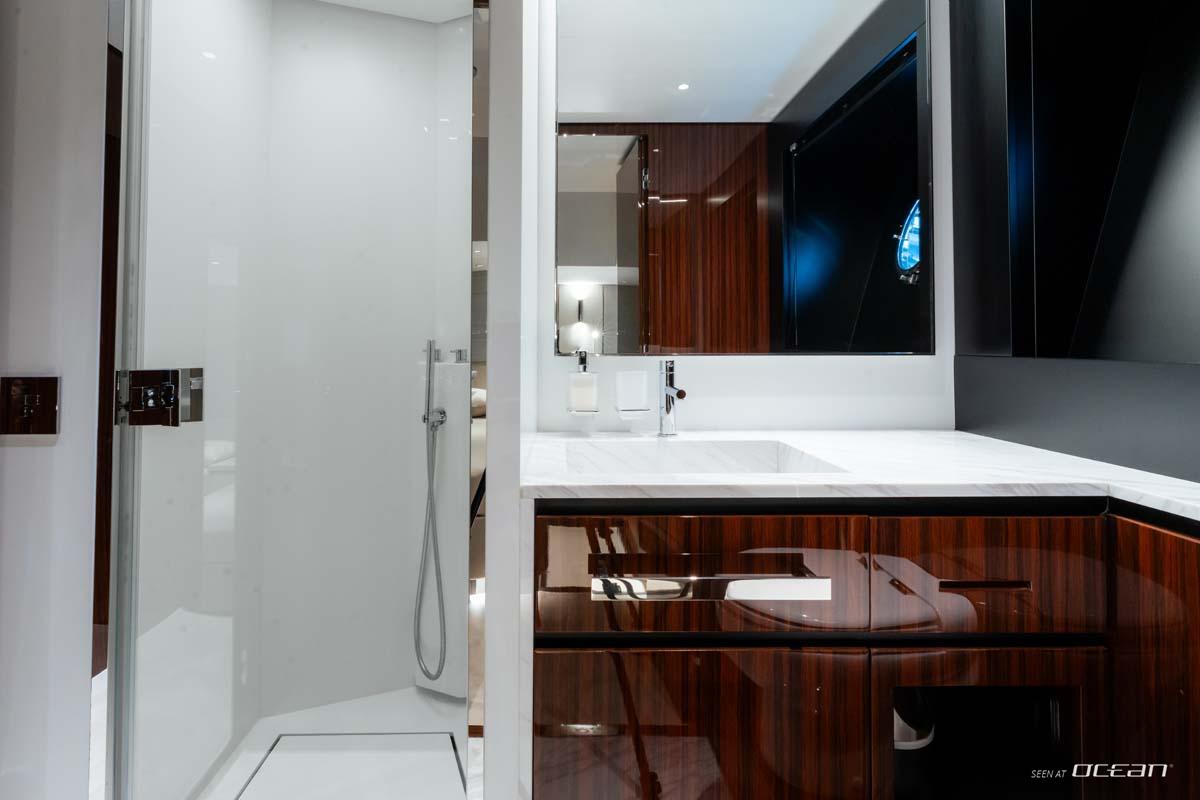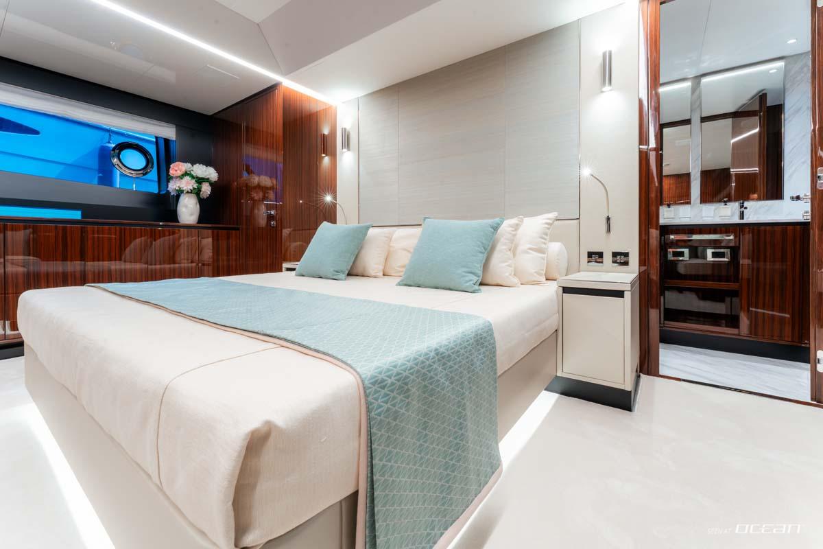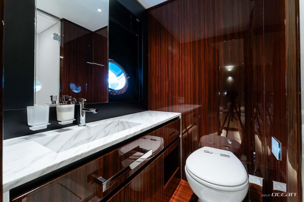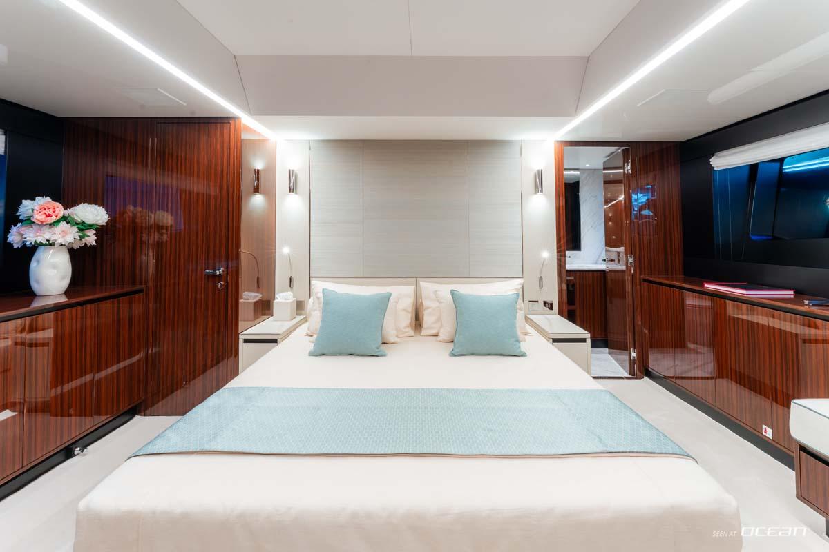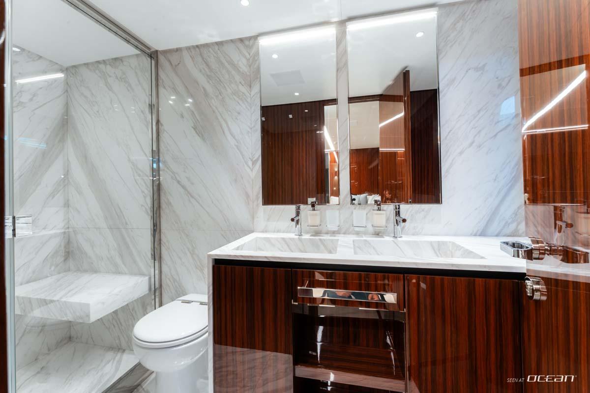 En-suite bathrooms in all cabins, air condition throughout, 2 generators, stabilizers underway and at anchor, watermaker, Starlink, Wi-Fi internet, Bluetooth Sonance premium sound system with independent Airplay in foredeck, cockpit and sundeck, TV in salon and all cabins, beach club with swimming platform with 2 fold-down terraces on each side, spacious sunpads and lounging areas, and a variety of water toys.