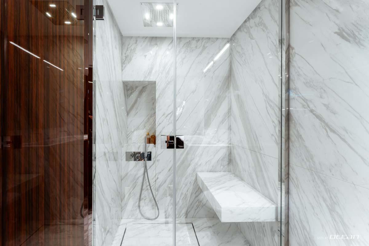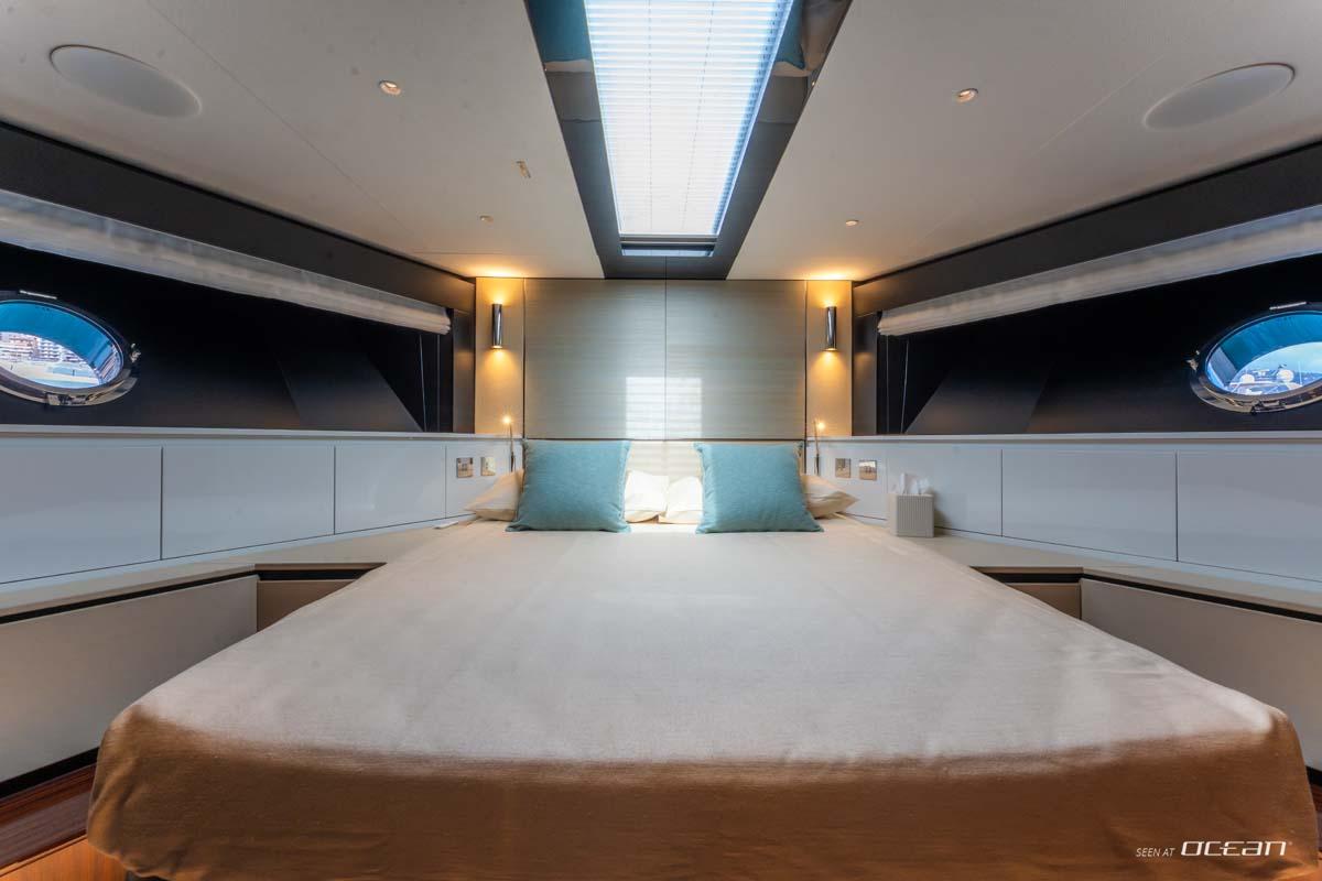 Inside, Charter Yacht L’AS BLEU reveals a soft, luminous palette of pale oak, high-gloss lacquers, and marble accents that mirror the glow of the Côte d’Azur. Floor-to-ceiling windows frame the horizon, while the salon flows seamlessly to the aft deck. Below, up to 8 guests sleep across 4 elegant ensuite cabins – a full-beam master, a serene VIP, and 2 refined twin cabins – each infused with Italian sophistication and serene comfort. Every detail speaks of quiet luxury, from designer lighting to the subtle rhythm of sea reflections across polished wood.
