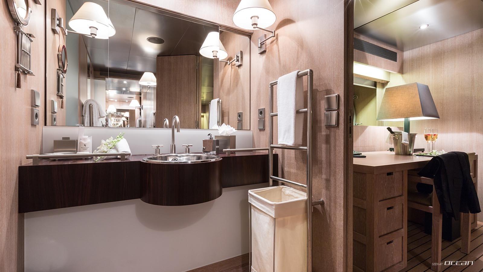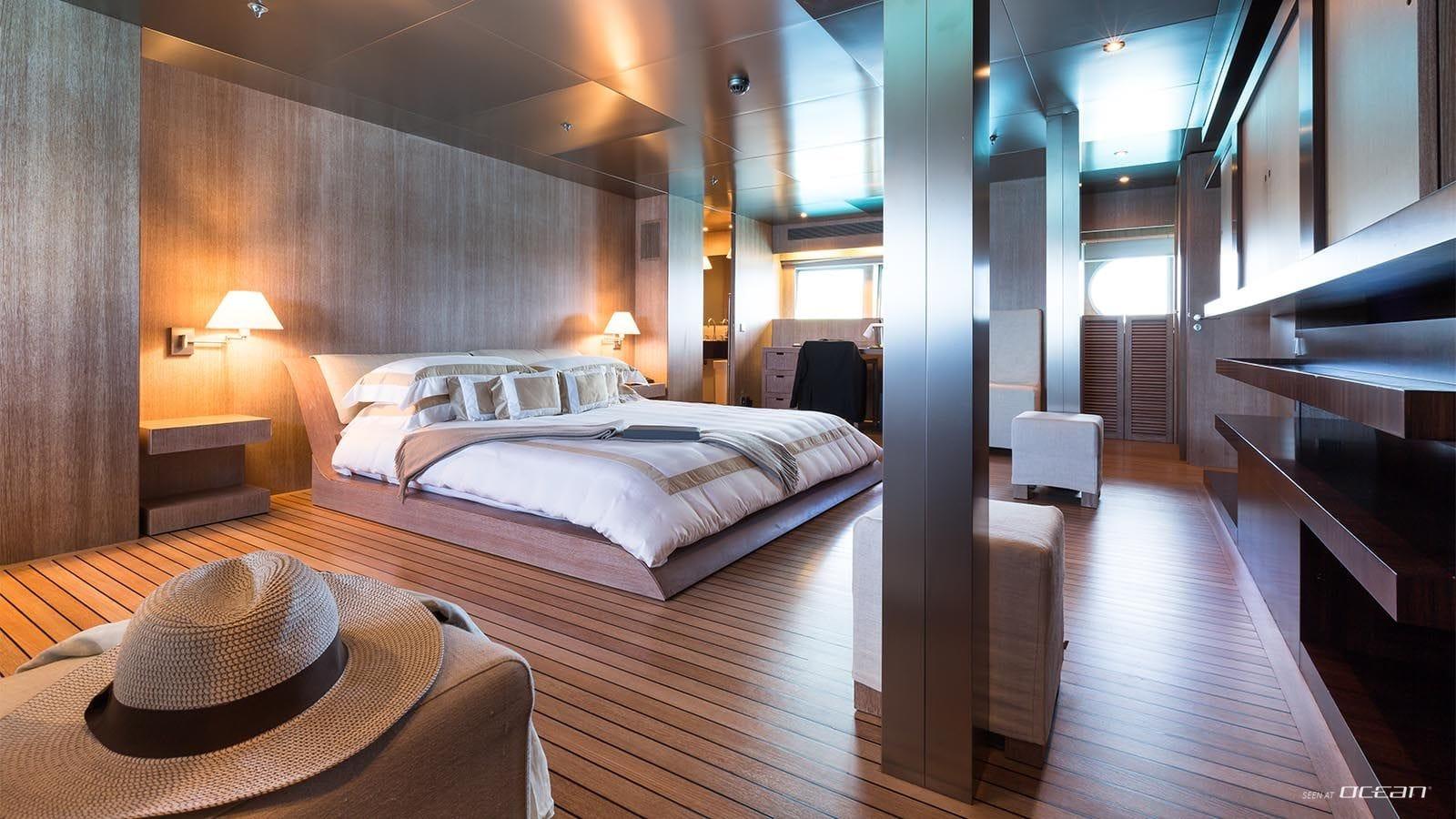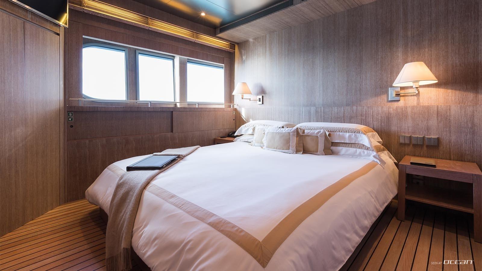 MARIU luxury motor yacht for charter accommodates up to 12 guests in 5 double cabins with king-size beds and 1 convertible cabin, perfectly suited for families and friends. Each cabin features en-suite bathrooms, Kaleidoscape AV systems, Apple TV, Satellite TV (upgraded 2020), Sonos entertainment system, iPad mini remote controls, AirDrop connectivity, and air conditioning throughout. The master suite offers his and hers bathrooms with a private jacuzzi. An elevator connects all four decks, including a large sun deck that can be flexibly shaded, with a forward Jacuzzi ideal for sundowners.