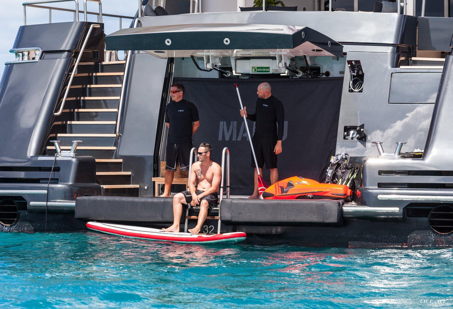RIB 9.5m 2008 Novurania chase tender (overhauled in 2011, full refit 2022 with new engines), RIB 4m Castoldi jet tender (engine overhauled in 2021), Yamaha GP1800R HO (2021), Yamaha Waverunner 1800 (2018), 2 Seabob (1 brand new 2020), Flyboard Legend (2015), Jetpack (2015), Kneeboard, Bodyboard, 3 wakeboards (O'Brian Coda 129cm, Jstar Titan 141cm, Jstar Region 141cm), Wakesurf Liquid Force (2015), 2 kiteboards (RRDesign Placebo 134x41, Underground 132x41), 2 kitesurfing kites (RRD Passion 13m, RRD Obsession 7m), 3 waterskis (pairs) (Jobe Sixtyseven, Subjeet, Hydroslide 138cm), Monoskies Jobe 68/69, Windsurf board Naked 128, 2 windsurf sails (5m and 6m), 2 SUPs (2021), 1 two-person rigid kayak (2016), 2 one-person rigid kayaks (2016), Towable Banana 4 pax, Towable Jobe Lumar 3 pax, Towable Airstream III 3 pax, 2 towable Jobe children doughnuts (new 2021), 2 sets of game fishing rods, 12 sets of snorkeling gear, 6 full sets of diving equipment (RDV diving only), Dive compressor, 4 mountain bikes KTM, 2 electric bikes, JetSurf Factory GP Green (2018), platform 2x4m and a platform for easy access to the jet skis.