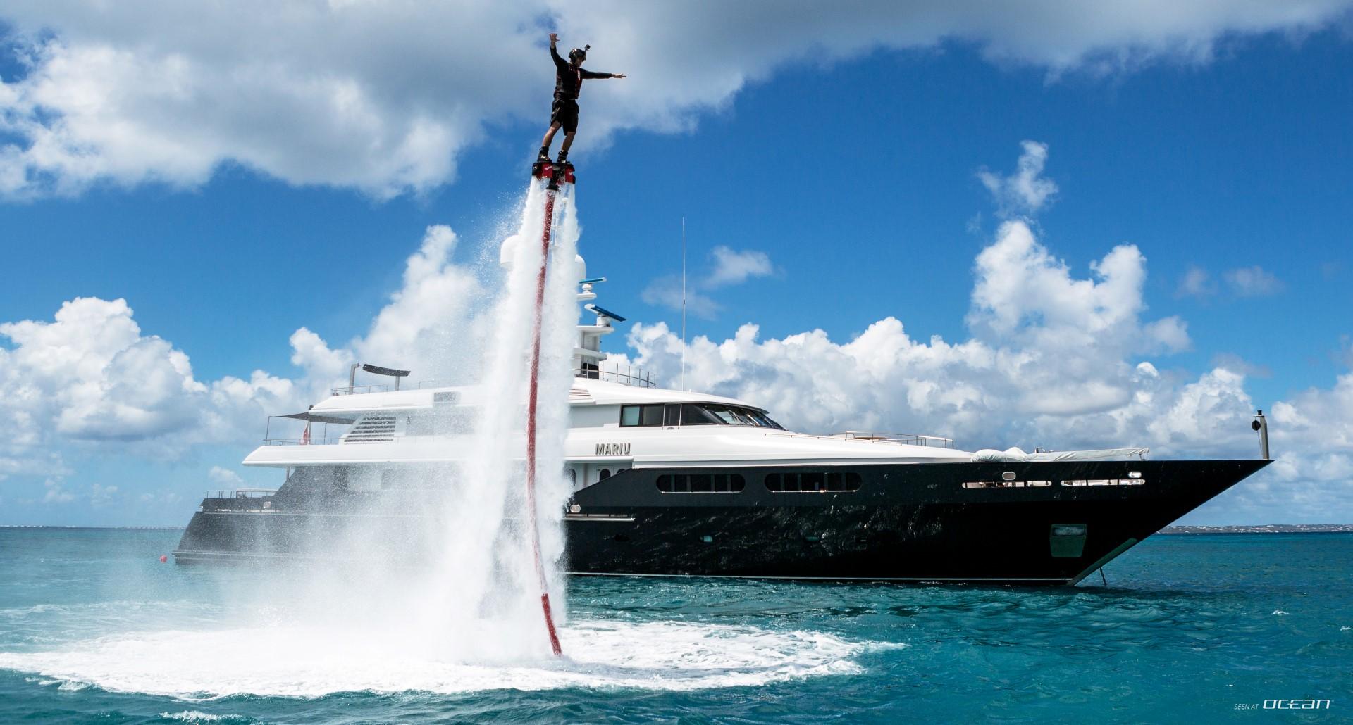 Guests can enjoy stabilizers underway and at anchor, Wi-Fi via Starlink, gym/exercise equipment, and a wide selection of board games. MARIU is an approved RYA water sports centre, with an exceptional range of toys for the most active guests. Outdoor entertainment includes a deck Jacuzzi, TV, and sound system, providing a perfect balance of relaxation and adventure.