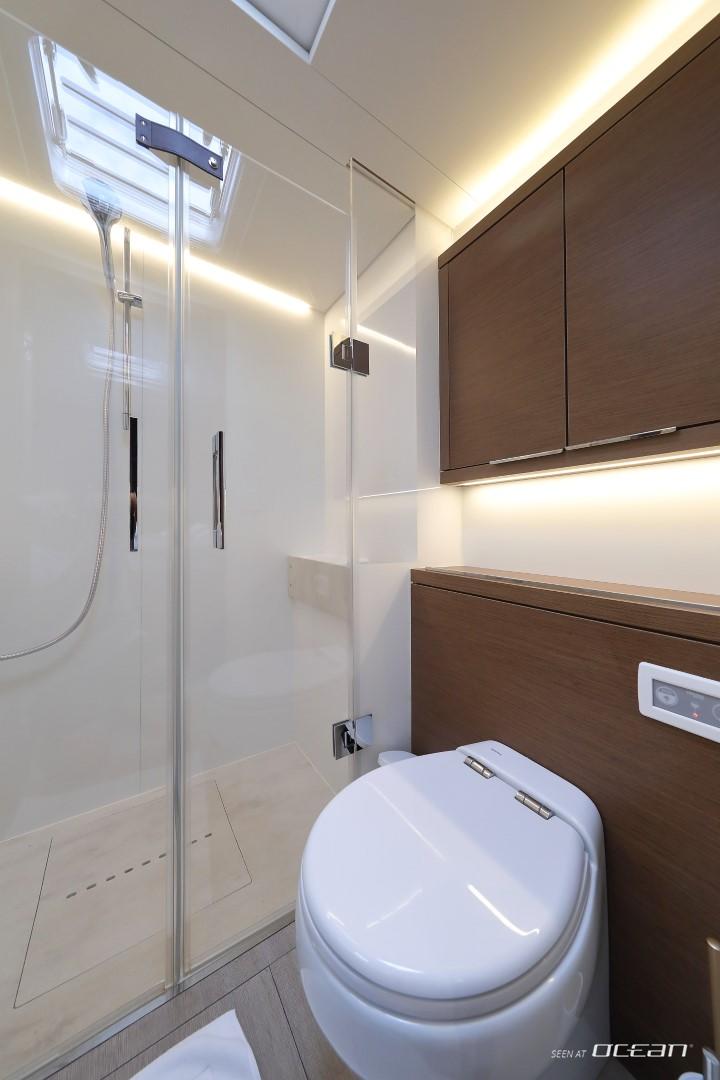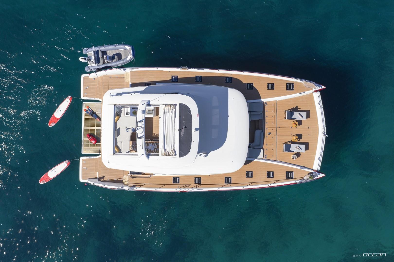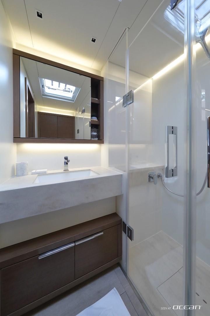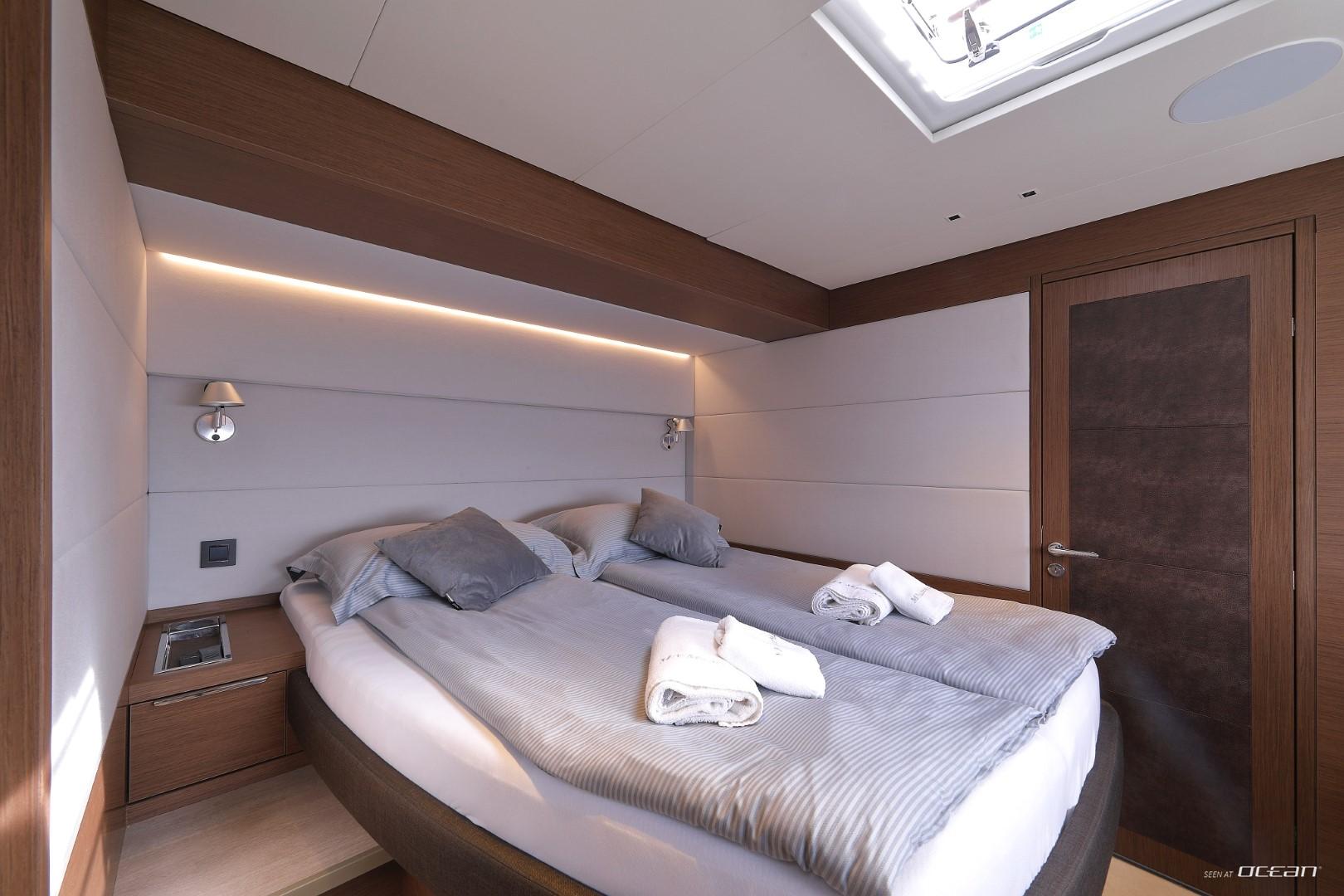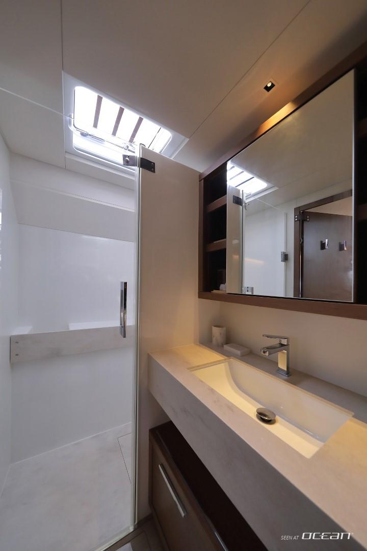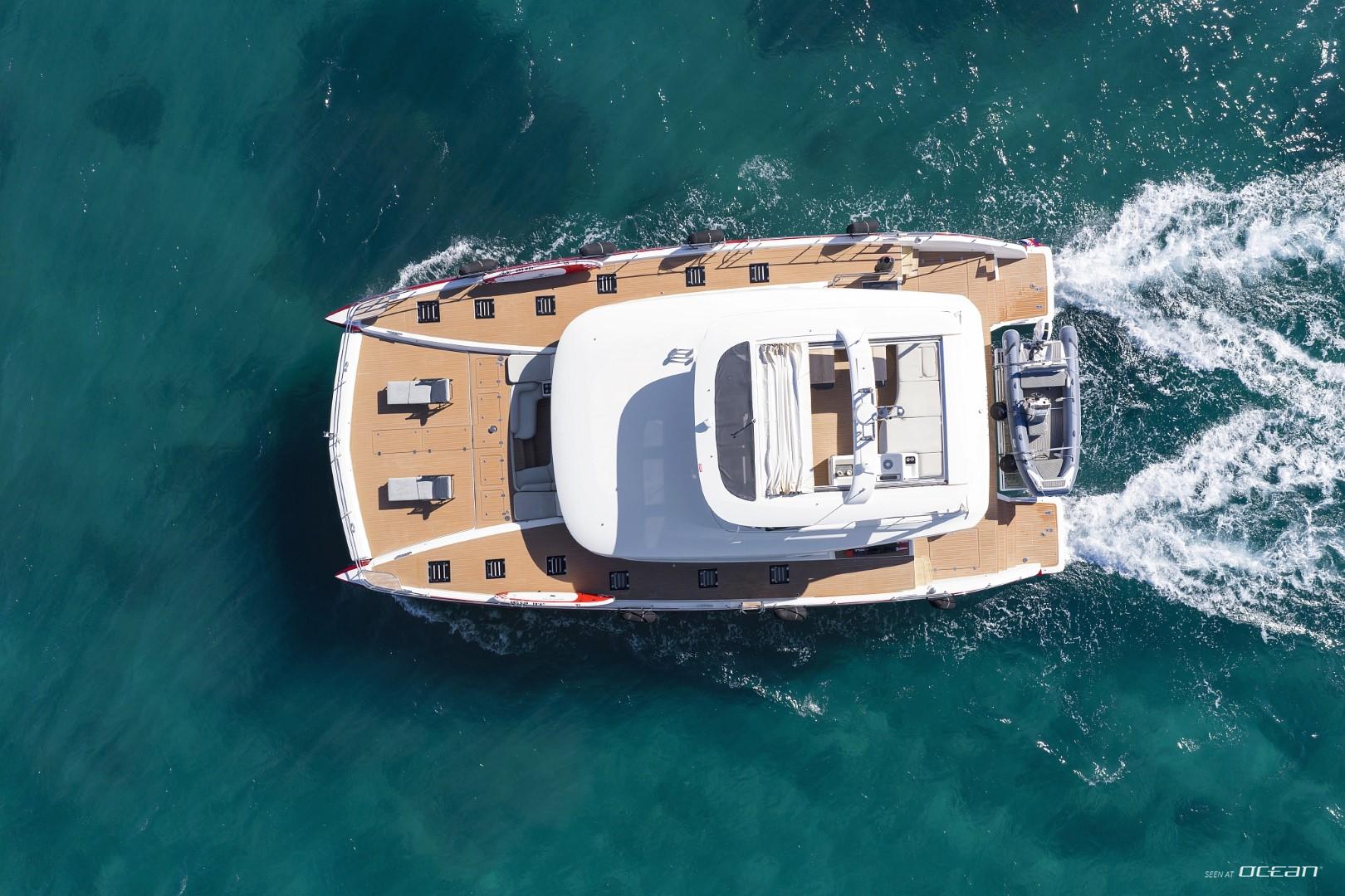 All cabins with en-suite bathrooms, air condition throughout, generator, electric toilets, ice maker, BBQ grill, water maker, teak cockpit, Smart TV in salon, Fusion Bluetooth radio CD/MP3-player, cockpit speakers, Wi-Fi internet, Miele washing machine and dishwasher, inverter, USB charging ports, hydraulic swimming platform remotely controlled, stern/cockpit shower and water toys.