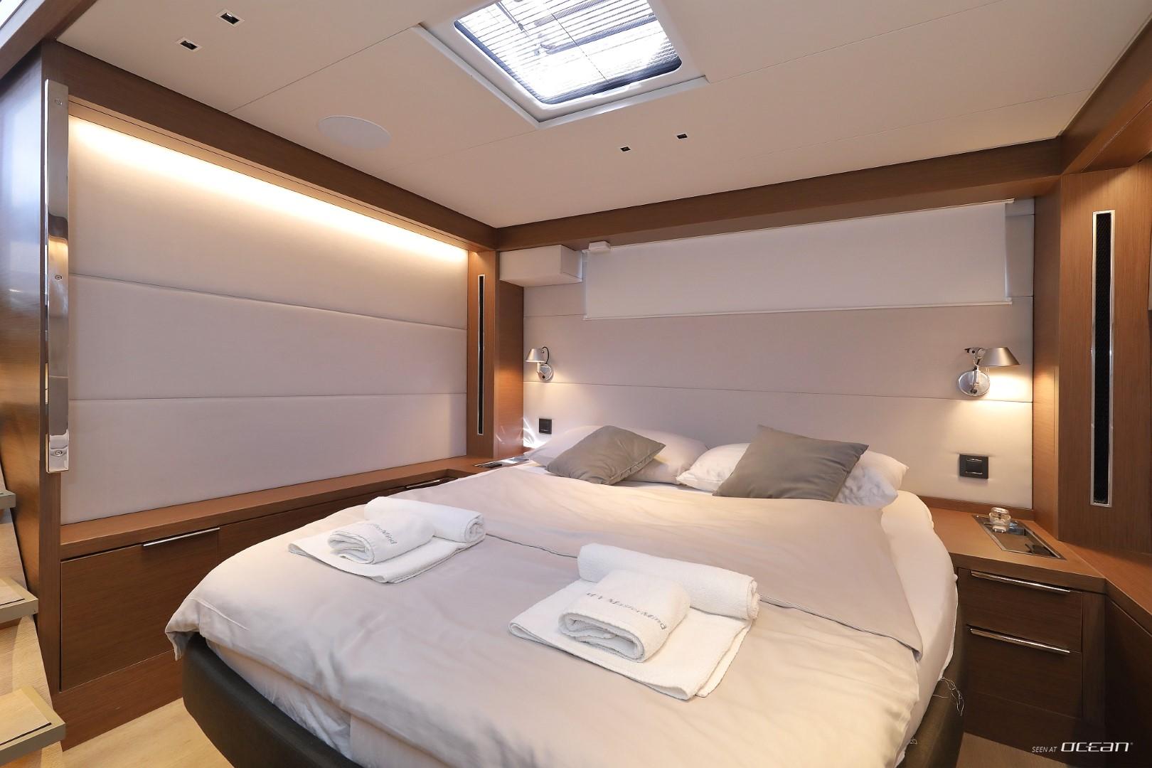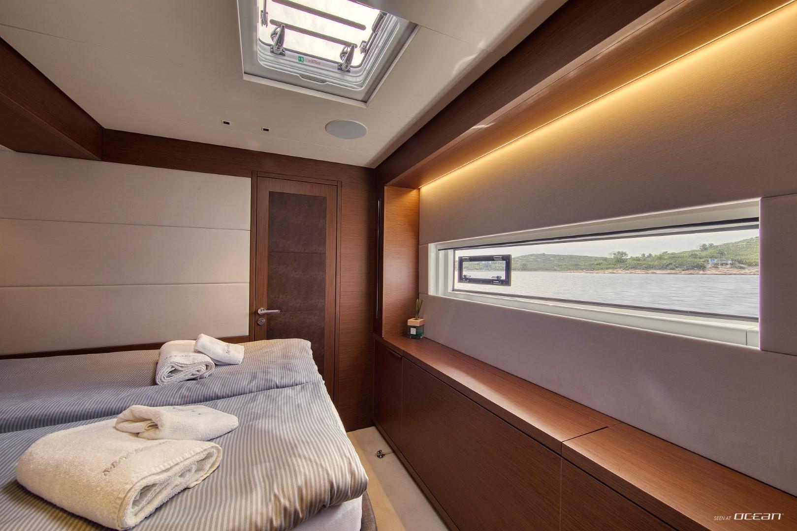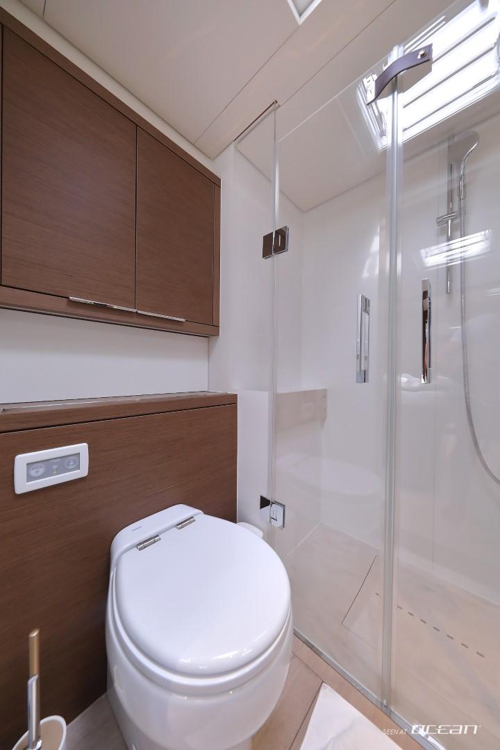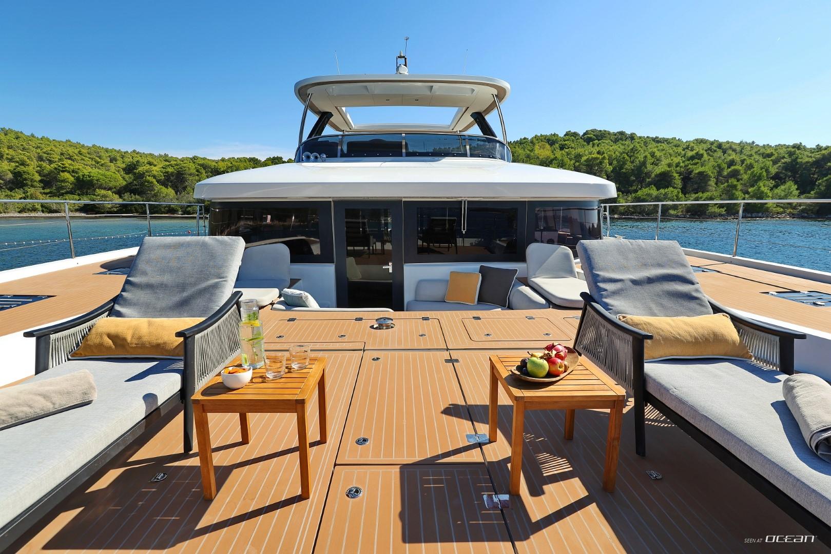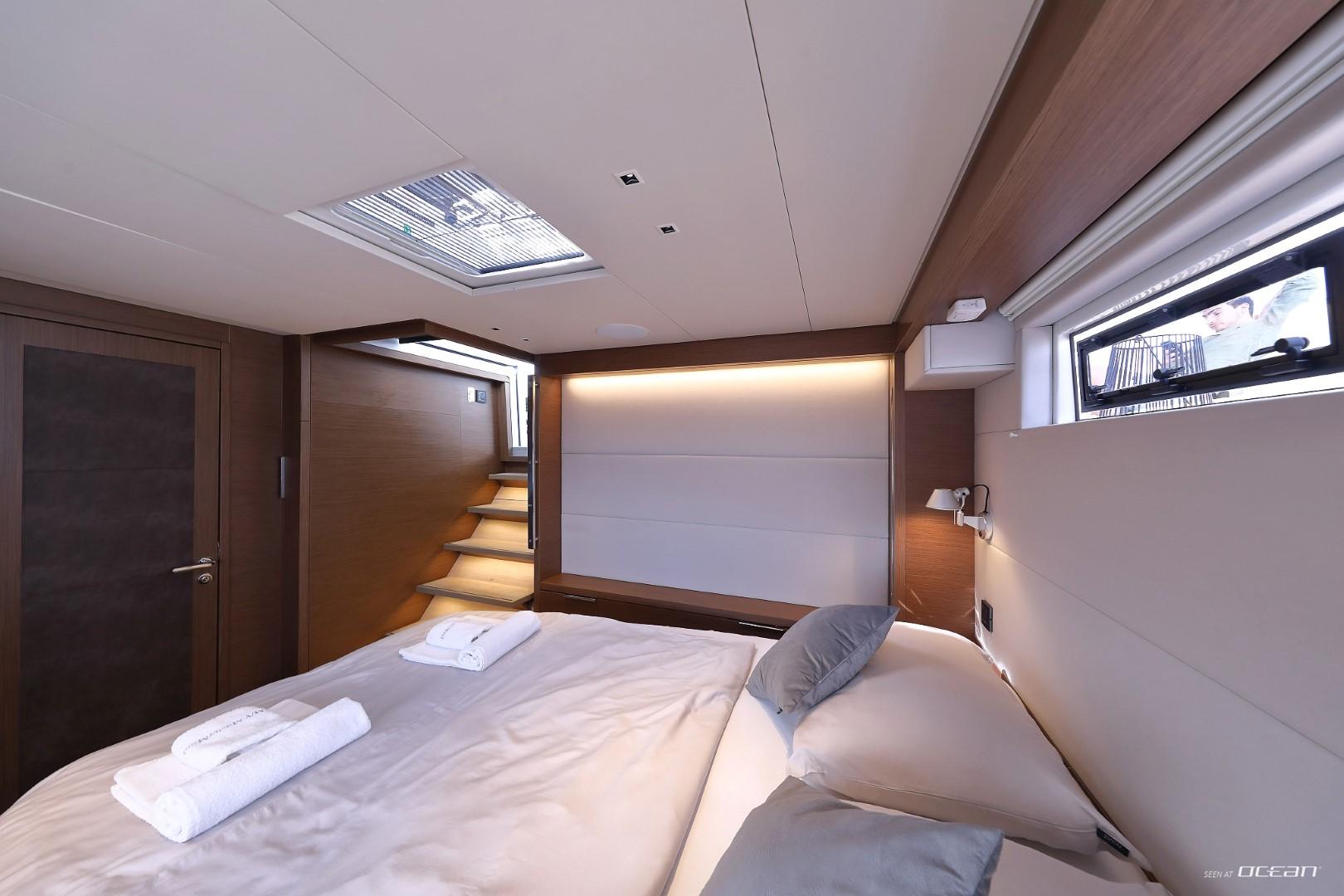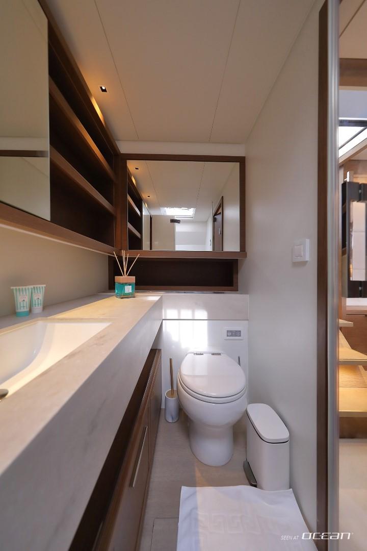 All cabins with en-suite bathrooms, air condition throughout, generator, electric toilets, ice maker, BBQ grill, water maker, teak cockpit, Smart TV in salon, Fusion Bluetooth radio CD/MP3-player, cockpit speakers, Wi-Fi internet, Miele washing machine and dishwasher, inverter, USB charging ports, hydraulic swimming platform remotely controlled, stern/cockpit shower and water toys.