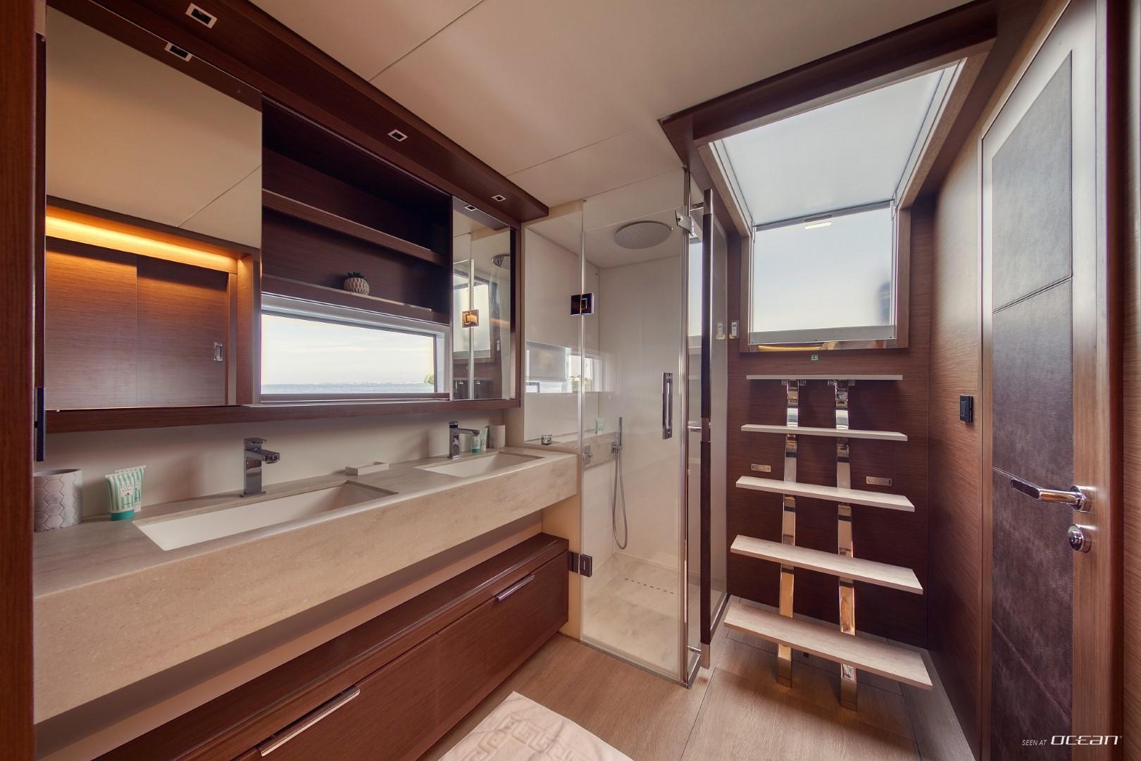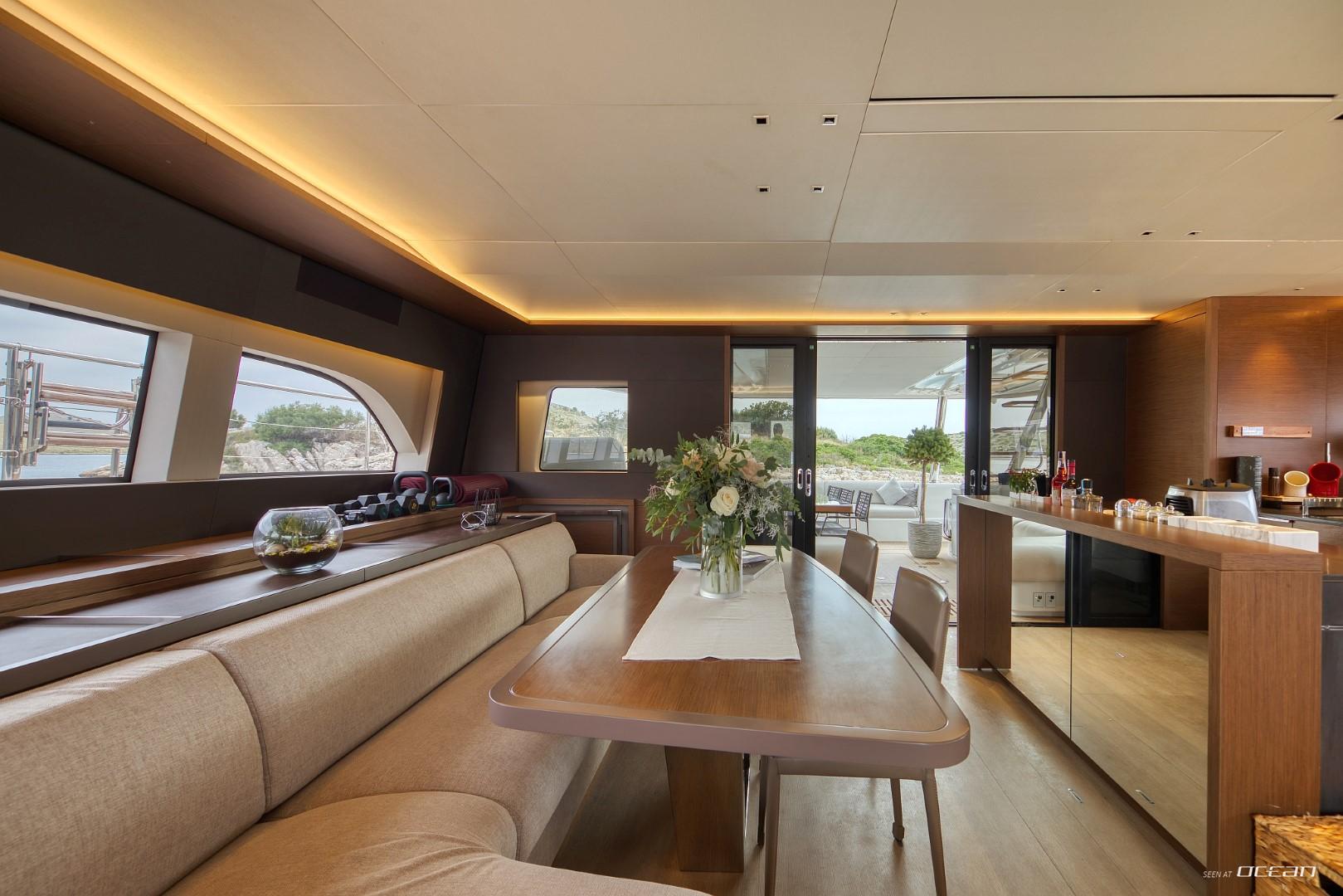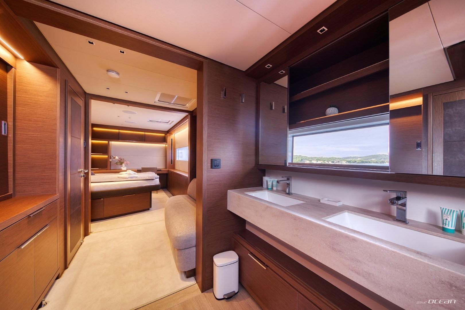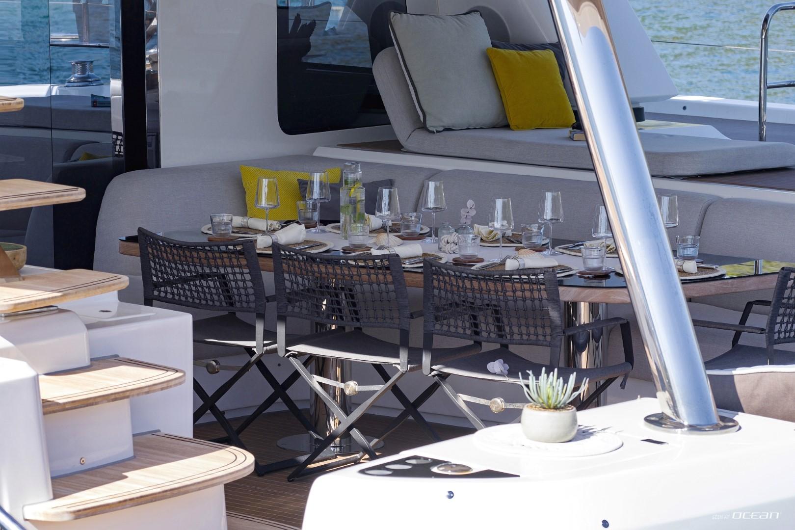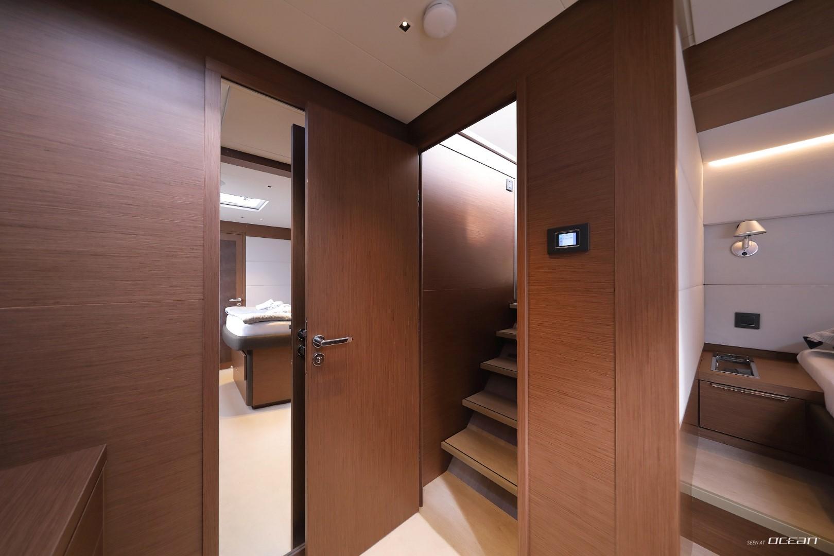 All cabins with en-suite bathrooms, air condition throughout, generator, electric toilets, ice maker, BBQ grill, water maker, teak cockpit, Smart TV in salon, Fusion Bluetooth radio CD/MP3-player, cockpit speakers, Wi-Fi internet, Miele washing machine and dishwasher, inverter, USB charging ports, hydraulic swimming platform remotely controlled, stern/cockpit shower and water toys.