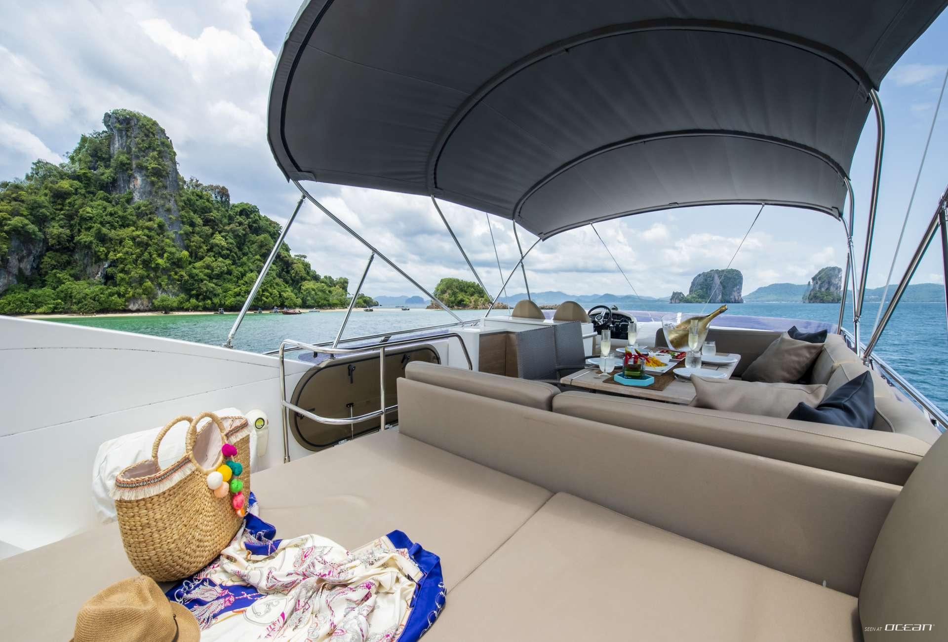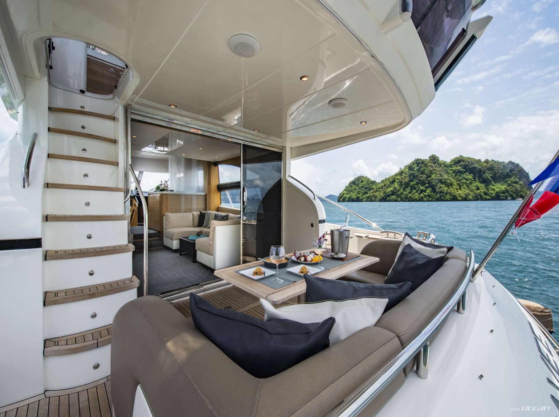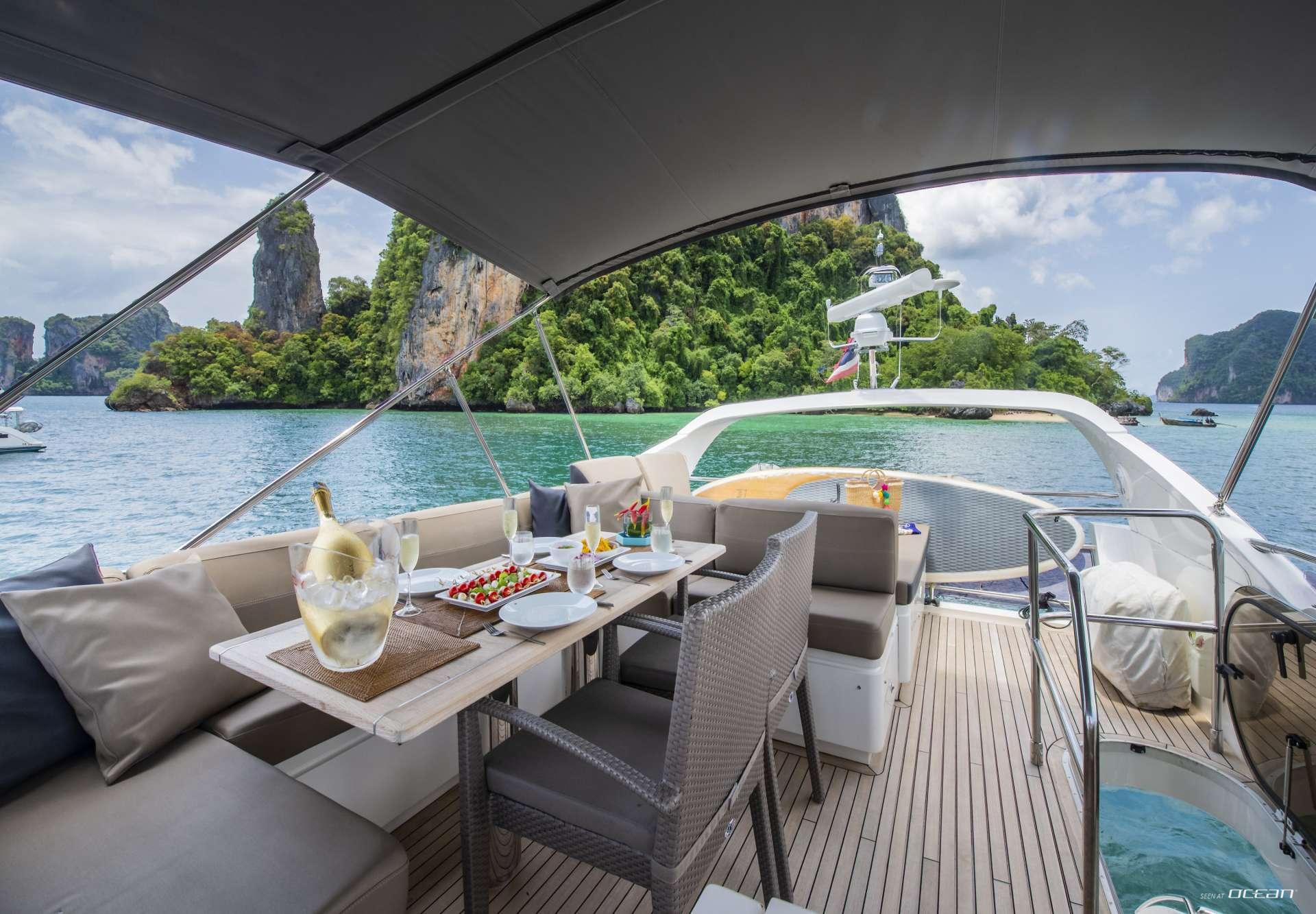 MAYAVEE is a Princess 60 luxury motor yacht offering a perfect blend of performance, style, and comfort for cruising the Andaman Sea. Launched with a sleek hull design and state-of-the-art infusion technology, she combines excellent sea-keeping capabilities with spacious interiors and high-end finishes. Guests will enjoy smooth sailing and efficient fuel consumption, making her ideal for island-hopping between Thailand, Malaysia, and Myanmar.