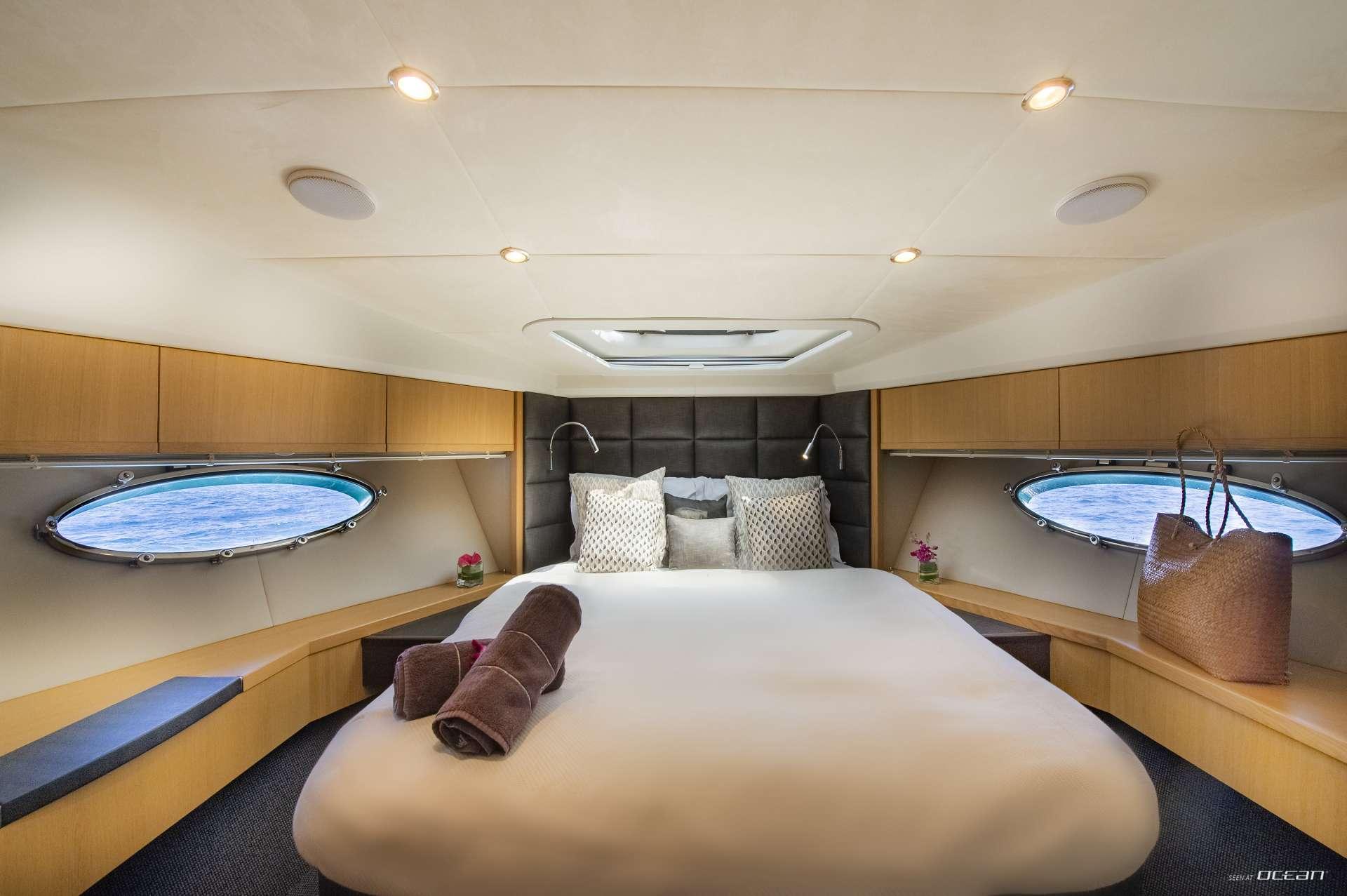 En-suite bathrooms in all cabins, air condition throughout, generator, water maker, ice maker, Wi-Fi internet on board, iPod docking stations, inverter, BBQ grill, hairdryers, swimming platform, stern/cockpit shower and a variety of water toys.
