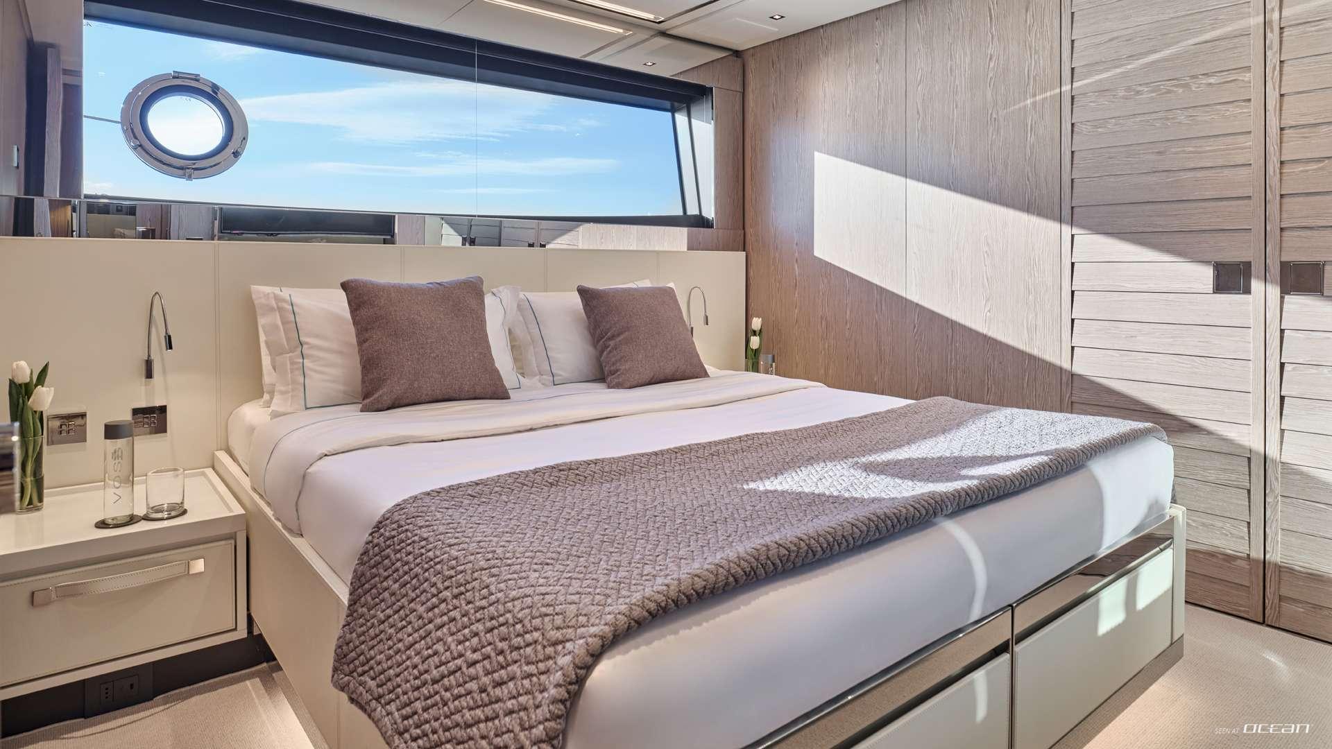 Charter Yacht MENANGIO X accommodates up to 8 guests across 5 beautifully appointed cabins, including a main deck master stateroom and 4 doubles on the lower deck, 2 of which feature twin beds, ideal for flexible group arrangements. Each cabin offers ensuite facilities, smart TVs, and Starlink internet, while full stabilization both underway and at anchor ensures a smooth and comfortable experience throughout.