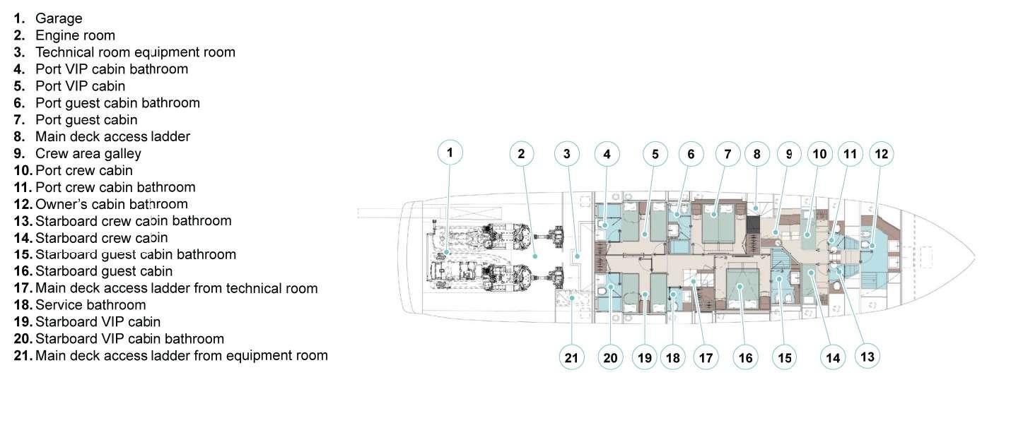 Cabin configuration: 1 master, 2 VIP and 2 twin cabins