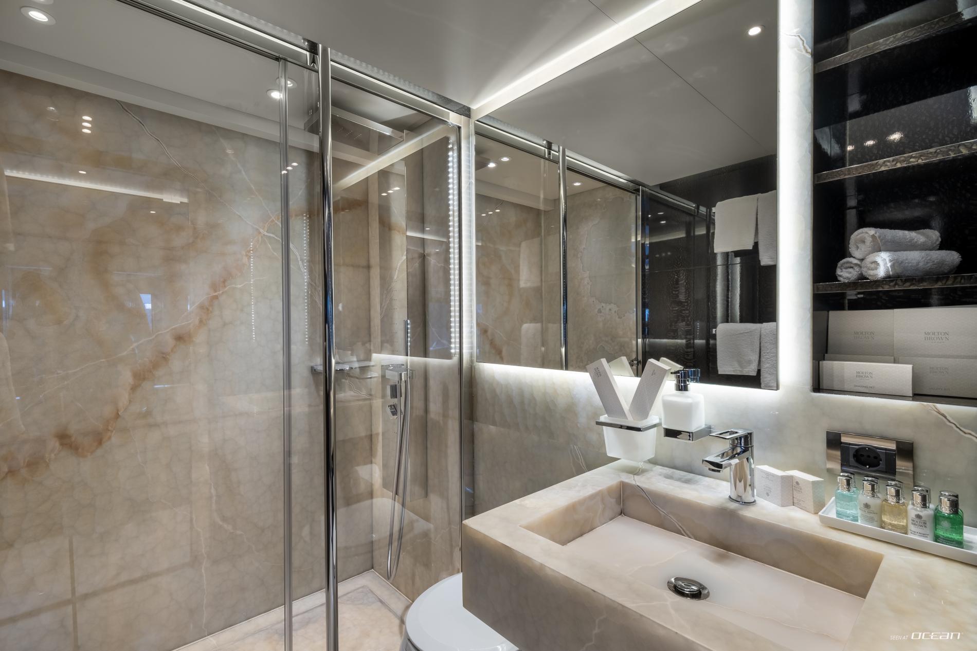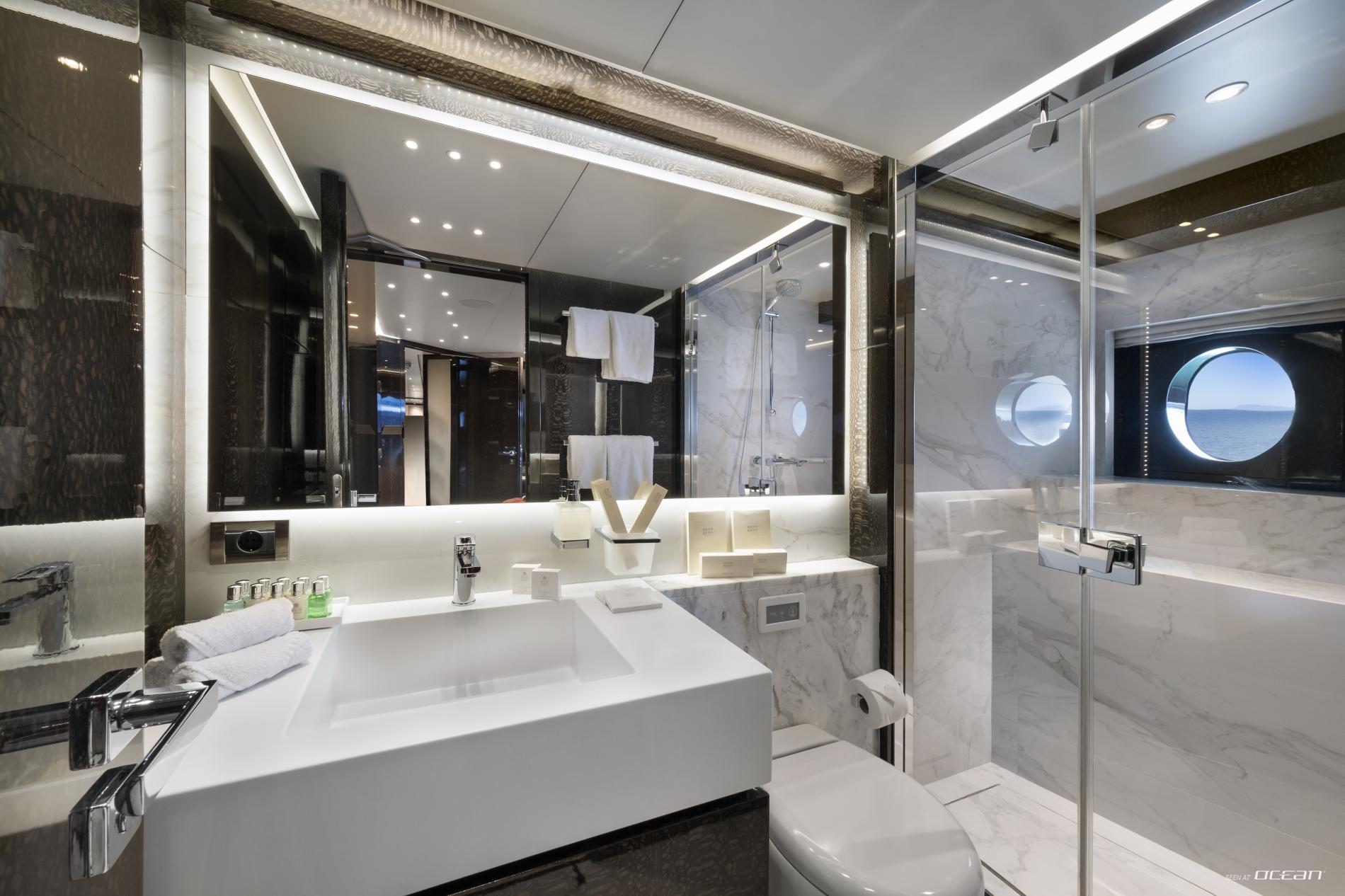En-suite bathrooms in all cabins, air condition throughout, 2 generators, stabilizers at anchor, stabilizers underway, water maker, ice makers, Starlink, Wi-Fi internet, sauna and jacuzzi, LED-TV, DVD-player and radio CD/MP3-player in saloon and all cabins, AirPlay for Apple devices in saloon and sundeck, guests cabins and main deck, iPod docking stations, movie and music library available on all TVs, home cinema in the children lounge, Apple TV, Netflix Disney, washing machines and dryers, BBQ grill, gym gear, swimming platform, and a variety of water toys.