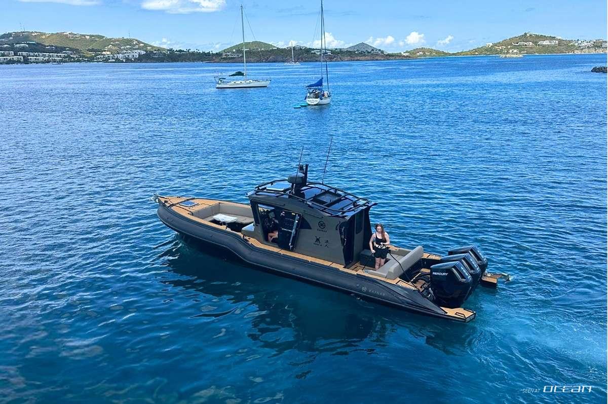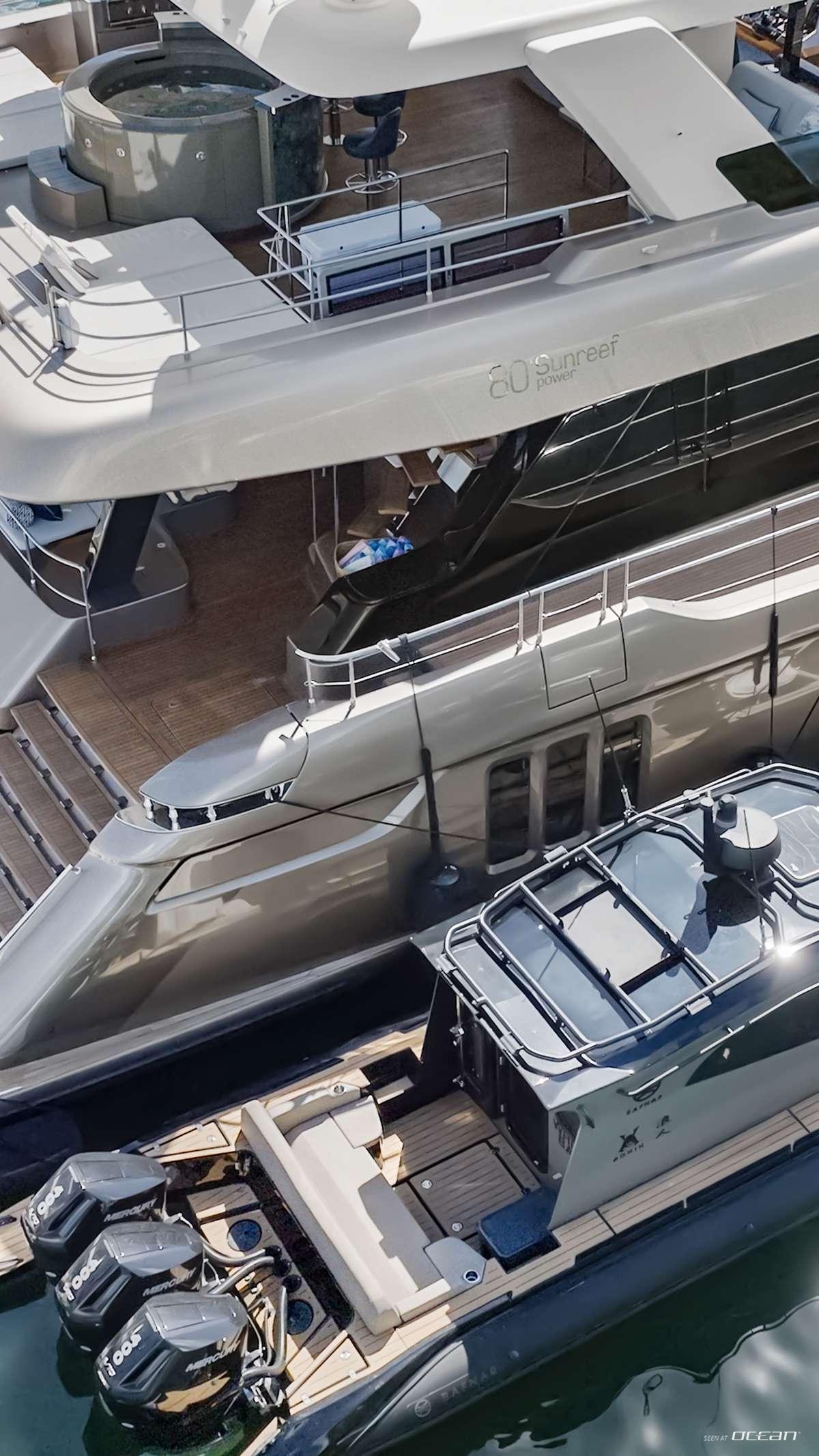 12m and 14-person Ronin sport tender with 1200hp engine and air-conditioned pilot house, 6.4m tender with 115hp engine, 2 eFoils, kayaks, 2 SeaBobs with cameras, wakeboard, waterskis for adults and kids, 2 stand-up paddleboards, inflatable loungers, tubes, lily pad, 10 sets of snorkeling gear, and towable inflatables