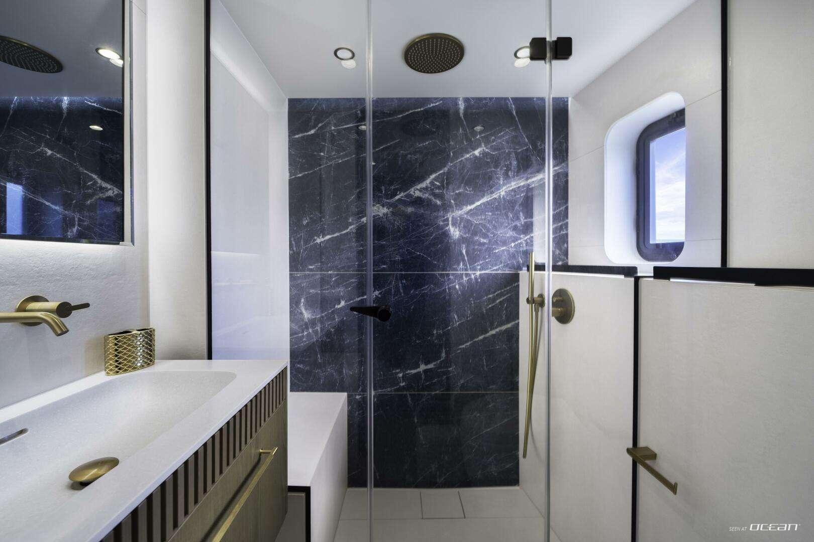 En-suite bathrooms in all cabins, air condition throughout, generator, jacuzzi, watermaker, Samsung smart TVs in salon and all cabins, Wi-Fi internet, swimming platform, and a variety of water toys