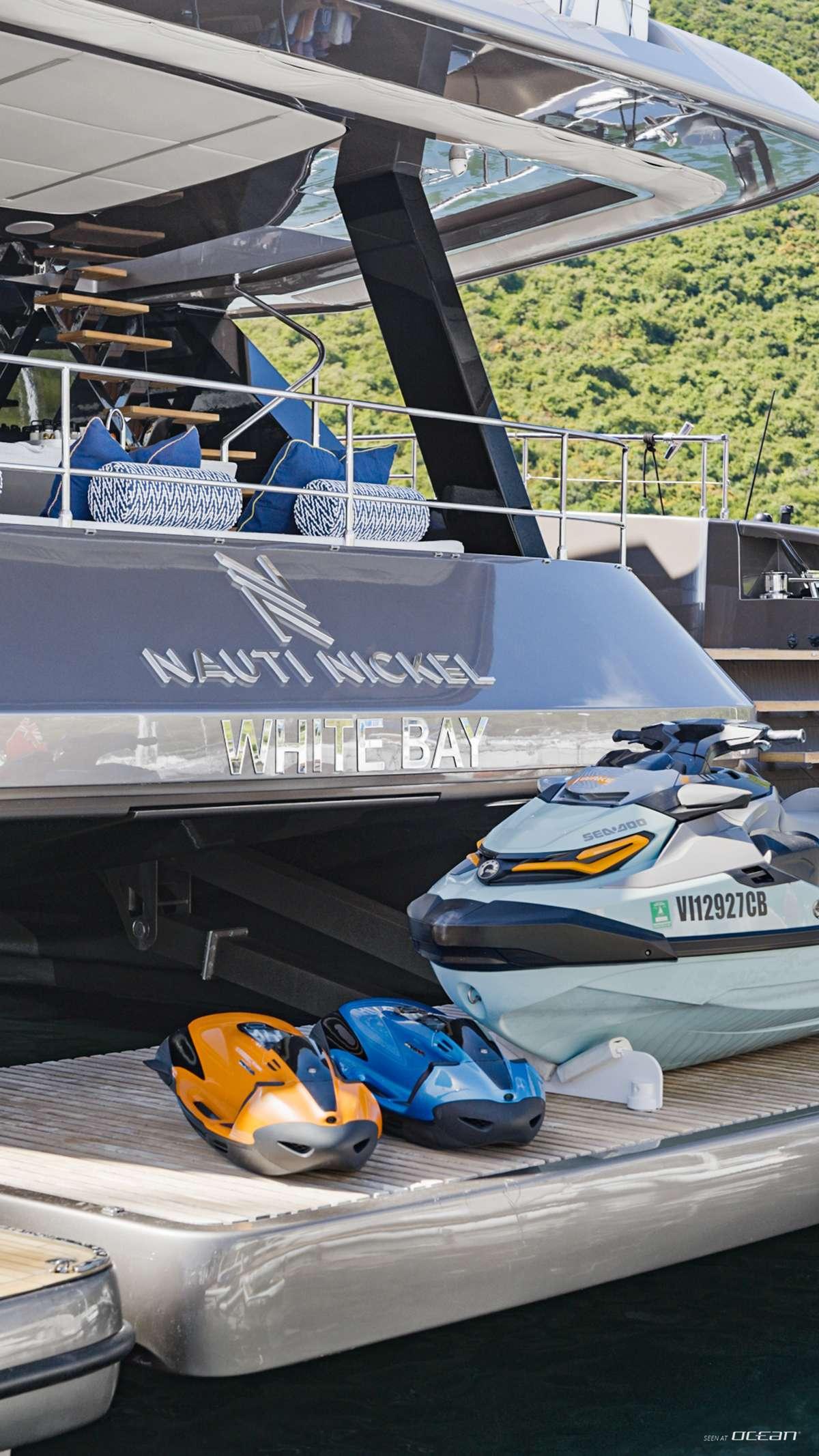 Fully crewed by an experienced team of 5, including a talented chef, NAUTI NICKEL power catamaran for charter delivers attentive service with a relaxed onboard atmosphere. Guests can enjoy an extensive selection of water toys including e-foils, seabobs with cameras, kayaks, assorted boards and skis, towables, and 2 tenders, transforming each anchorage into a playground. Available for charter in the Virgin Islands, NAUTI NICKEL combines luxury, space, and adventure aboard a standout 80 Sunreef Power.