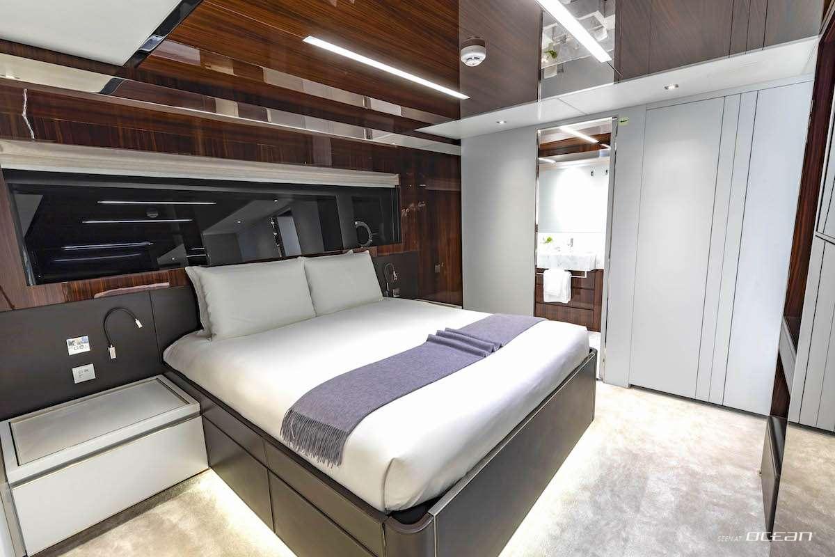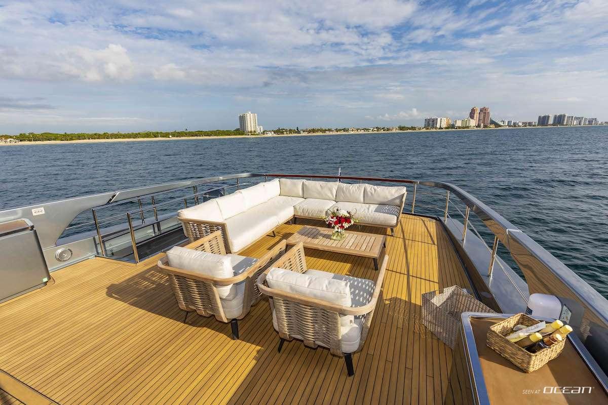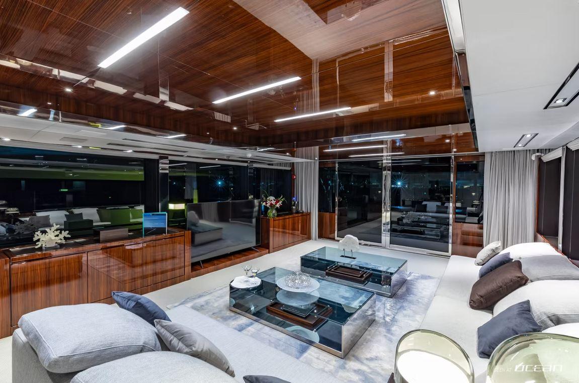 On board, Charter Yacht NO SURRENDER creates an effortless connection to the sea through her well-balanced exterior layout. The flybridge offers inviting lounge and dining areas with elevated views, while the foredeck provides generous sunpads for laid-back moments under the sun. Aft, the deck flows seamlessly into the main salon, where large windows and open spaces enhance the sense of light and comfort throughout the yacht.