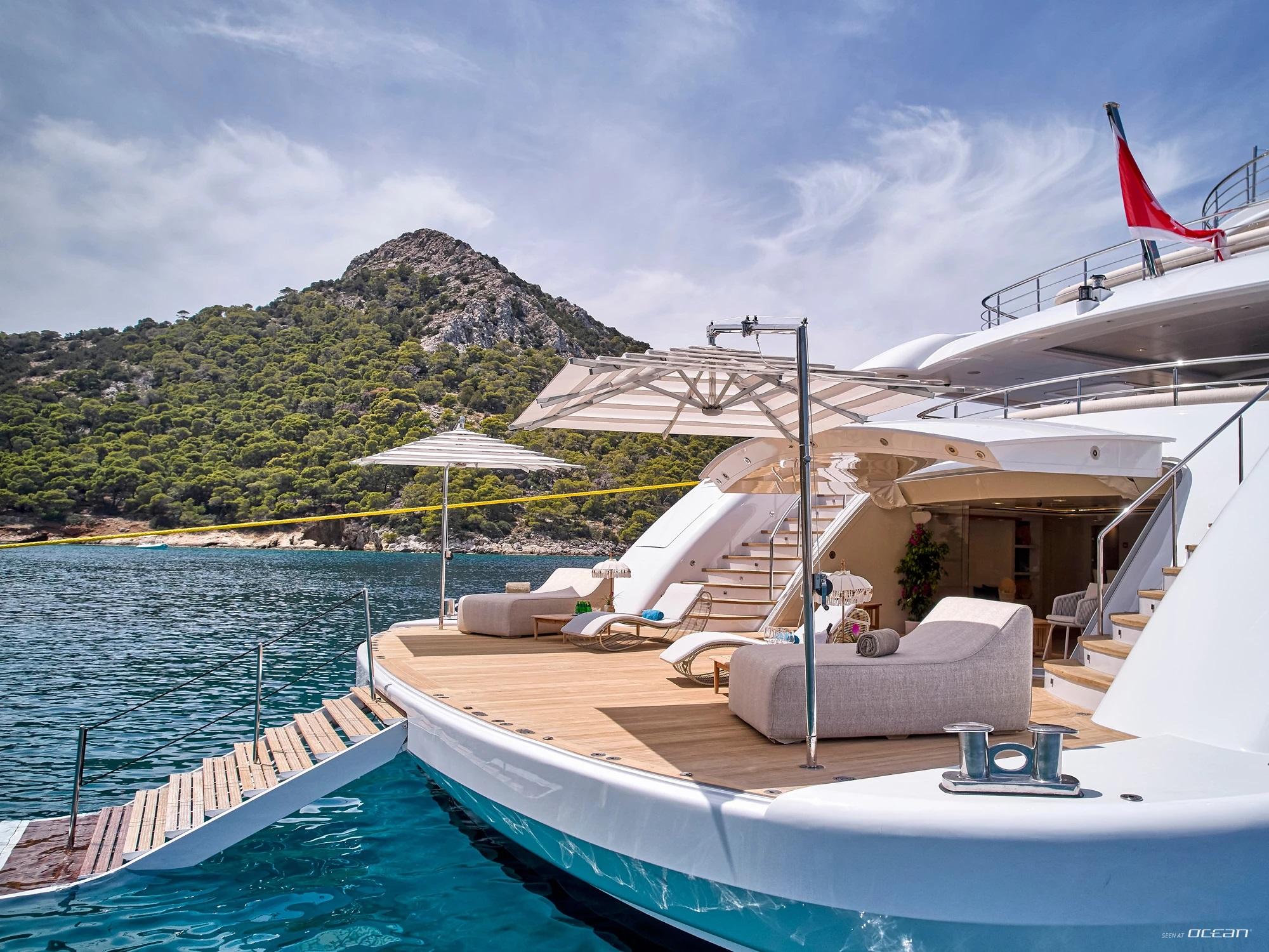 Adventure enthusiasts will find an extensive array of water toys, including Jetsurfs, kayaks, Seabobs, paddle boards, and more. She provides diverse options for waterskiing, wakeboarding, and family-friendly floating platforms. O'PTASIA also features wide-open decks and hydraulic equipment for effortless boarding and water access. Luxury motor yacht charter in the Mediterranean aboard O'PTASIA promises a seamless blend of comfort, style, and exhilarating ocean experiences.