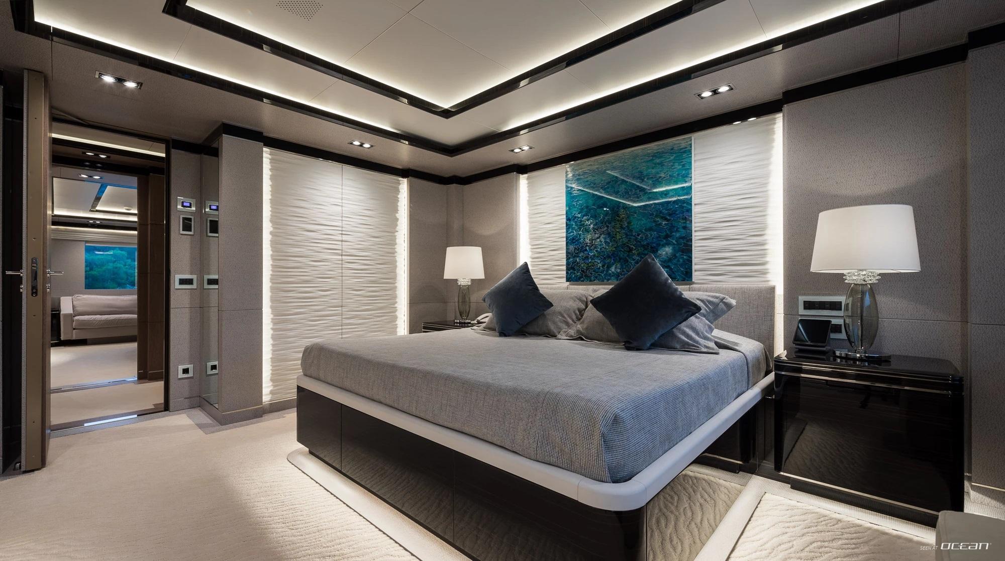 O'PTASIA comfortably welcomes 12 guests in 10 resplendent staterooms. The upper deck Master Suite provides a 180-degree panoramic view, while the full-width VIP suite on the main deck spans 95M² of pure luxury. Additional staterooms include spacious doubles and twins, all with ensuite facilities. Contemporary interiors feature calming neutral palettes and thoughtful layouts designed for relaxation and entertainment. O'PTASIA Golden Yacht 278 for charter ensures unmatched comfort for every guest.