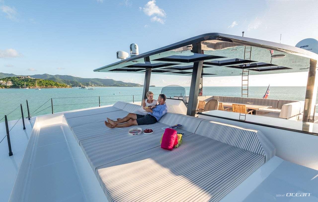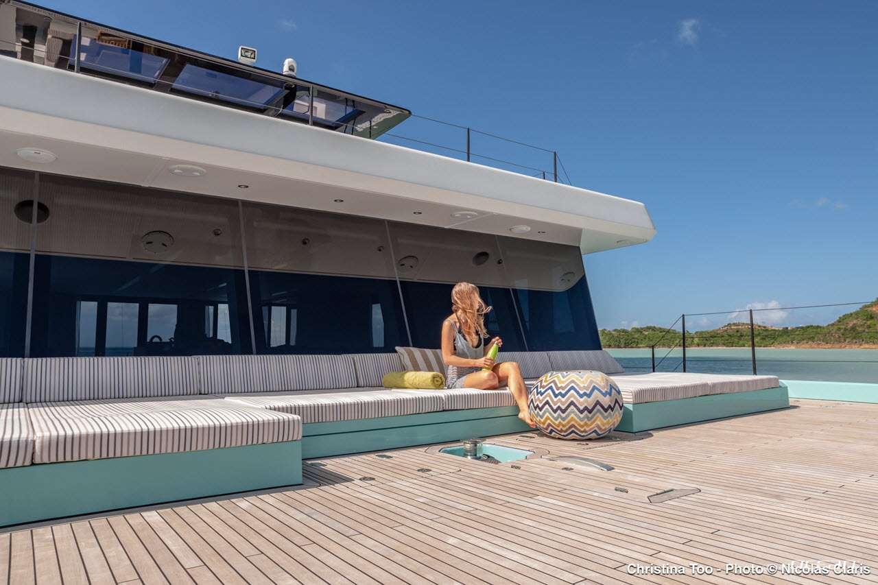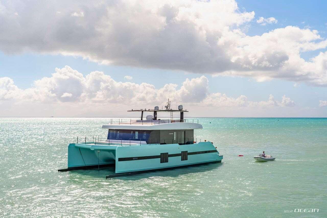 ORCA, previously known as CHRISTINA TOO, is a striking Sunreef Supreme 68 Power catamaran combining performance, innovation, and luxury. Powered by twin IPS Volvo engines, she offers smooth and agile cruising, while her dynamic positioning system ensures effortless maneuvering in marinas or at anchor. Her expansive bow terrace features large sunbeds, a Jacuzzi, and a wide sun awning, creating the perfect space for relaxation under the sun. ORCA luxury power catamaran for charter delivers a seamless blend of comfort and style in the Bahamas and Florida.