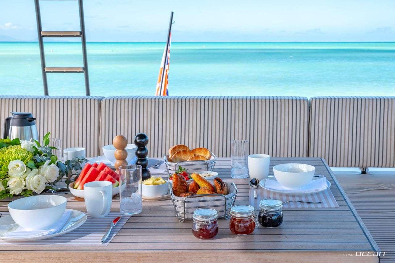 All cabins with en-suite bathrooms, air condition throughout, generators, 2 watermakers, jacuzzi, ice maker, TV in salon and all cabins, Bluetooth Denon surround sound system with outdoor speakers, Starlink Wi-Fi internet, USB ports, swimming platform, and a variety of water toys.