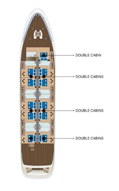 Cabin configuration: 11 double (convertible to twin) cabins with private balconies