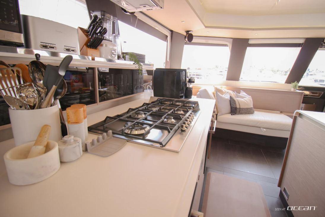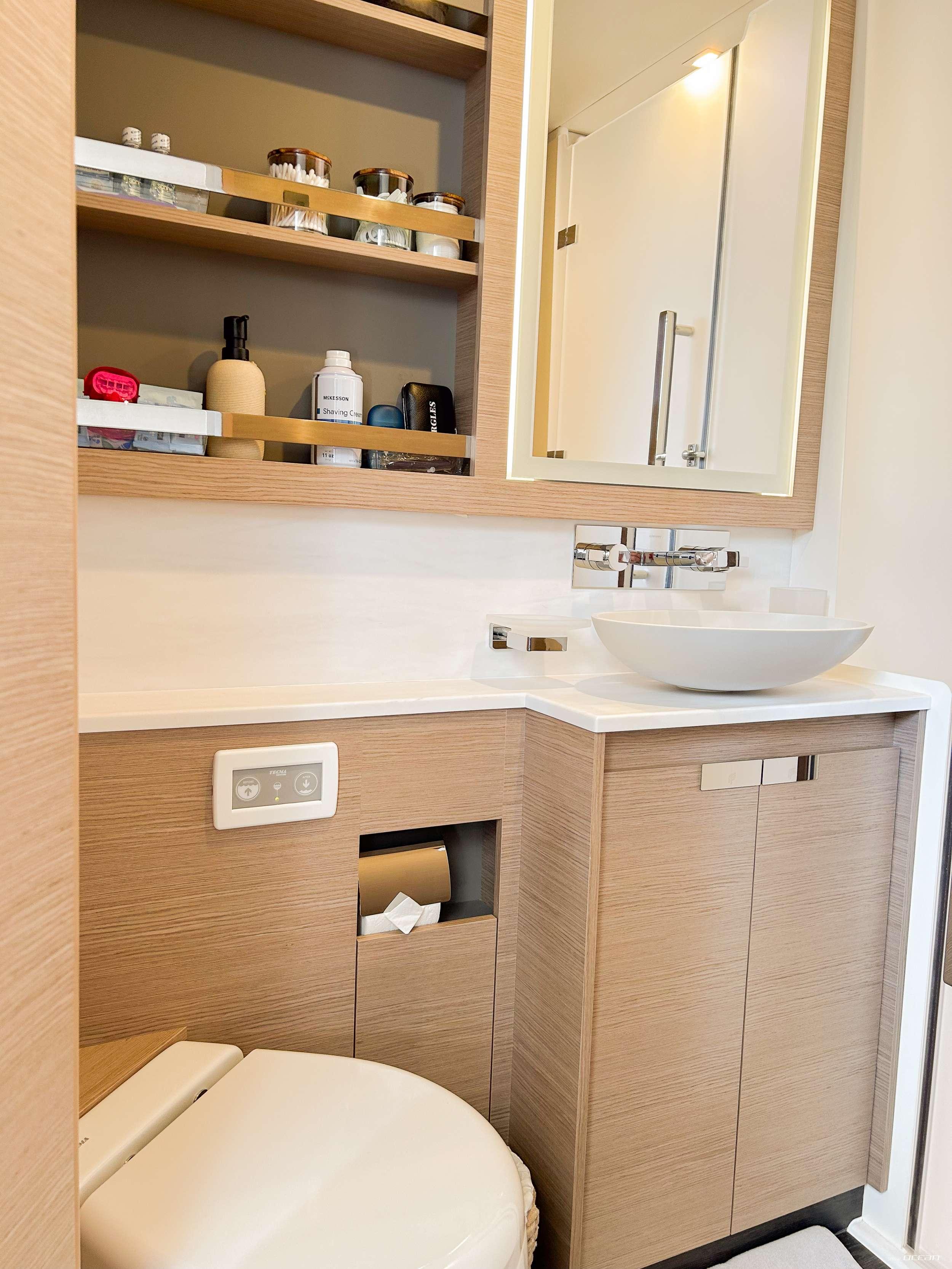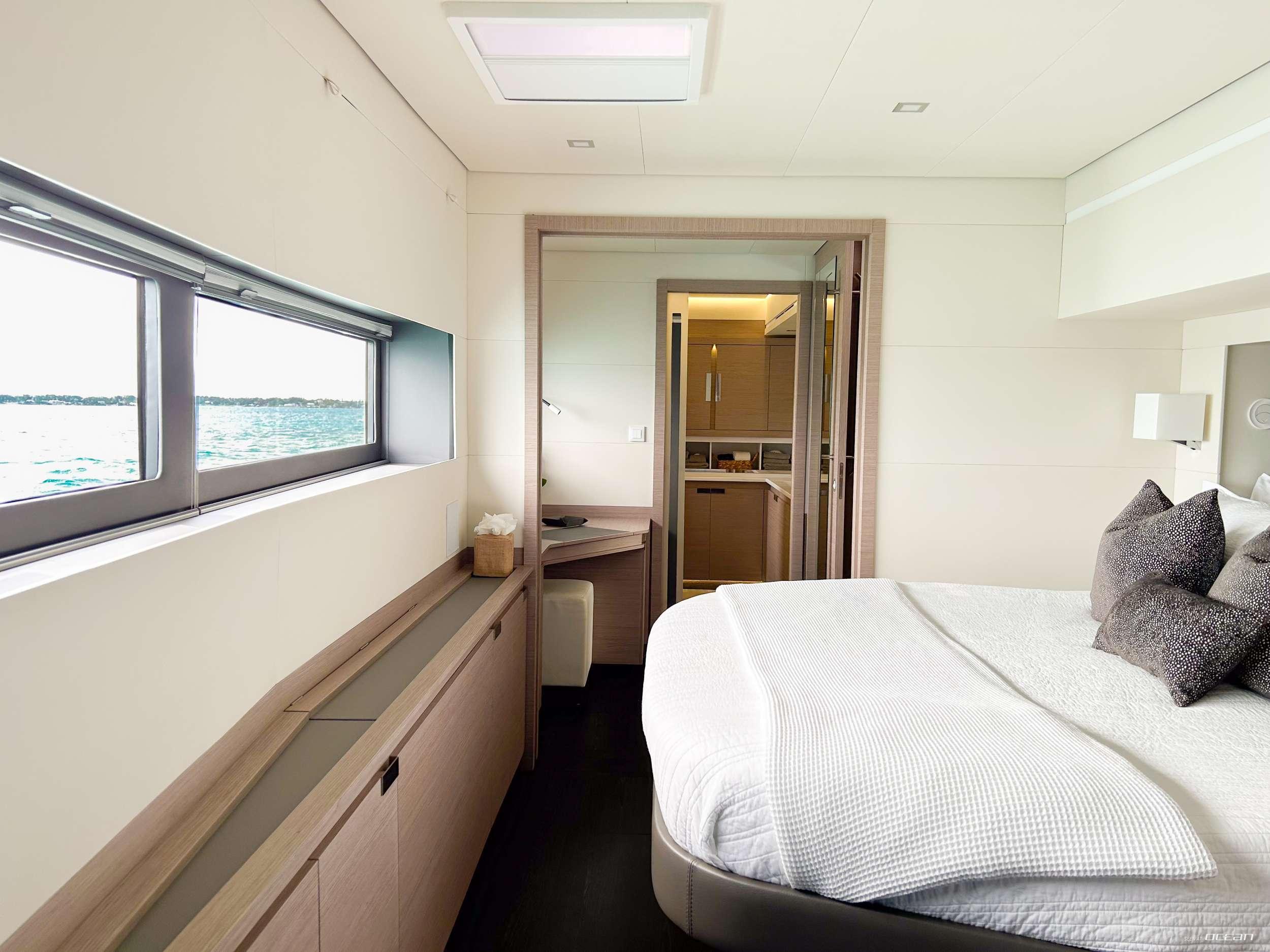 All cabins with en-suite bathrooms, air condition throughout, 2 generators, jacuzzi, watermaker, smart TV in salon and all cabins, Starlink Wi-Fi internet, sound system throughout the yacht and in each cabin, hydraulic swimming platform and a variety of water toys.