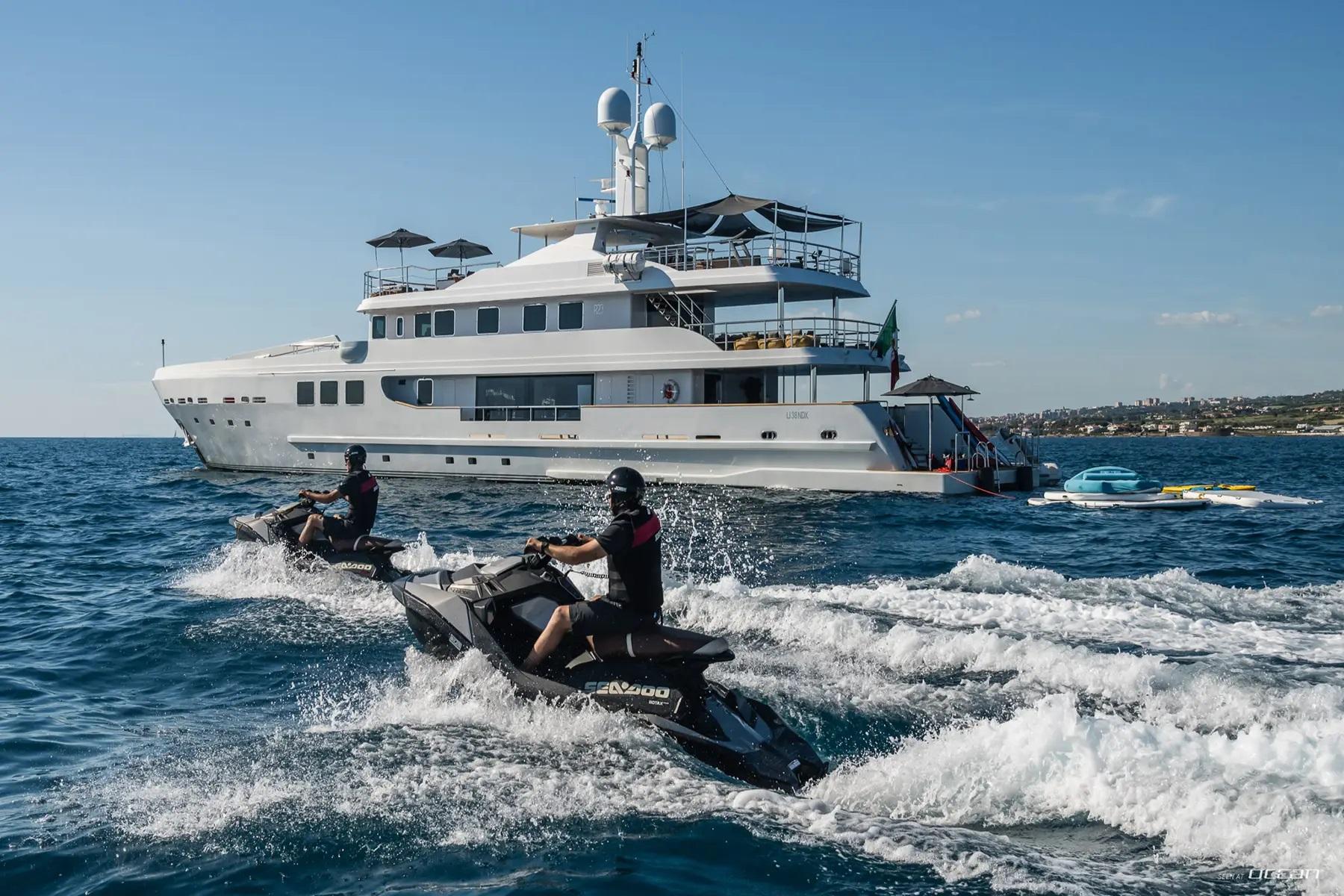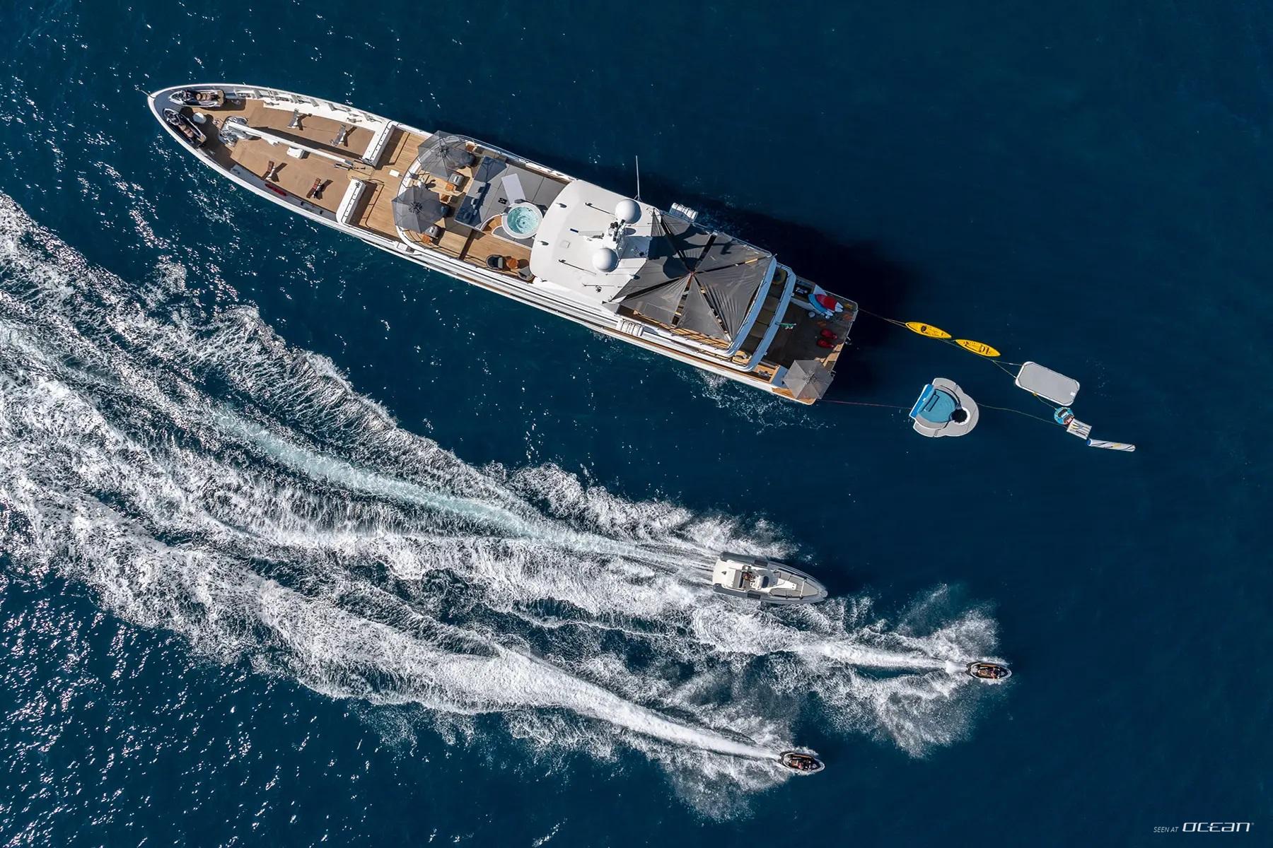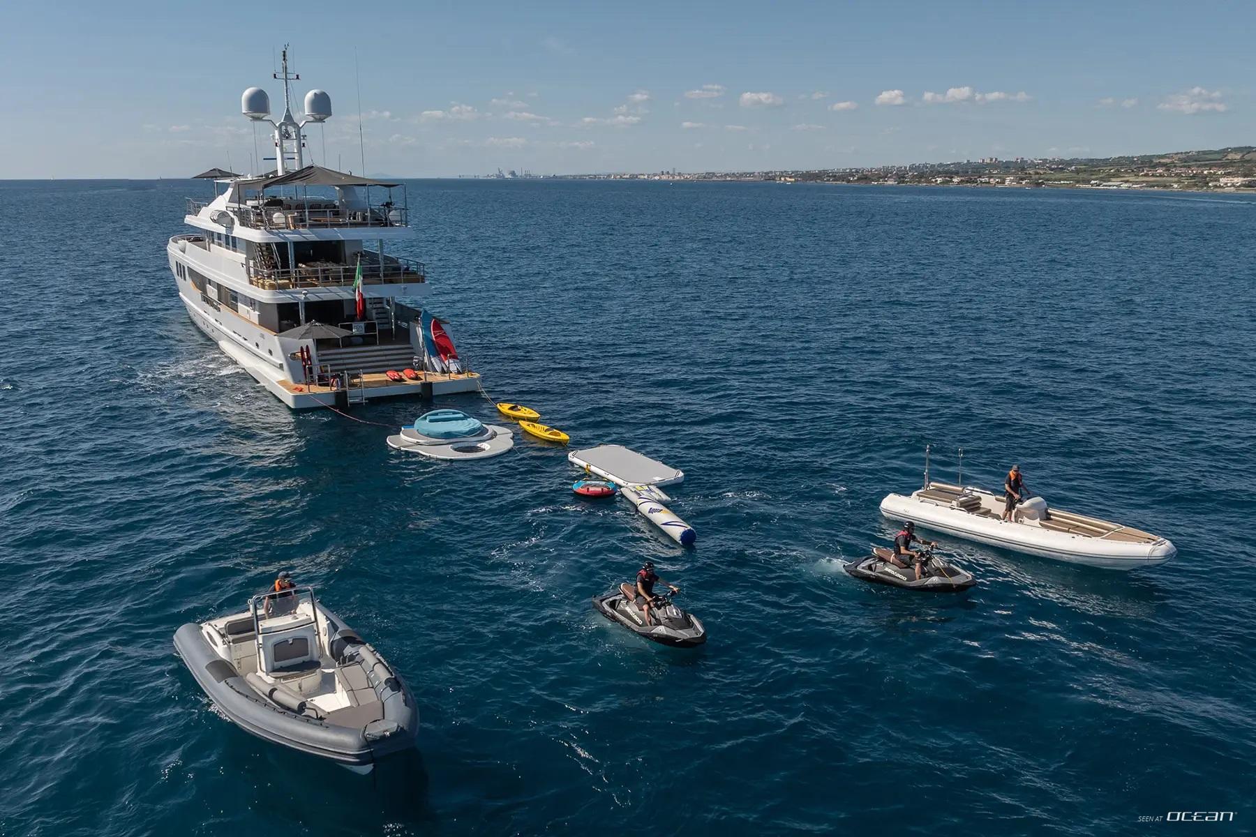 Tender Cab 220 CV, tender Limosine Whitmarsh da 260 CV, SeaDoo jet ski 66 JD Spark, SeaDoo jet-ski 66 KB Spark, 2 Seabobs F5, waterskis, wakeboard, 2 stand-up paddleboards, 2 kayaks, floating island, towable inflatable donut, and complete snorkeling gear