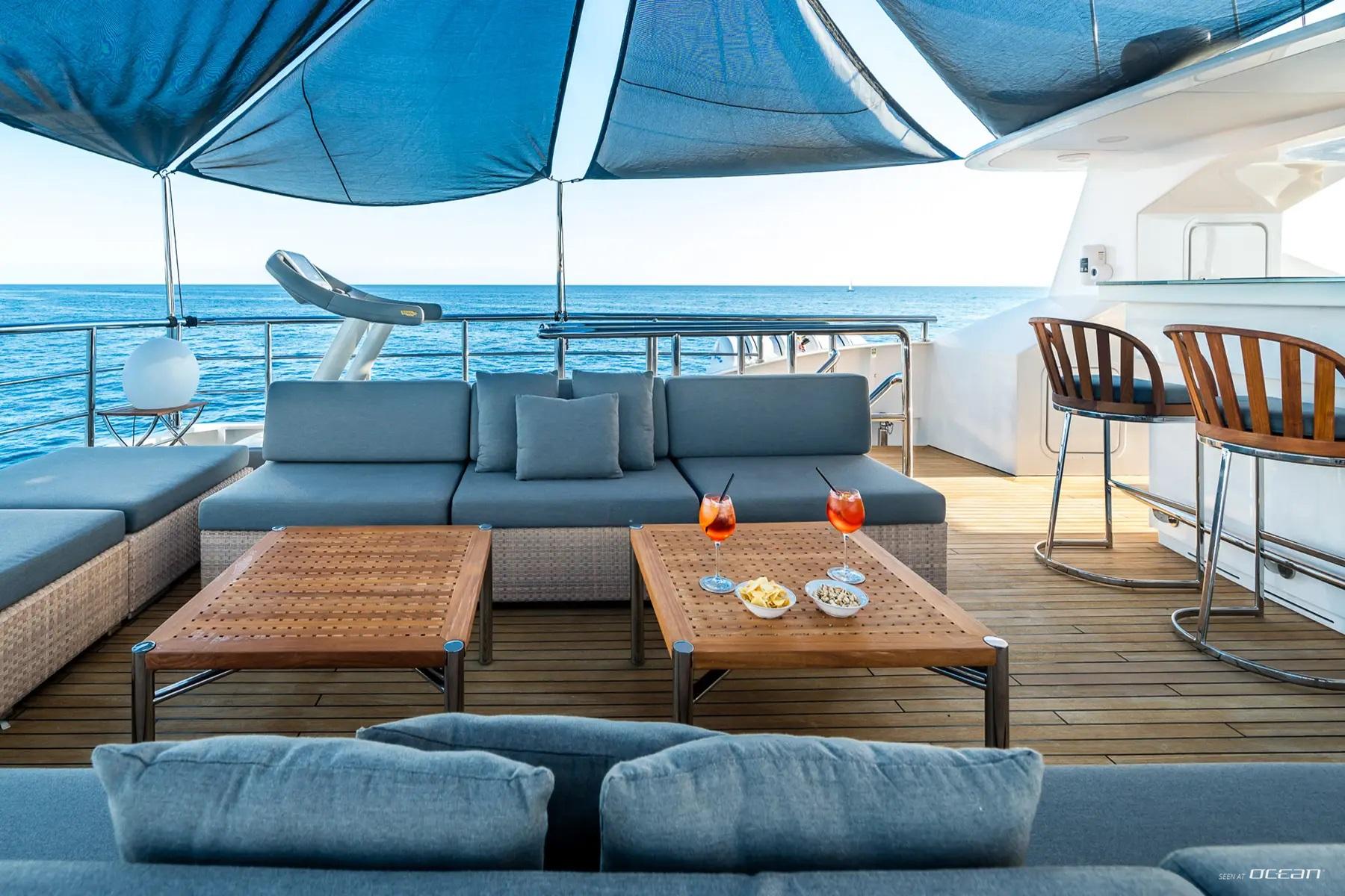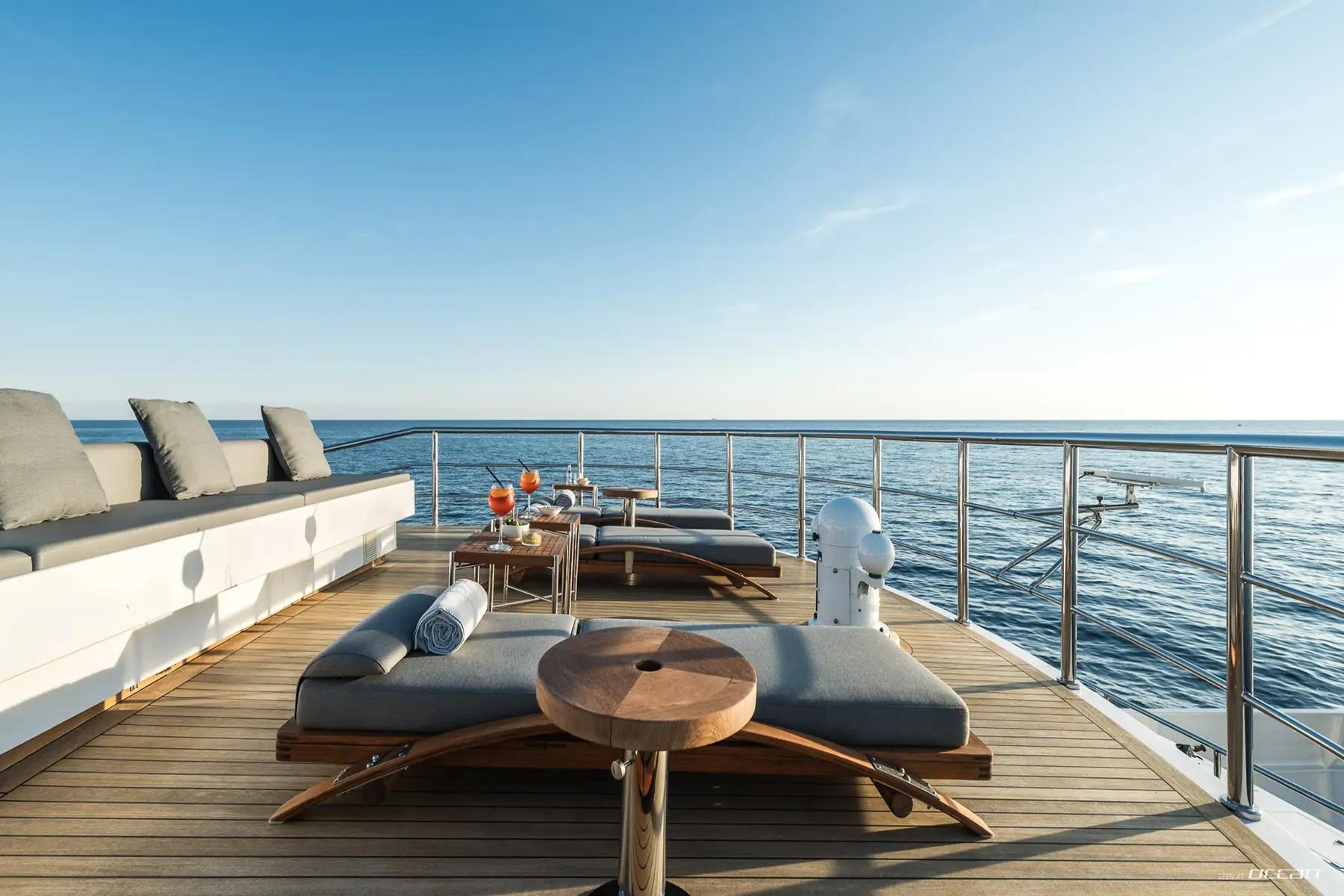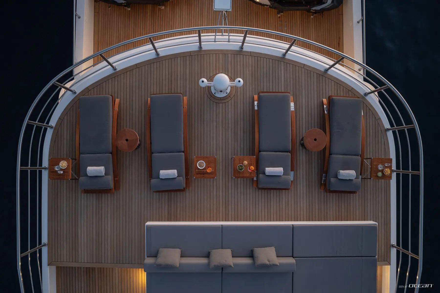 R23 is equipped with top-tier amenities, including Bang & Olufsen A/V systems, Technogym fitness equipment, and bespoke designer furniture by Poltrona Frau, Edra, RODA, and Emmemobili. She is fully licensed for Spanish waters, making her perfect for luxury motor yacht R23 charter in the Balearics, Monaco, Sardinia, and Sicily. Her combination of versatile cabins, spacious interiors and exceptional outdoor areas ensures an unforgettable Mediterranean cruising experience.