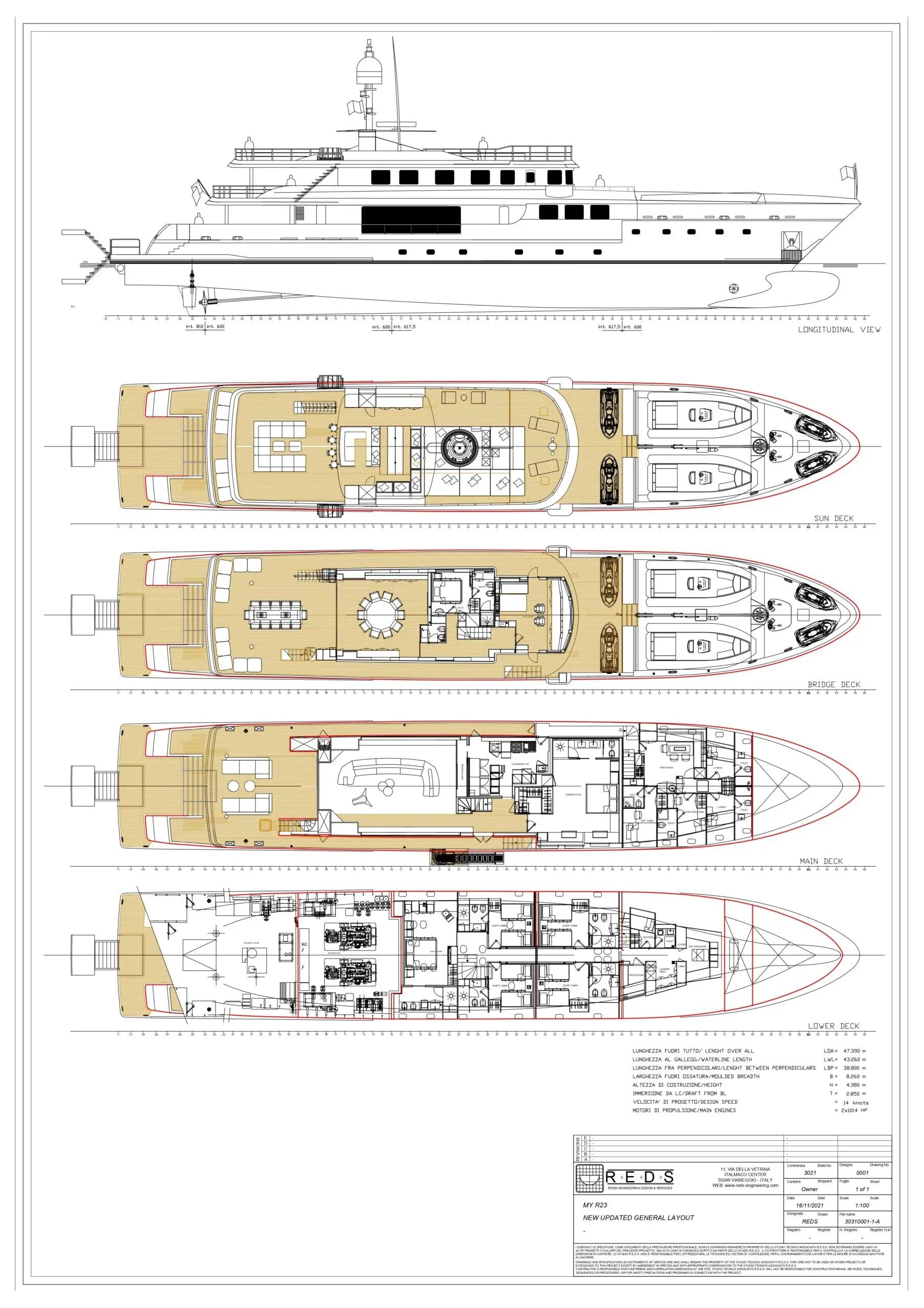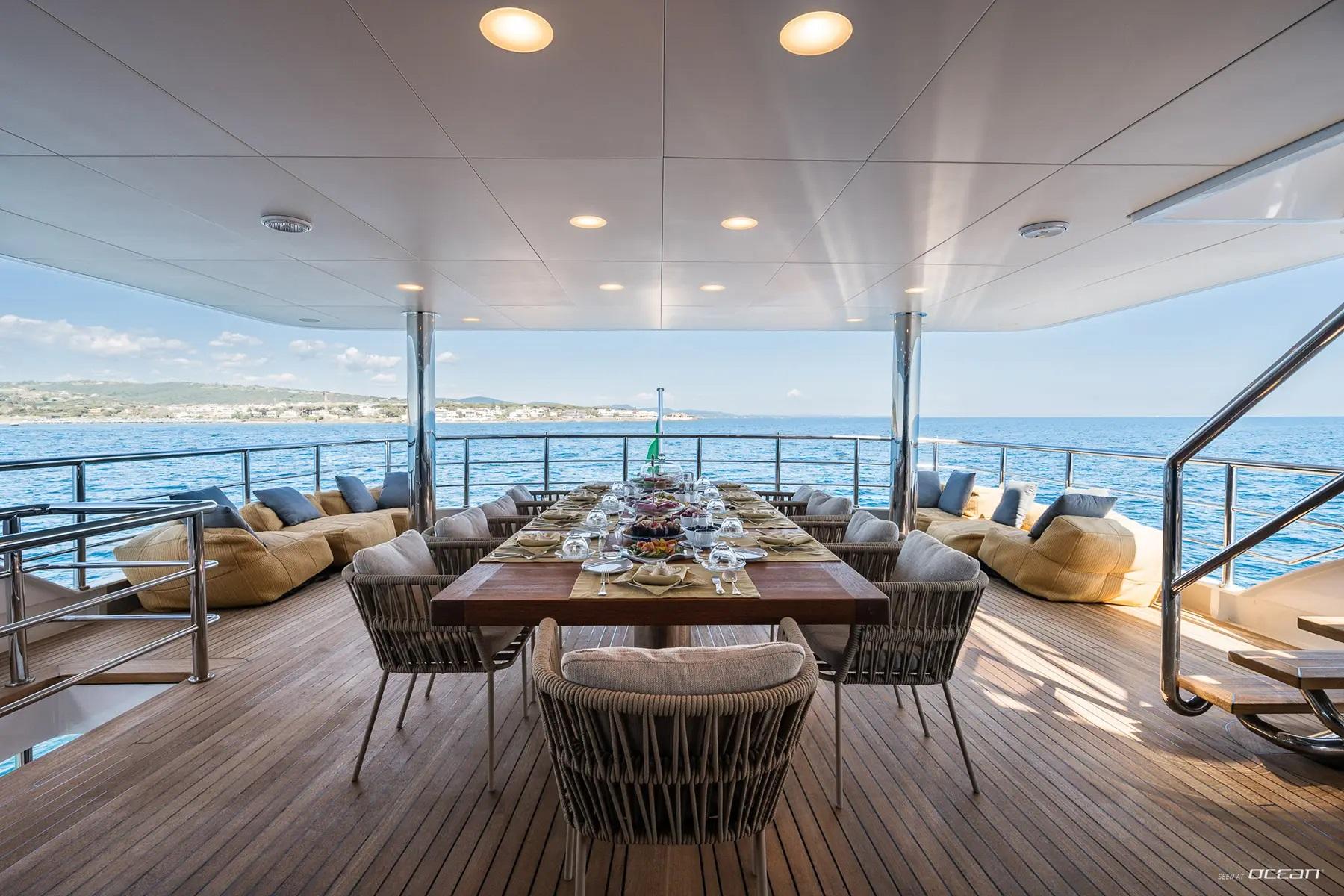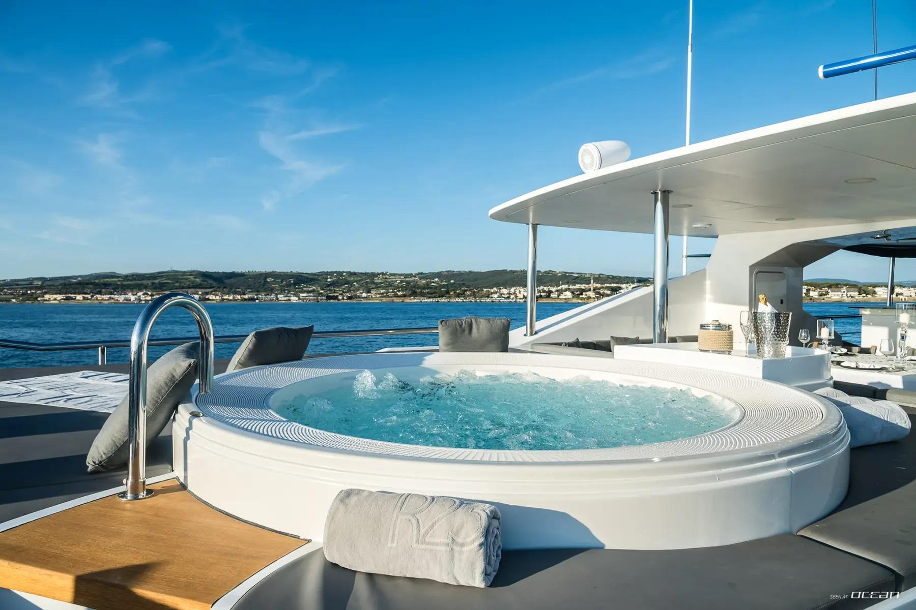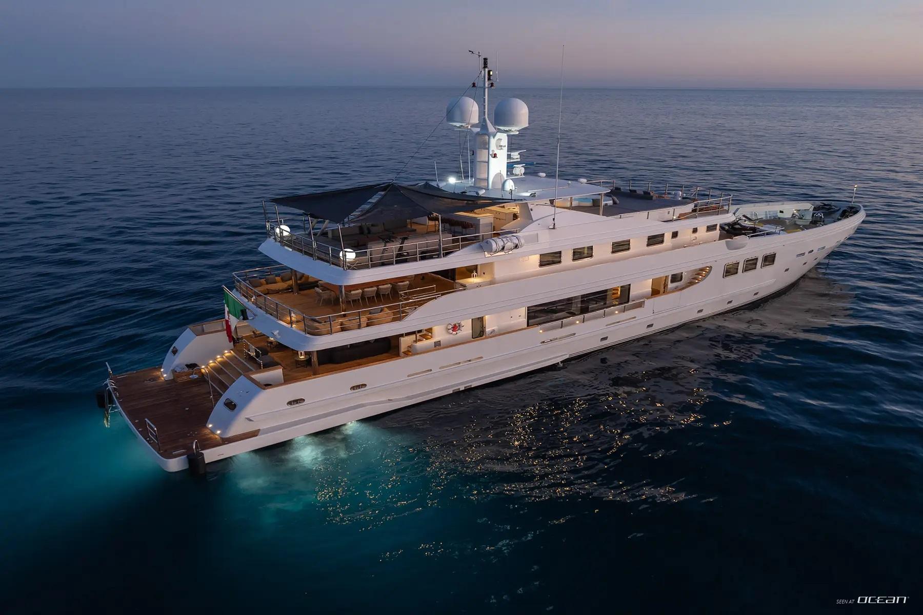 R23 is equipped with top-tier amenities, including Bang & Olufsen A/V systems, Technogym fitness equipment, and bespoke designer furniture by Poltrona Frau, Edra, RODA, and Emmemobili. She is fully licensed for Spanish waters, making her perfect for luxury motor yacht R23 charter in the Balearics, Monaco, Sardinia, and Sicily. Her combination of versatile cabins, spacious interiors and exceptional outdoor areas ensures an unforgettable Mediterranean cruising experience.