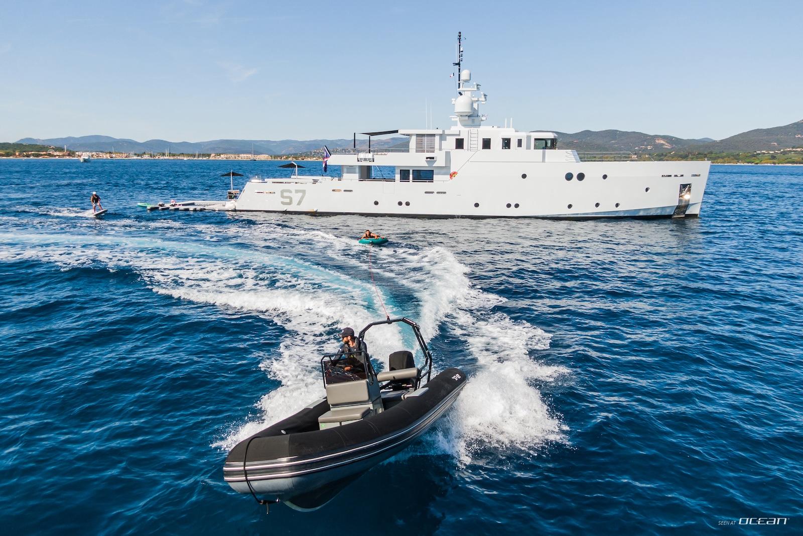 12m Novamarine BS120 chase boat with 2 x 370hp, 4.7m Novurania tender 115hp, 2 SeaDoo Spark Trixx 90, 2 fliteboards, 2 FSR SeaBobs, wakeboard, 2 stand-up paddleboards, netted sea pool and inflatable deck, selection of kite surfing equipment, various towables, fishing and snorkeling gear