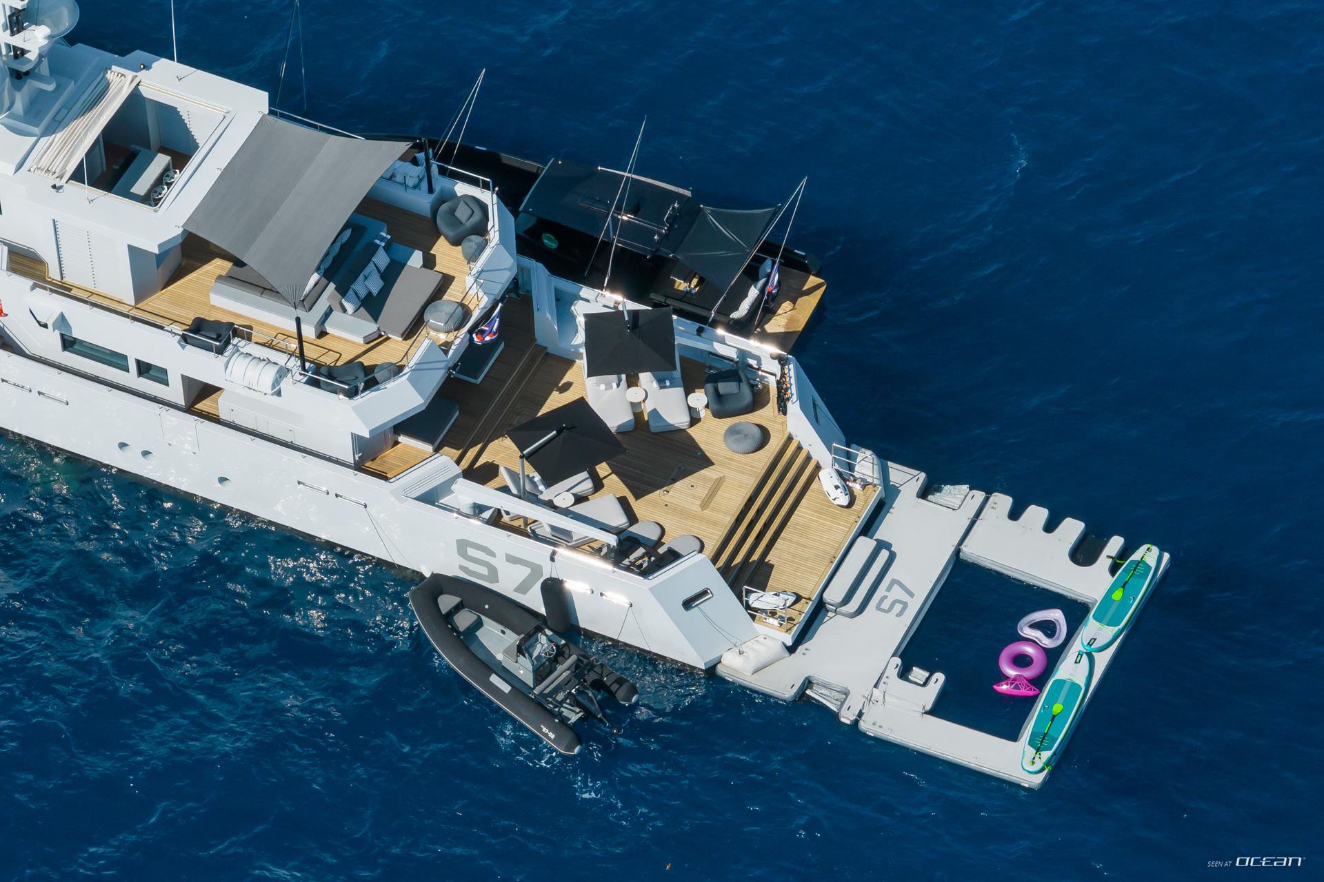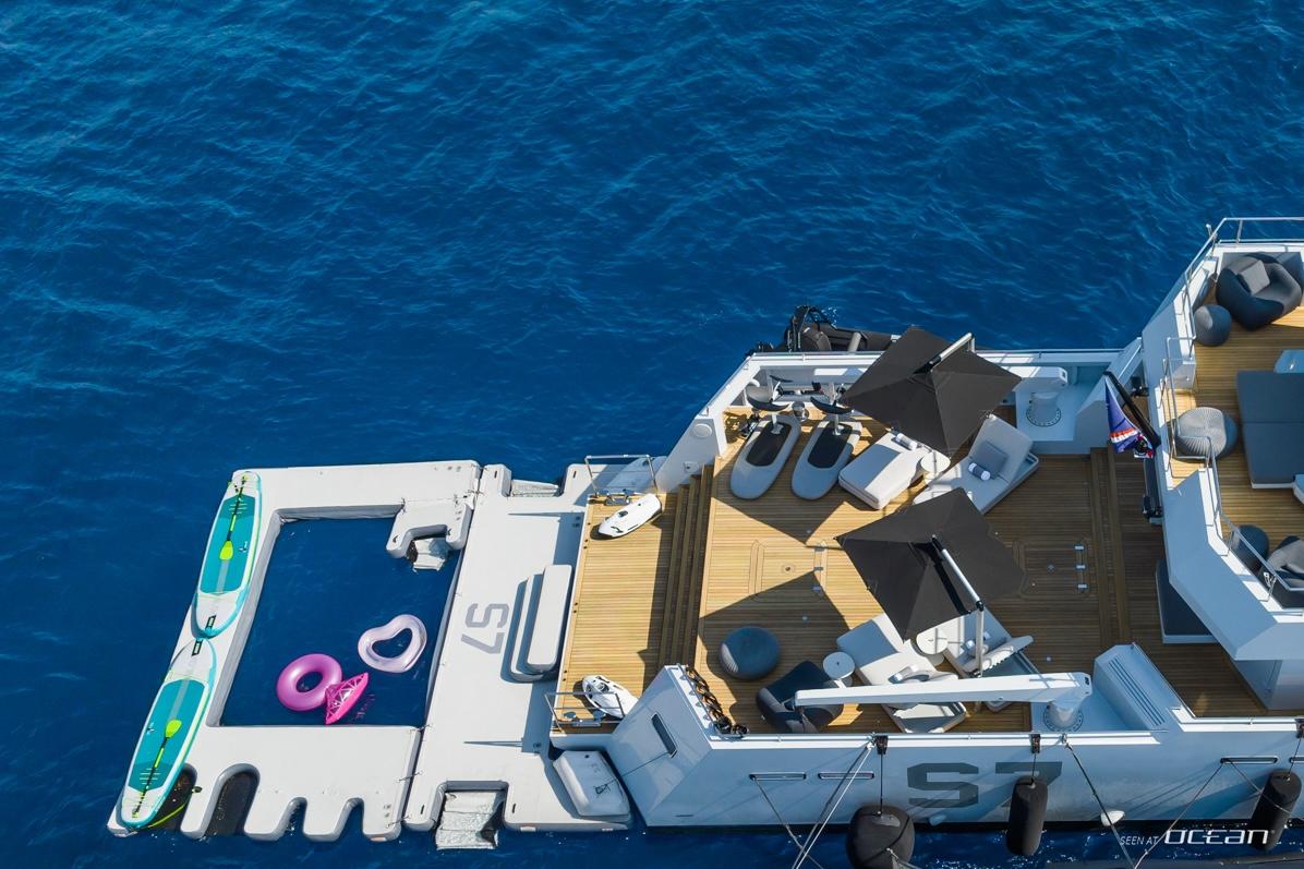 S7 luxury superyacht for charter carries an exceptional selection of water toys including Sea-Doo jet skis, Fliteboards, Seabobs, kitesurfing equipment, and a large inflatable swim platform. A dedicated and experienced crew supports both beginners and advanced riders, creating a safe and fun environment on the water. Guests can alternate between high-energy activities and peaceful moments floating at anchor. Charter experiences on S7 blend adventure with effortless comfort.