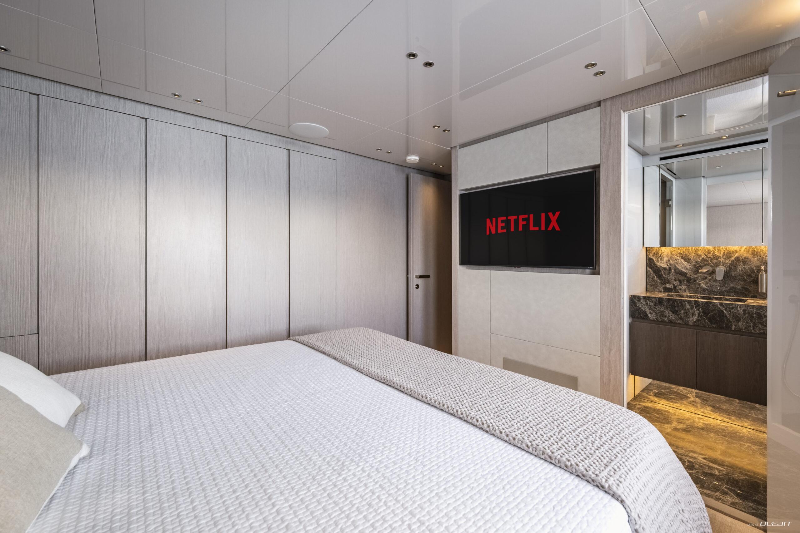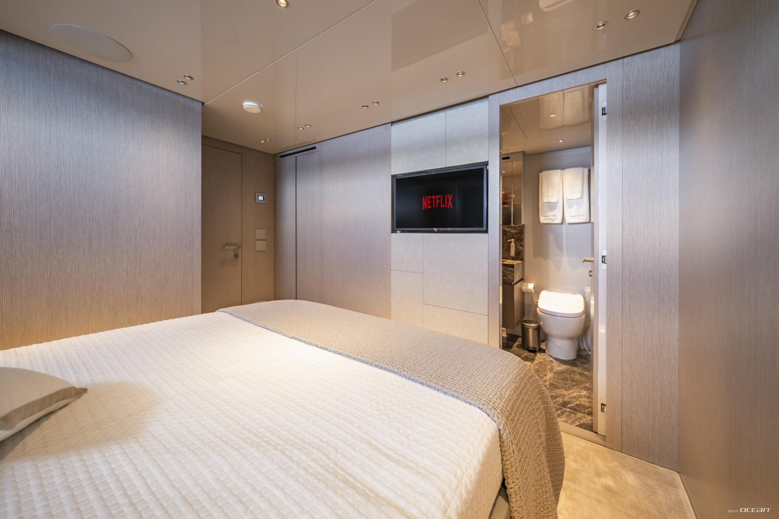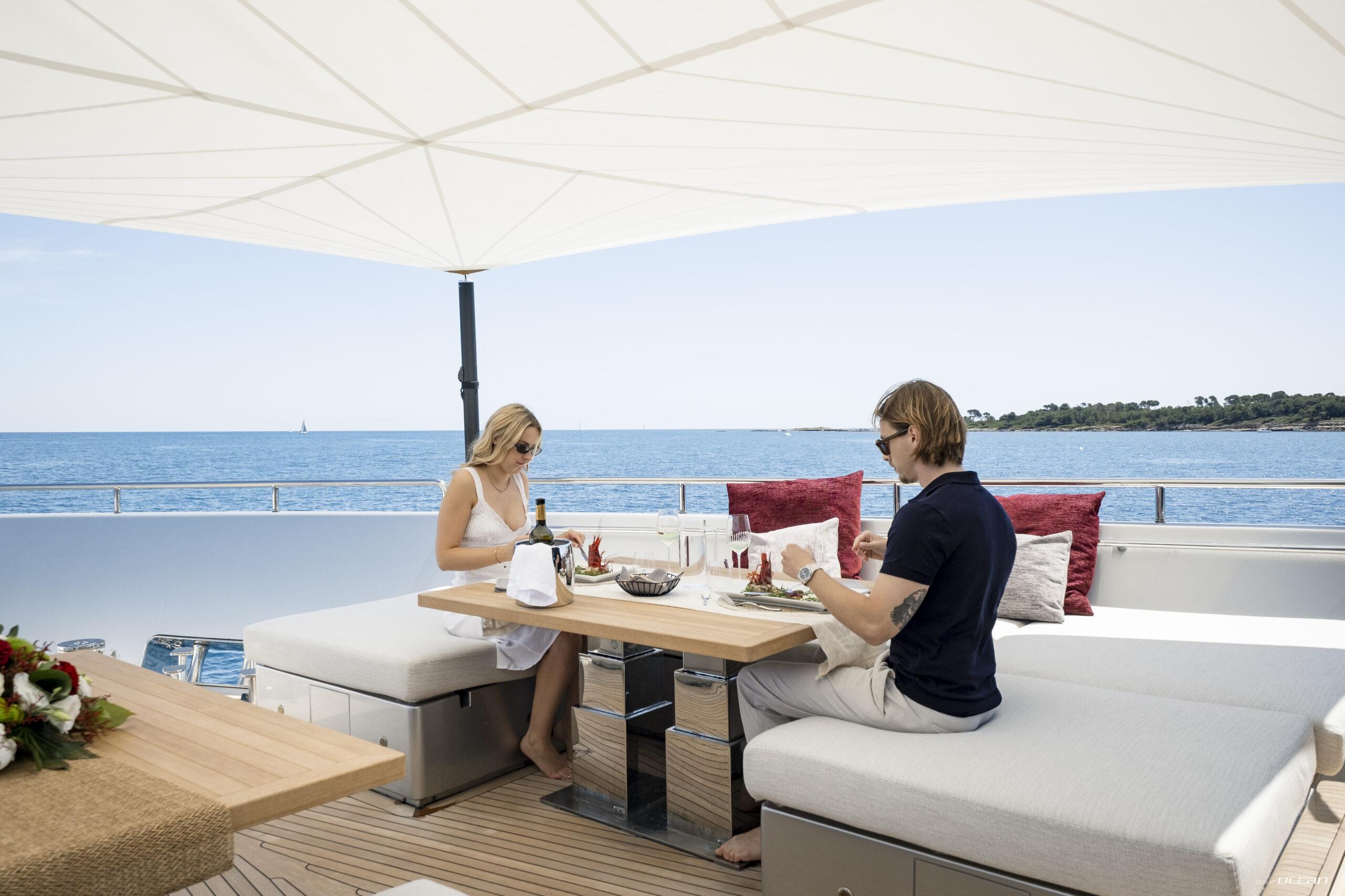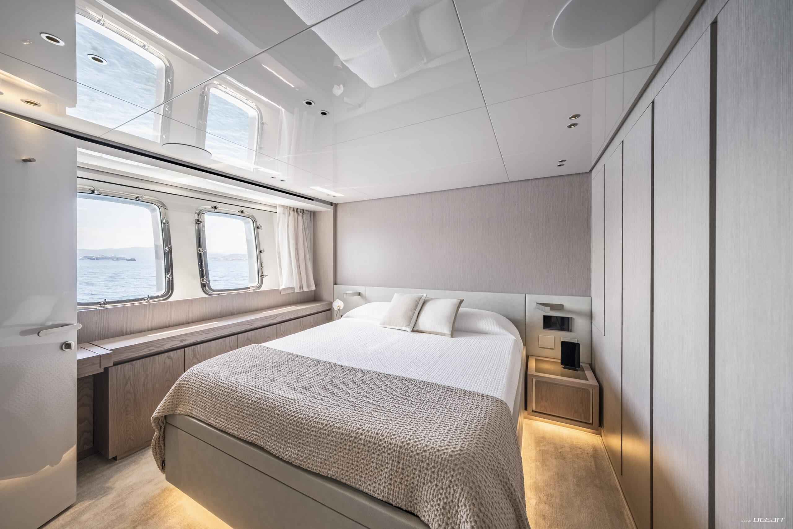 SENSA welcomes up to 9 guests in 4 elegant en-suite cabins, including a full-beam master suite, 2 stylish VIP doubles, and a twin with a pullman bed. Each cabin is bathed in natural light and finished with refined textures, making SENSA ideal for couples, families, or groups of friends looking for a luxury escape along the Côte d’Azur. A crew of 5 experienced professionals ensures an effortless charter experience, from fine dining by the onboard chef to seamless itineraries customized to your vision.