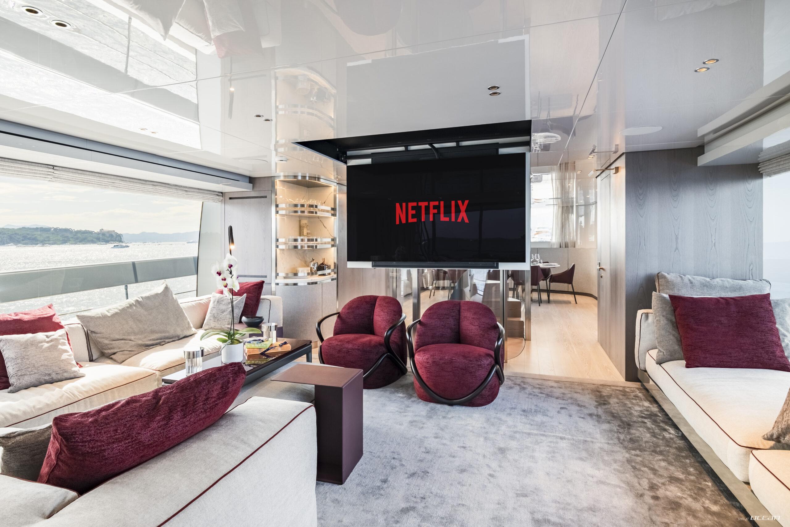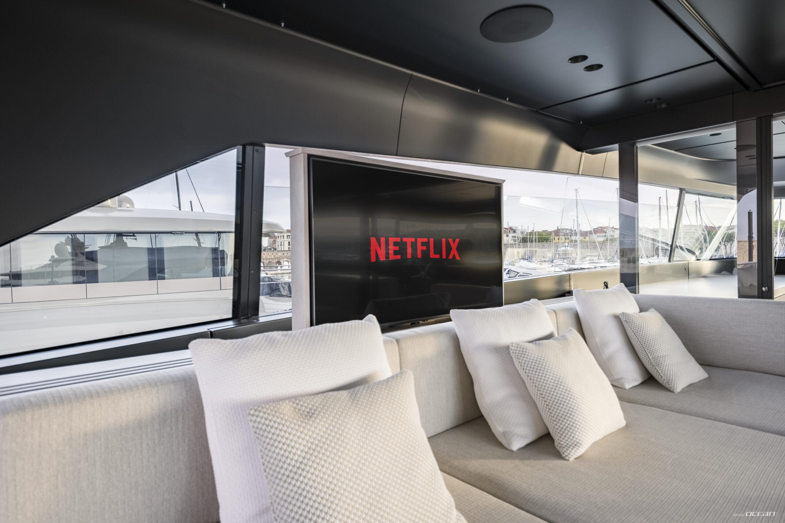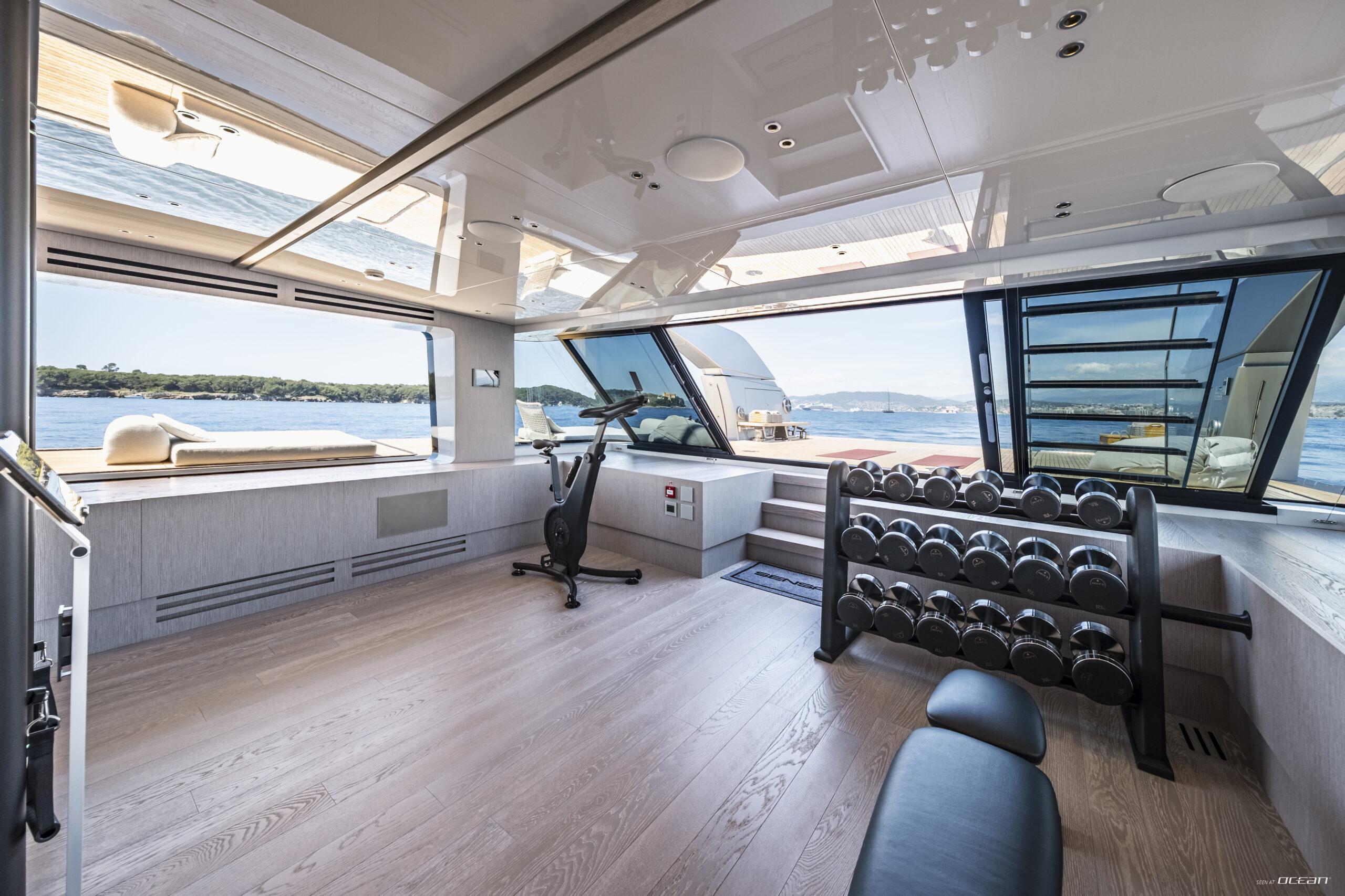 En-suite bathrooms in all cabins, air condition throughout, generators, watermakers, stabilizers at anchor, stabilizers underway, Starlink, Wi-Fi internet, TV in salon and all cabins, 14 zones AirPlay Bose audio system with WiiM controllers, gym gear, and a variety of water toys.