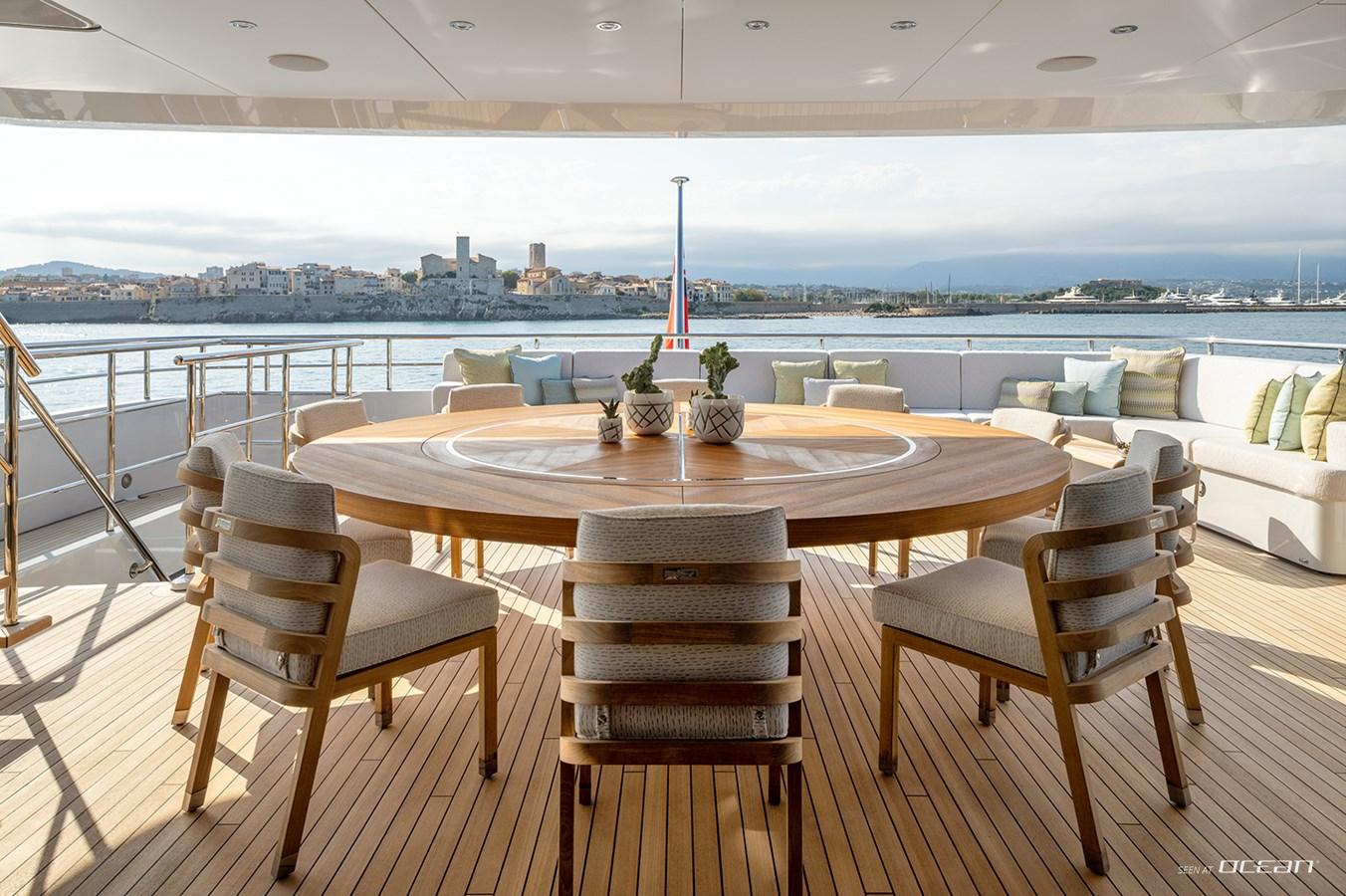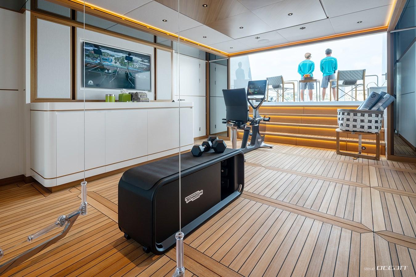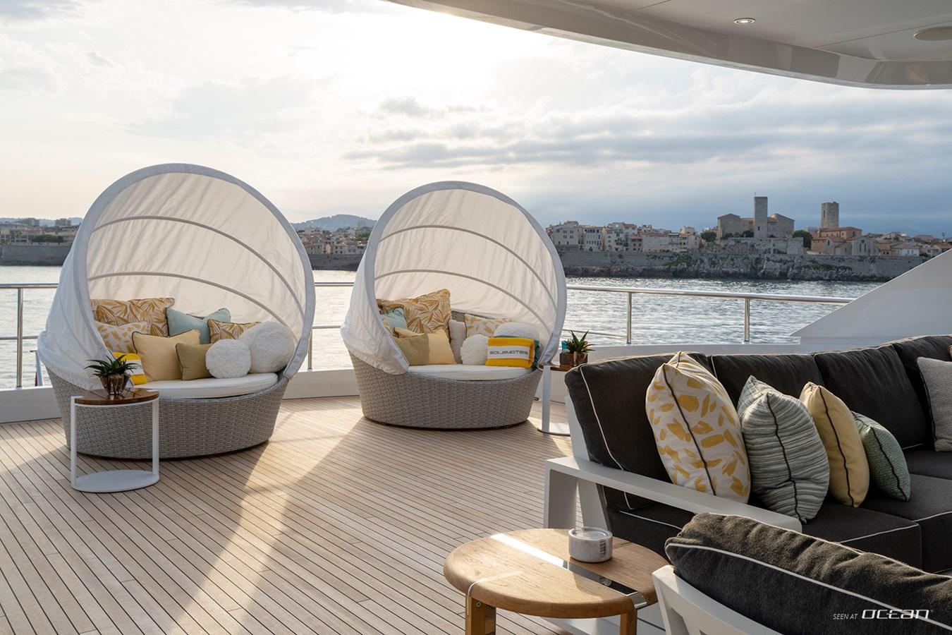 Crafted for life outdoors, Heesen superyacht SOLEMATES for charter features expansive deck areas that invite both relaxation and social moments. The sun deck stands out with a large jacuzzi, bar, and lounge spaces, while multiple alfresco dining areas set the scene for memorable evenings. A spacious beach club with direct sea access, alongside a well-appointed onboard gym, ensures a balanced lifestyle on board, where every day transitions effortlessly between activity and leisure.