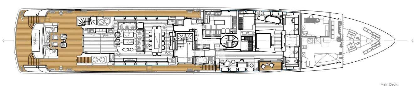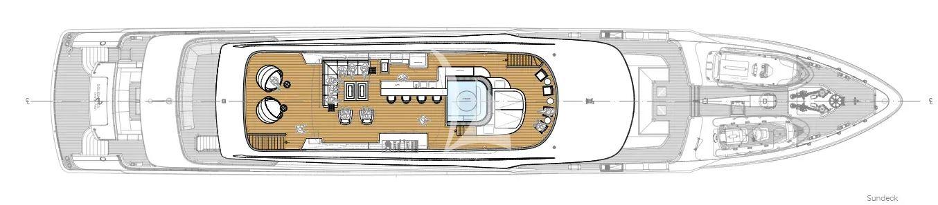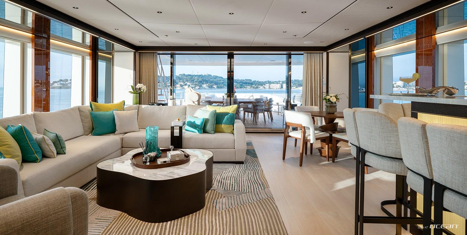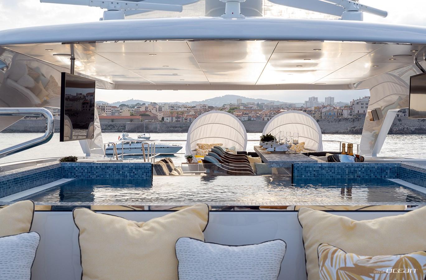 Crafted for life outdoors, Heesen superyacht SOLEMATES for charter features expansive deck areas that invite both relaxation and social moments. The sun deck stands out with a large jacuzzi, bar, and lounge spaces, while multiple alfresco dining areas set the scene for memorable evenings. A spacious beach club with direct sea access, alongside a well-appointed onboard gym, ensures a balanced lifestyle on board, where every day transitions effortlessly between activity and leisure.