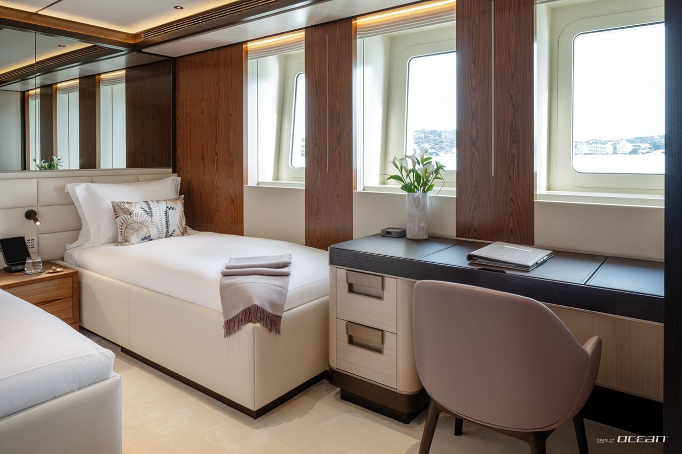 Designed with both privacy and flexibility in mind, Charter Yacht SOLEMATES welcomes up to 12 guests across 6 elegant cabins. The main deck master stateroom offers generous space and natural light, while the lower deck hosts 5 additional cabins, including a VIP, 2 doubles, and 2 twin cabins, ideal for families and friends traveling together. Each cabin is equipped with a deluxe ensuite bathroom, smart TV with Apple TV, intuitive iPad controls, and Starlink internet, creating a fully connected and comfortable onboard environment.