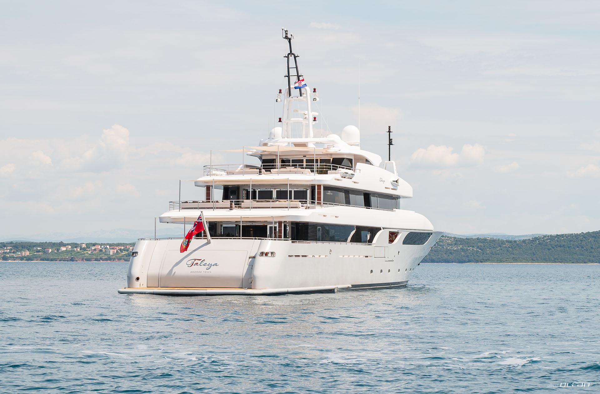 A professional and experienced crew of 14 ensures every aspect of your charter is handled with precision and care. Chef Spiro provides exceptional culinary experiences, whether in the main saloon or on the aft deck beneath the canopy. Additional amenities include a skylounge with a 220-inch cinema screen and a fully equipped gym. TALEYA yacht for charter offers a seamless blend of luxury, style, and attentive service, promising an unforgettable superyacht experience in Croatia and the Ionian Islands.